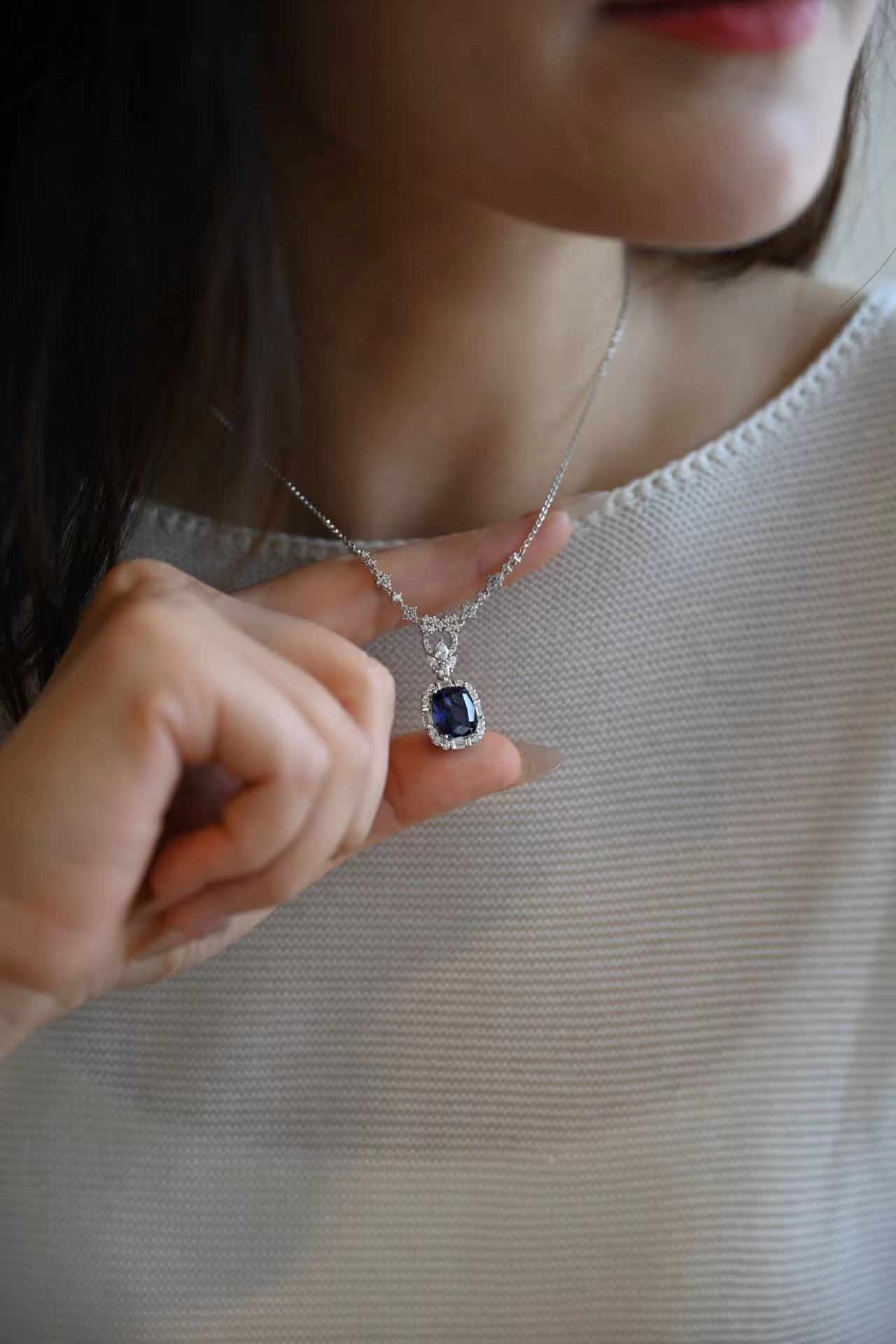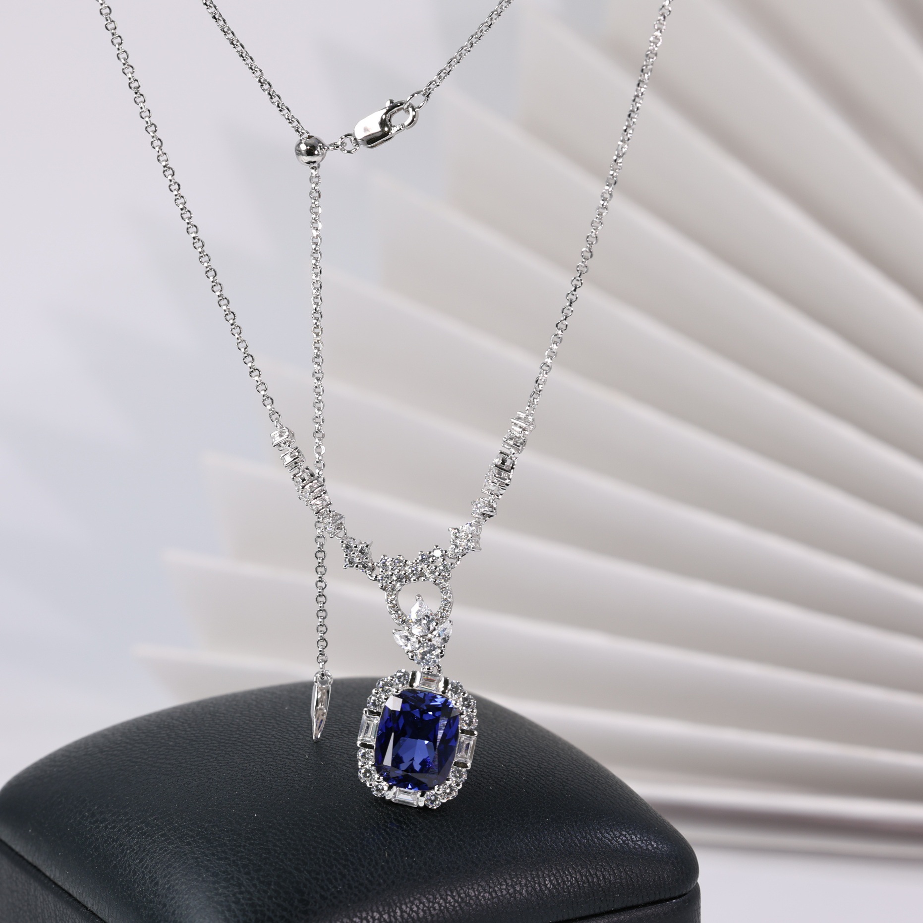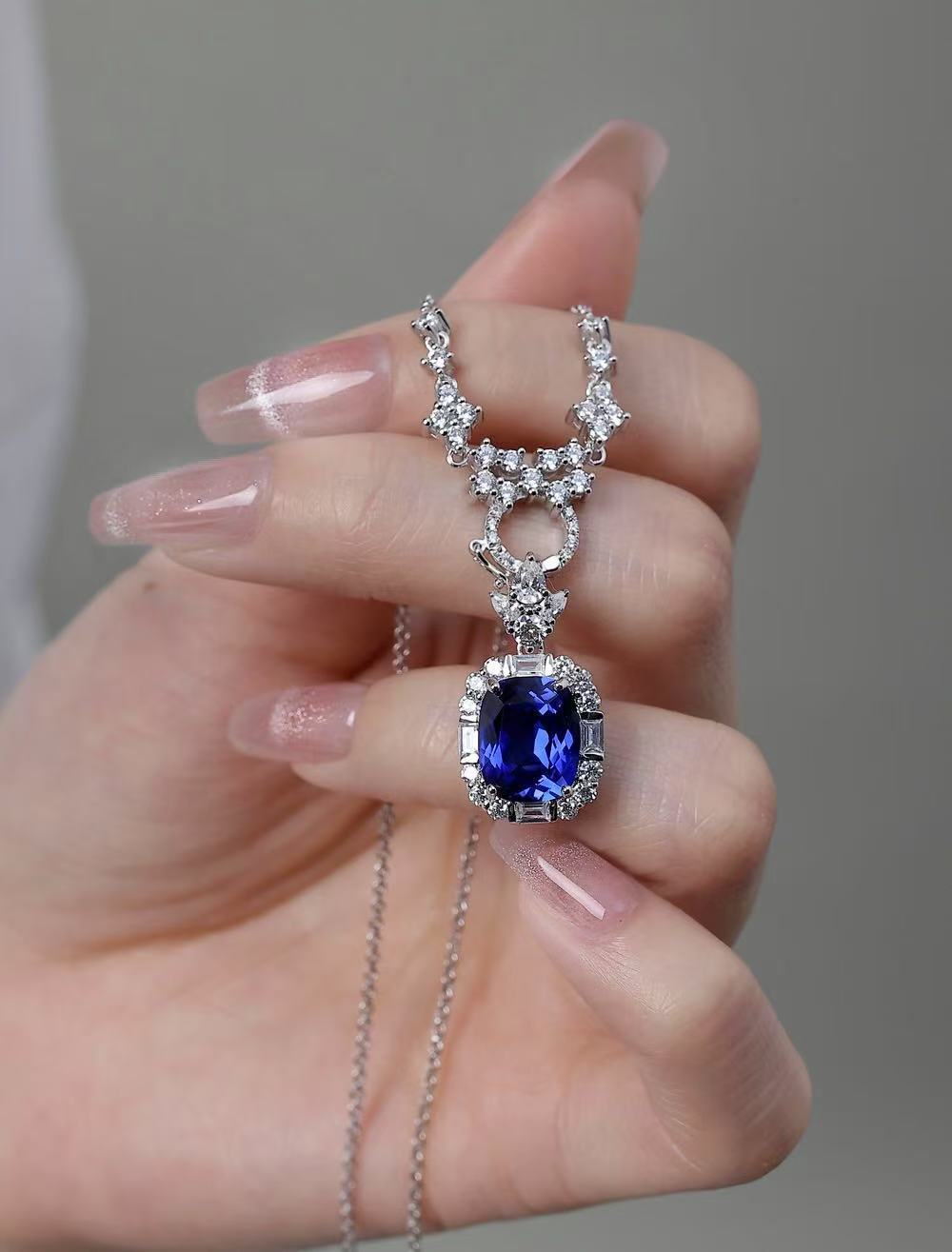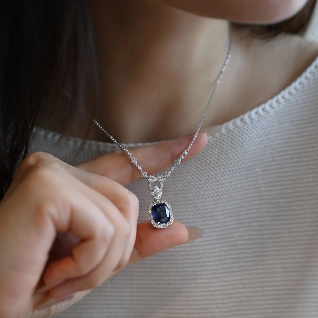 Ожерелье из культивированного сапфира 5,5 карата, королевский синий, роскошное, тяжелое, ручной работы, для вечерних нарядов, цепочка для свитера, серебро S925