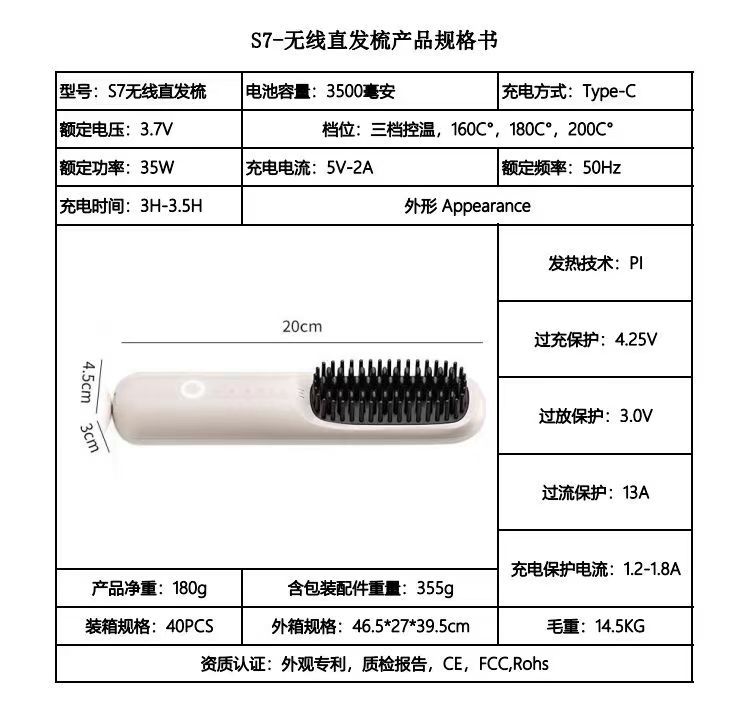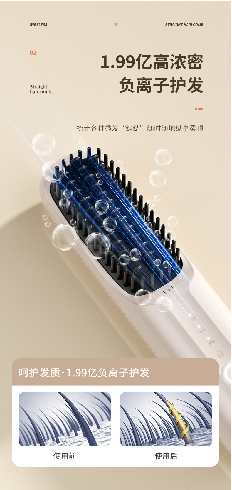 Новый тип зарядки беспроводной портативный рулон прямой волос расческа керамическая быстрорежимая электрическая расческа отрицательный ион ленивый выпрямитель через границу