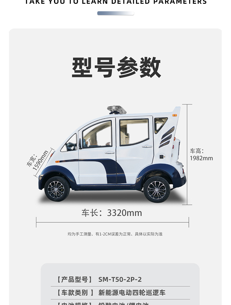 Двухрядный 5-местный электропатрульный автомобиль; Трехрядный 8-местный электропатрульный автомобиль