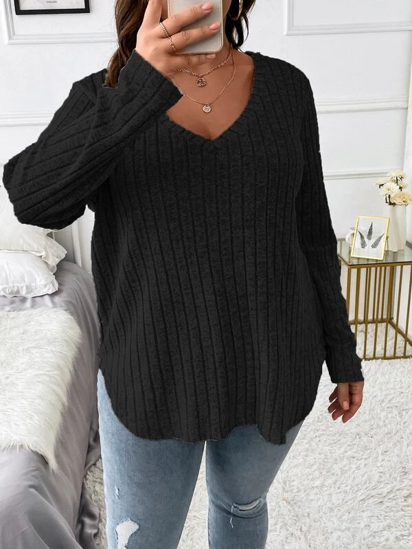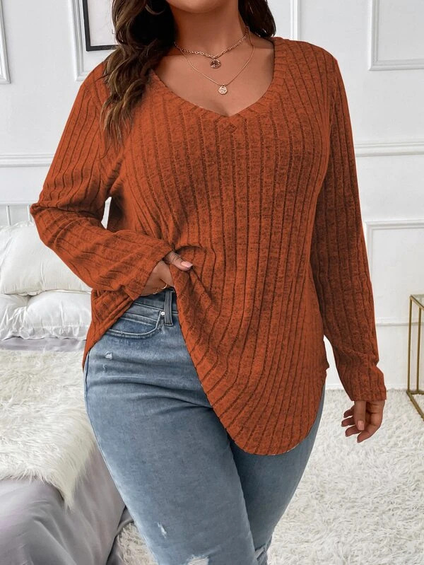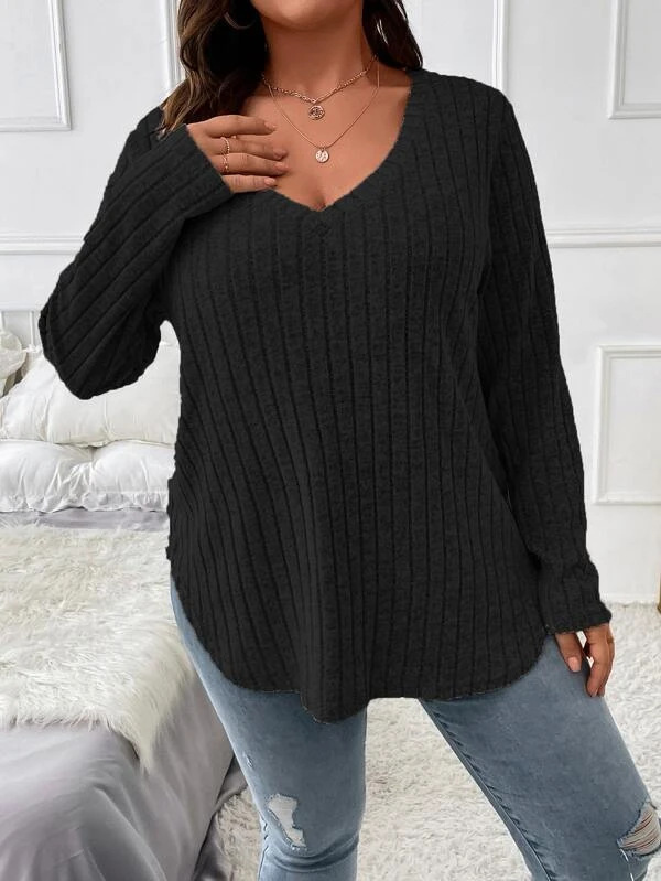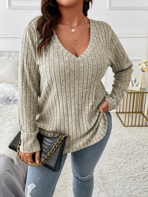 2024 Amazon осень-зима новый сплошной цвет плюс размер женский топ с V-образным вырезом