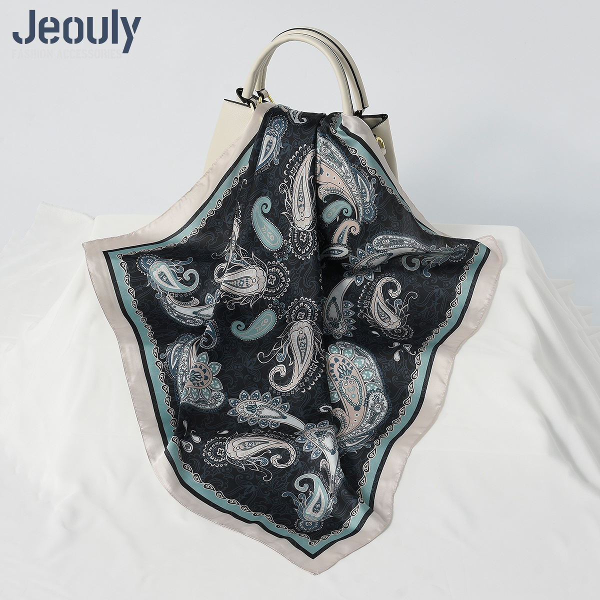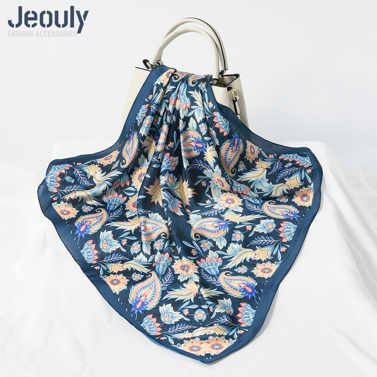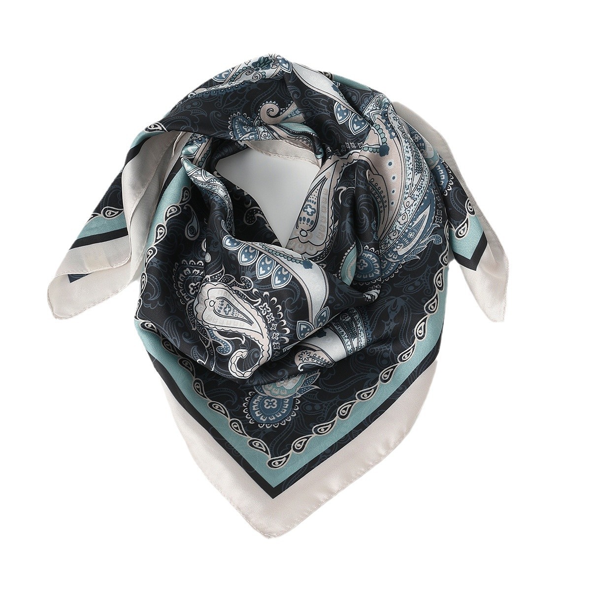 Трансграничный оригинальный 70cm искусственный шелковый шарф шарф Осенняя зима мода кешью цифровая печать солнцезащитный тюрбан
