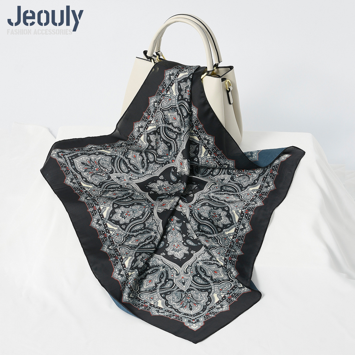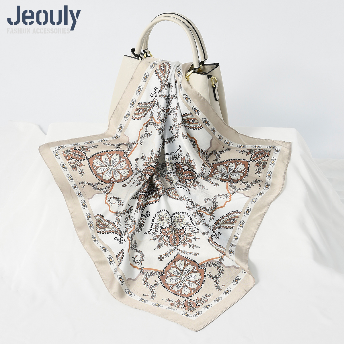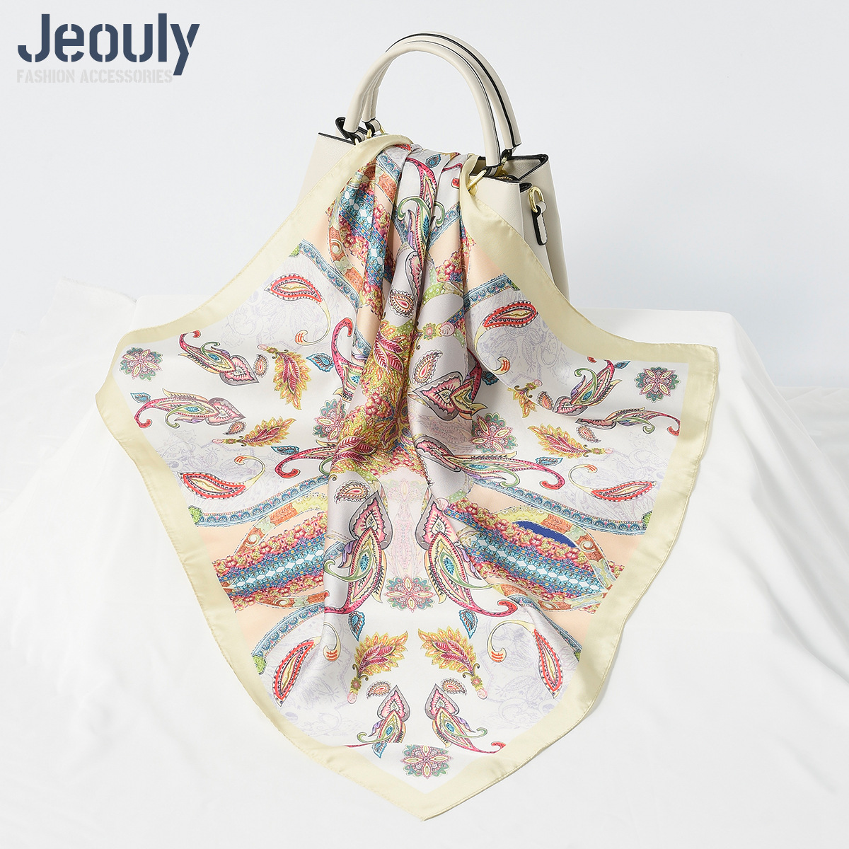 Трансграничный оригинальный 70cm искусственный шелковый шарф шарф Осенняя зима мода кешью цифровая печать солнцезащитный тюрбан