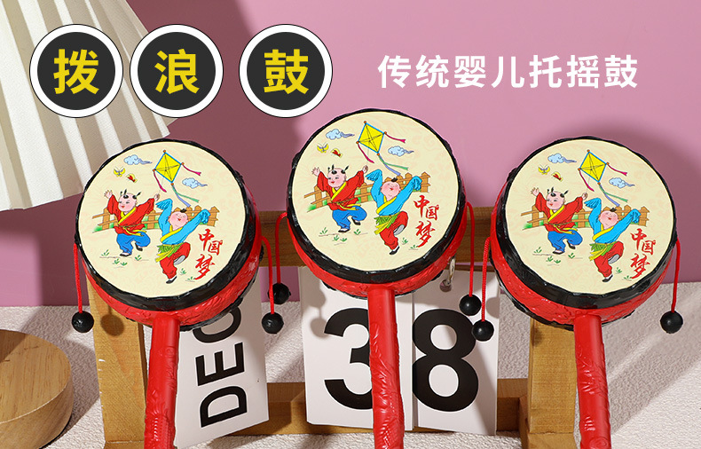 Благоприятный погремушка ностальгический китайский стиль традиционный детский барабан ручная встряхивание развивающие игрушки для оптовой продажи