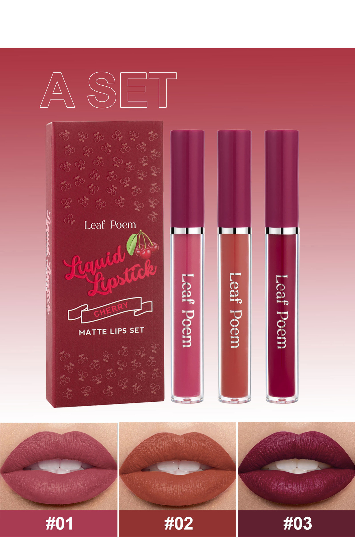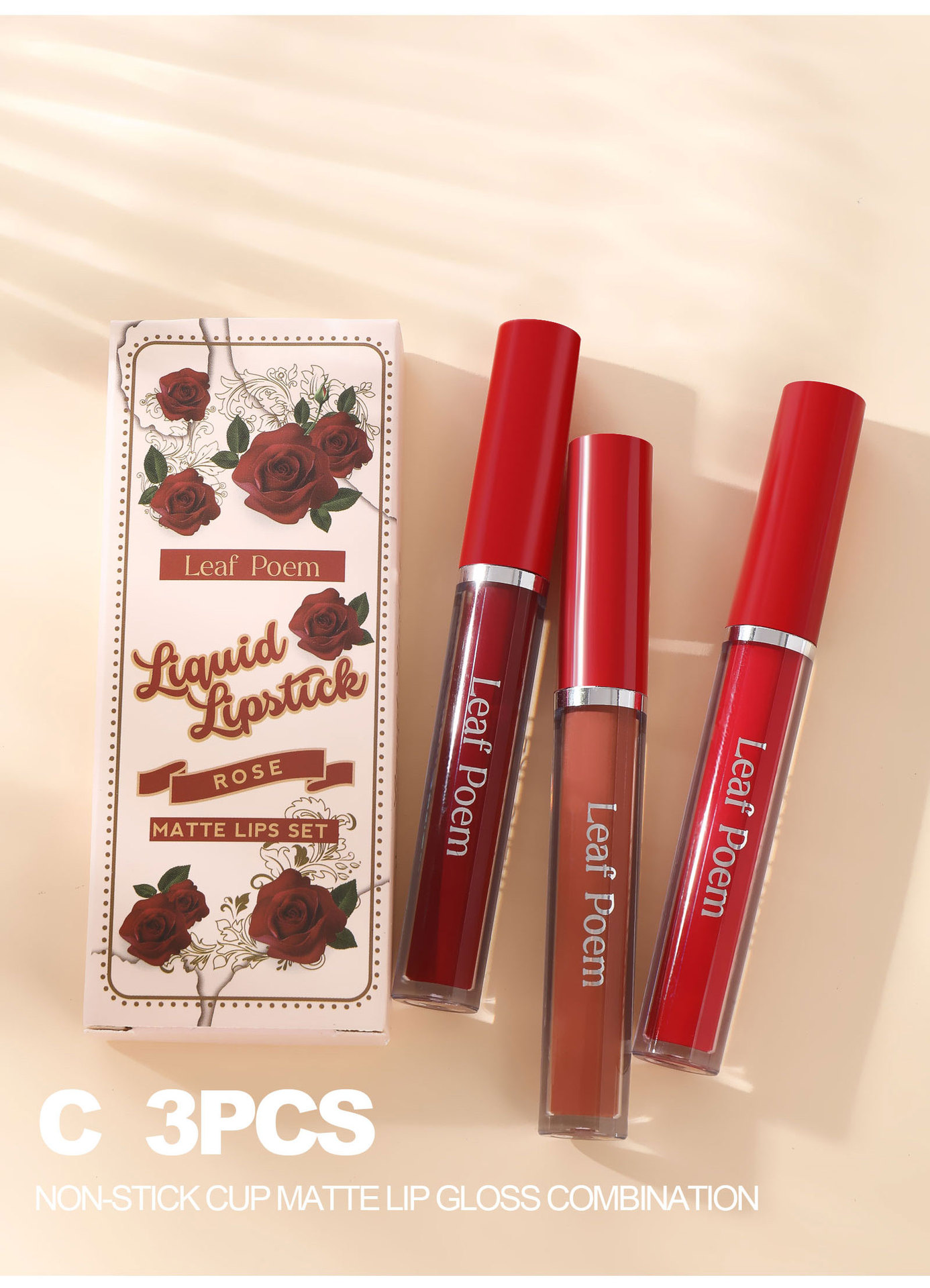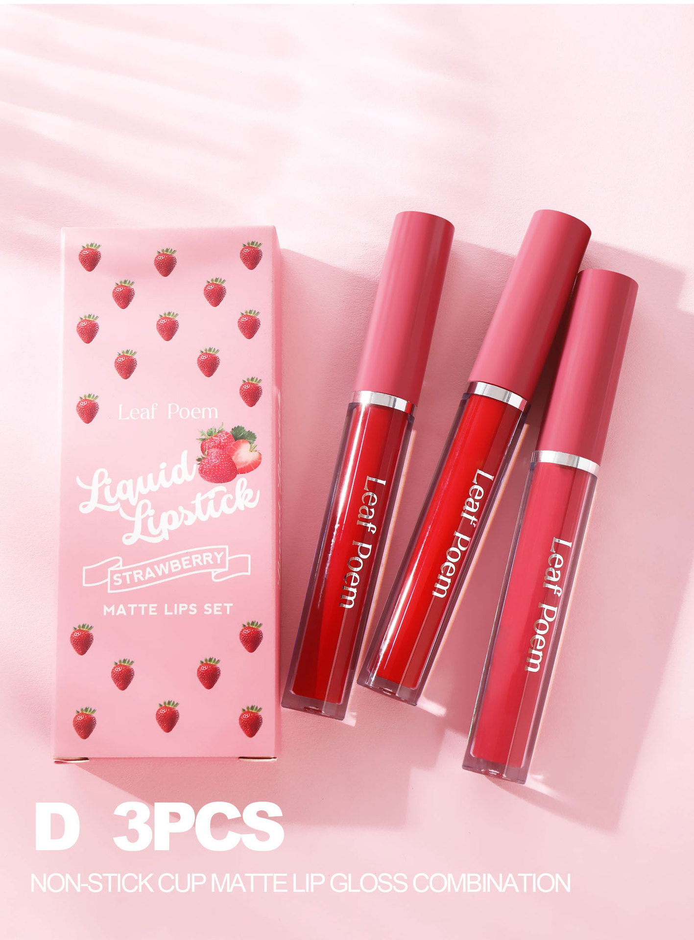 Набор блесков для губ из трех предметов с антипригарным покрытием.