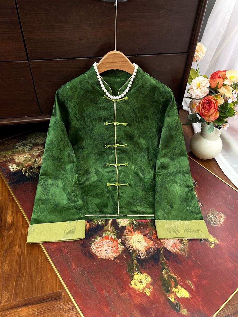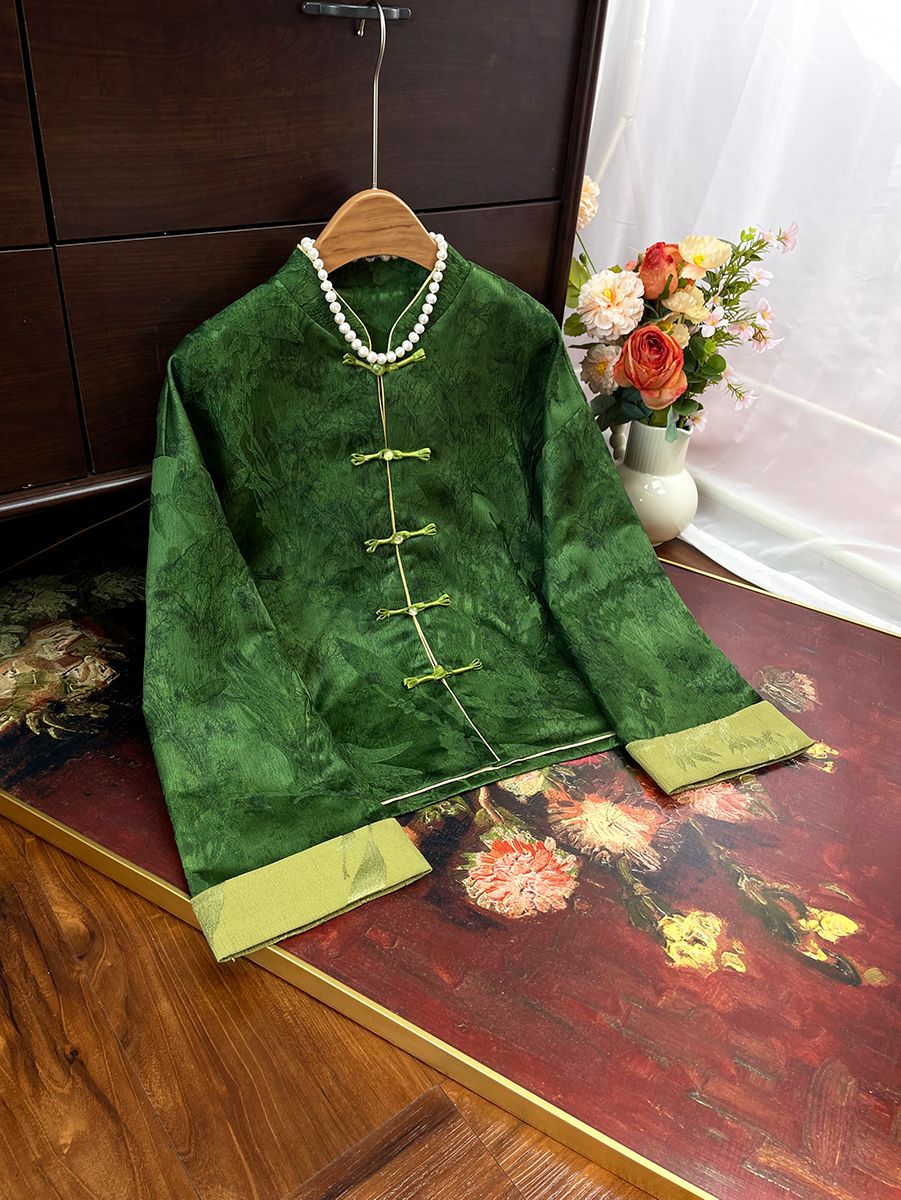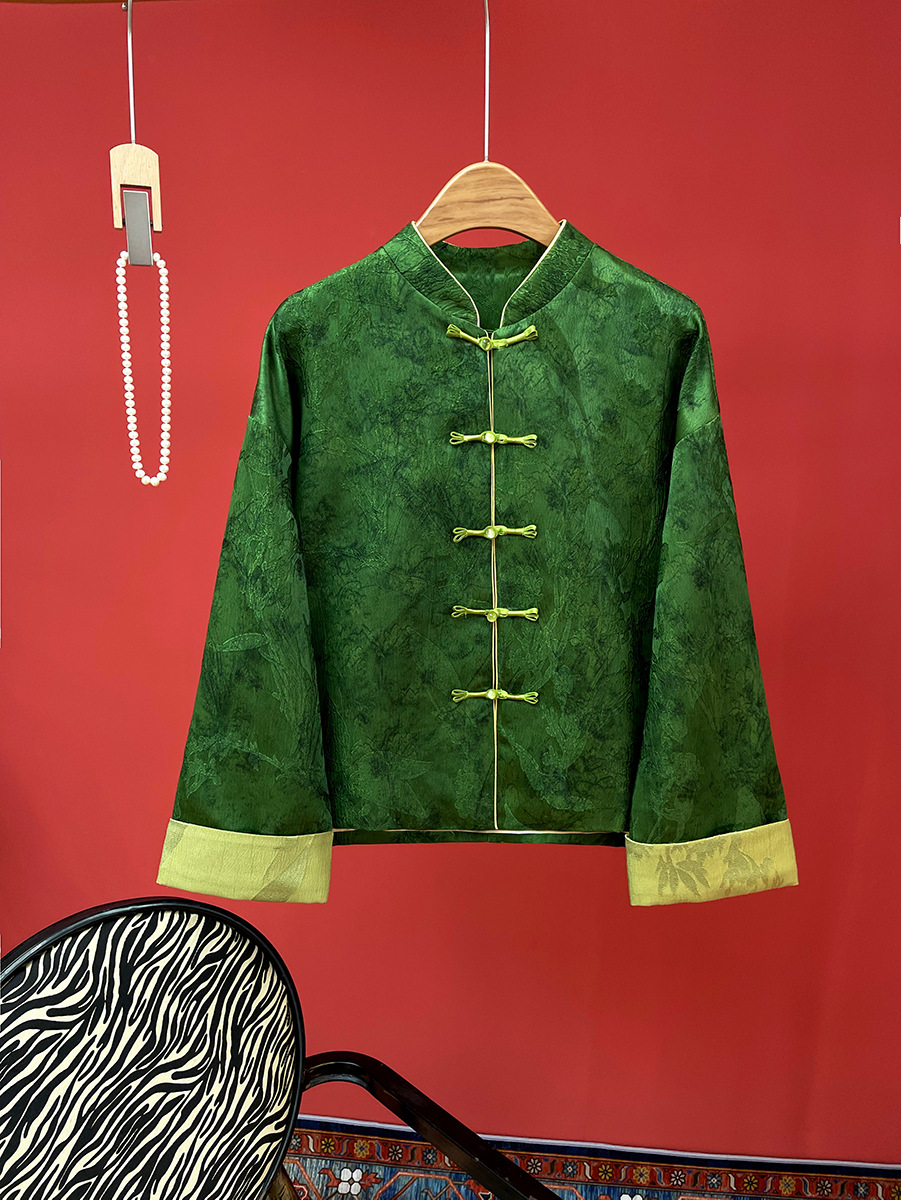 Осенняя винтажная куртка, новая женская одежда в китайском стиле, жаккардовая блузка в этническом стиле с воротником-стойкой, длинными рукавами, на пуговицах, с рукавами в стиле пэчворк, новая осенняя модель.