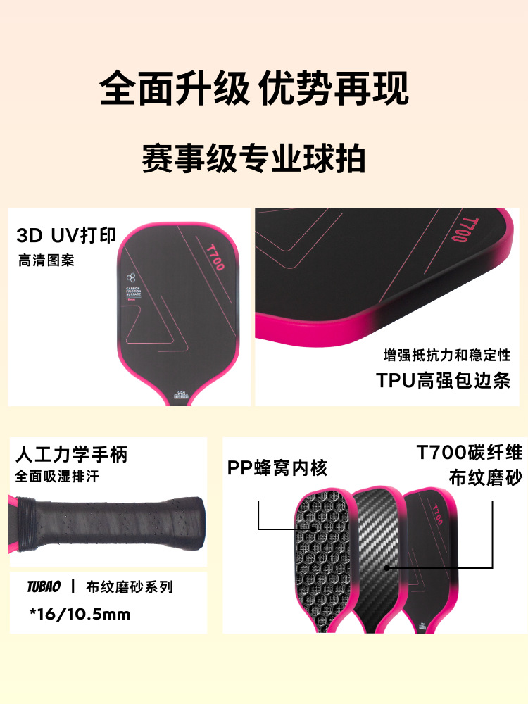Набор ракеток для пиклбола из углеродного волокна T700, матовая текстура, ракетка для пиклбола, специально разработанная для игры в пиклбол.