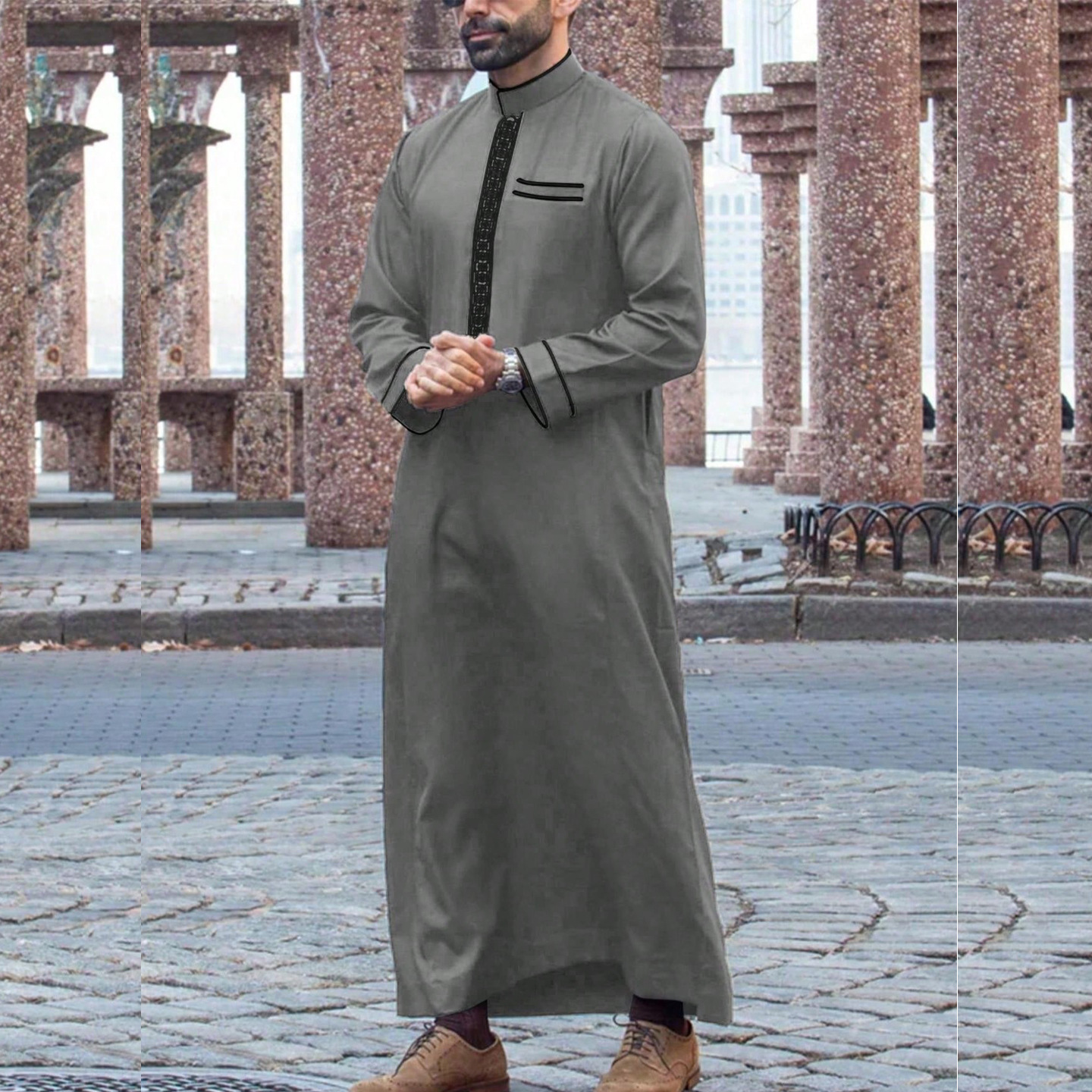 Мужская свободная рубашка-халат в арабском стиле с длинными рукавами, вышивкой и воротником-стойкой, для внешней торговли, для мусульманских стран Ближнего Востока