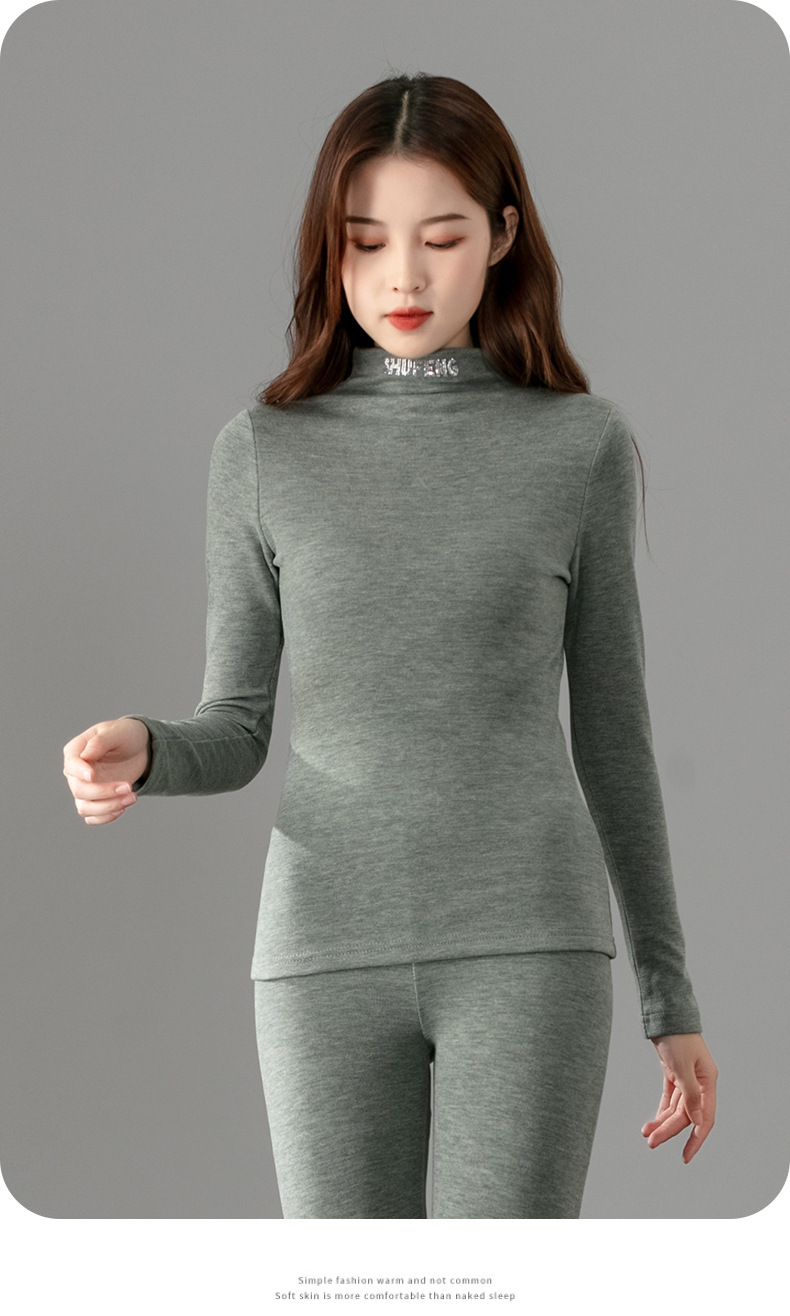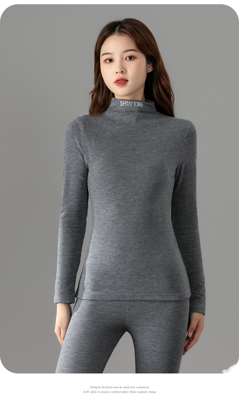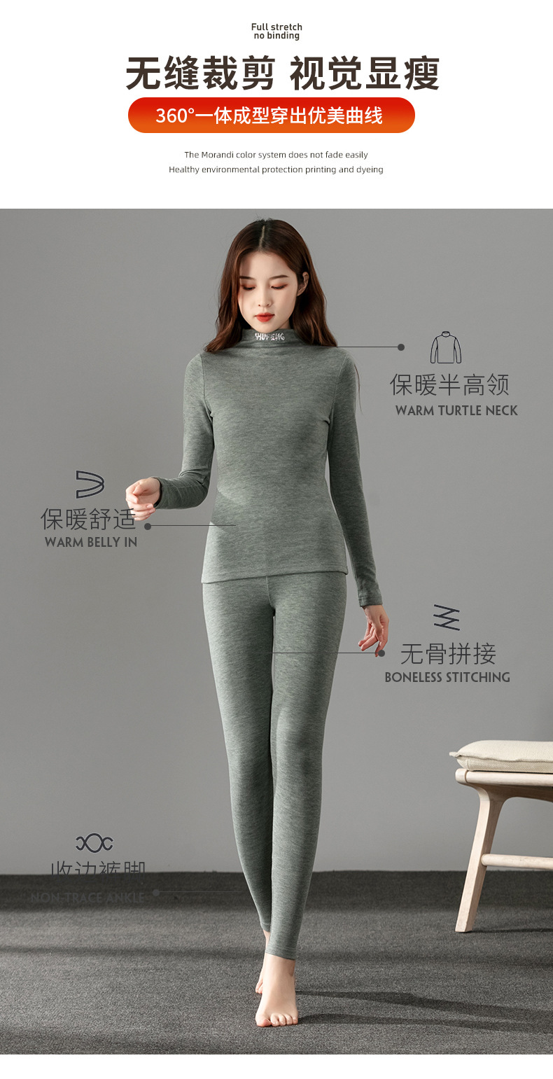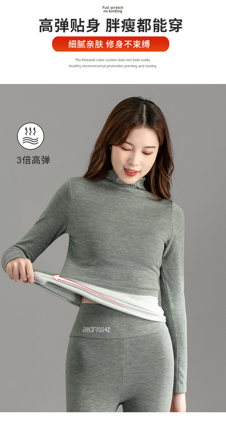 2024 Осень и зима новый женский бархатный теплый костюм эластичный полувысокий воротник нижний термобелье заводской поставки