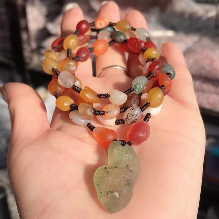 Оптовая фабрика натуральный Alxa Gobi оригинальный камень агат красочное ожерелье агат