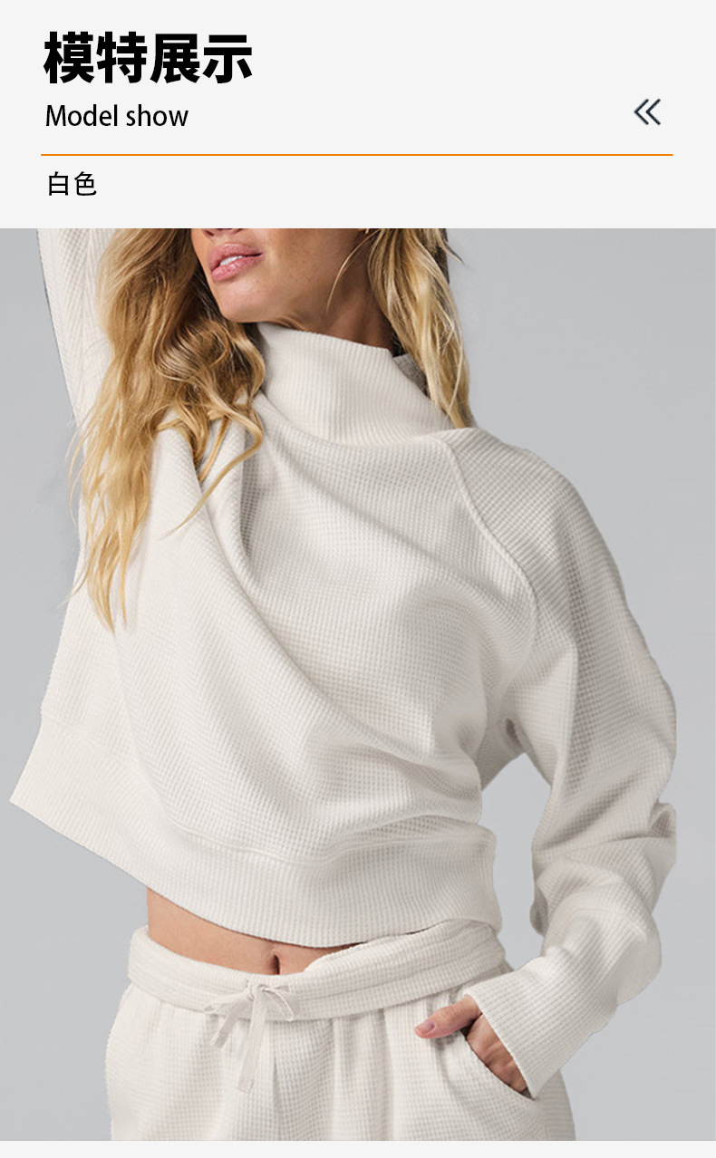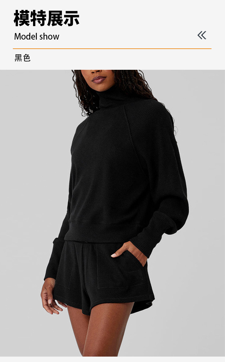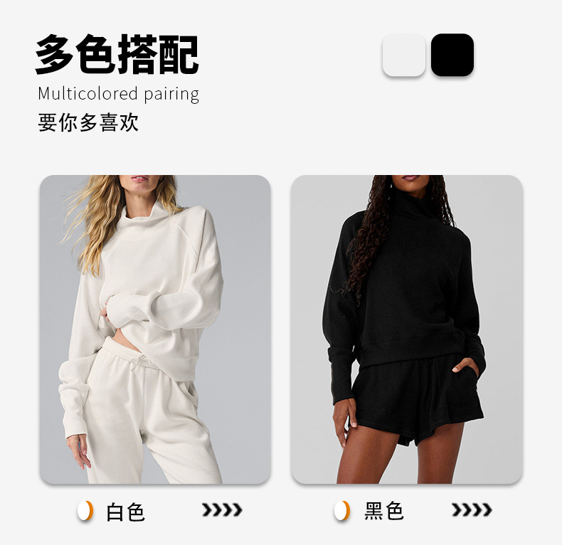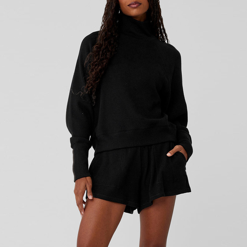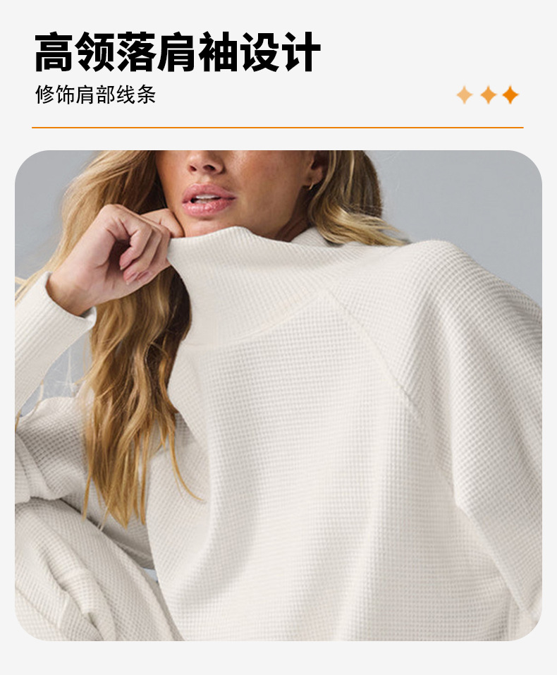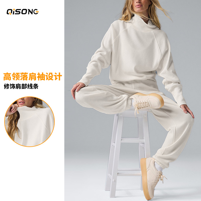 Популярный женский спортивный костюм для фитнеса: вязаный свитер с высоким воротом и длинными рукавами, а также повседневные универсальные брюки-джоггеры с высокой талией.