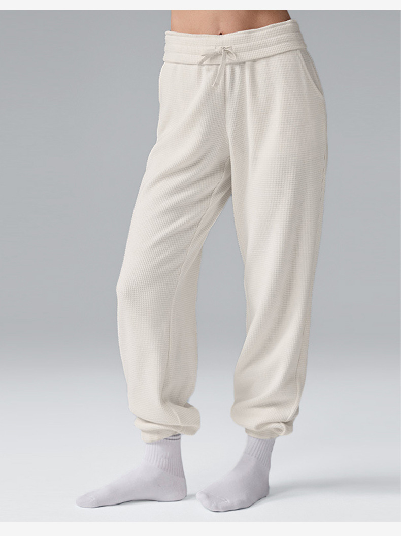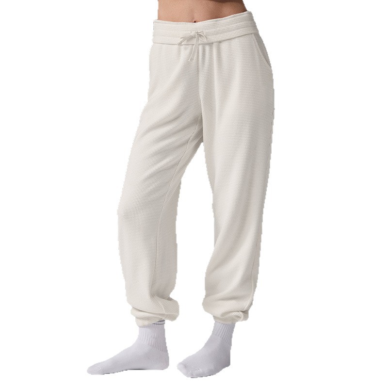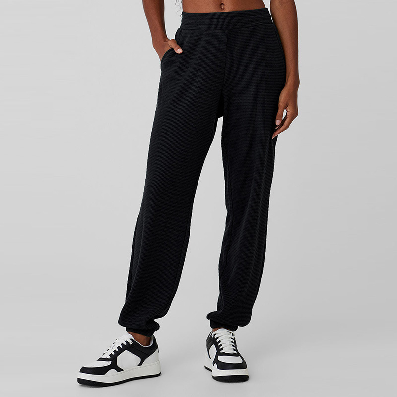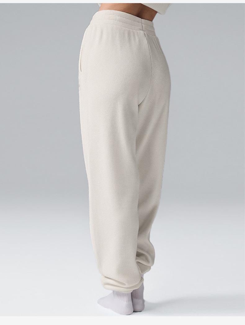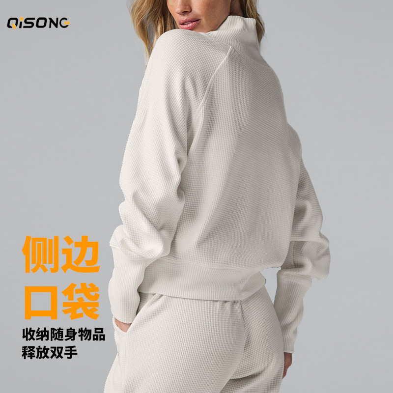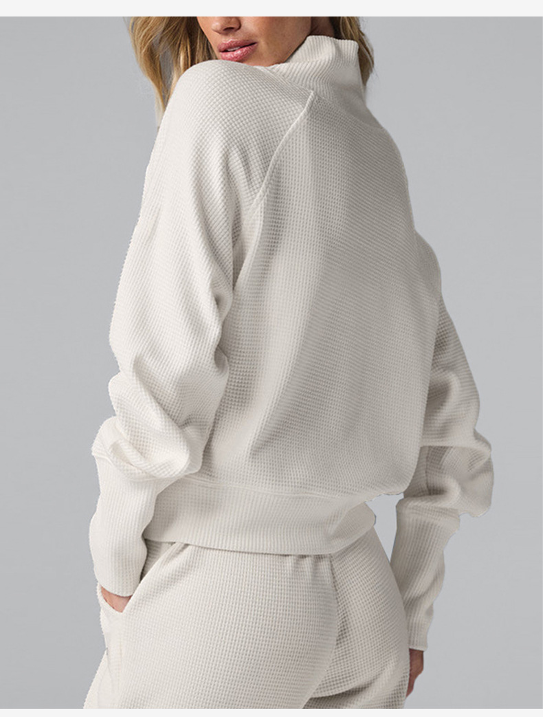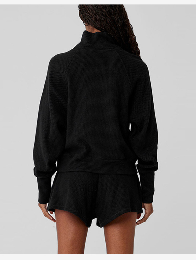 Популярный женский спортивный костюм для фитнеса: вязаный свитер с высоким воротом и длинными рукавами, а также повседневные универсальные брюки-джоггеры с высокой талией.