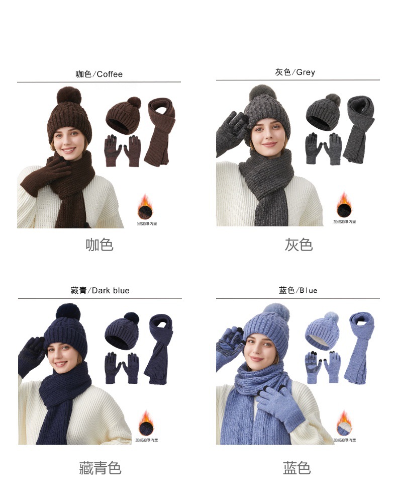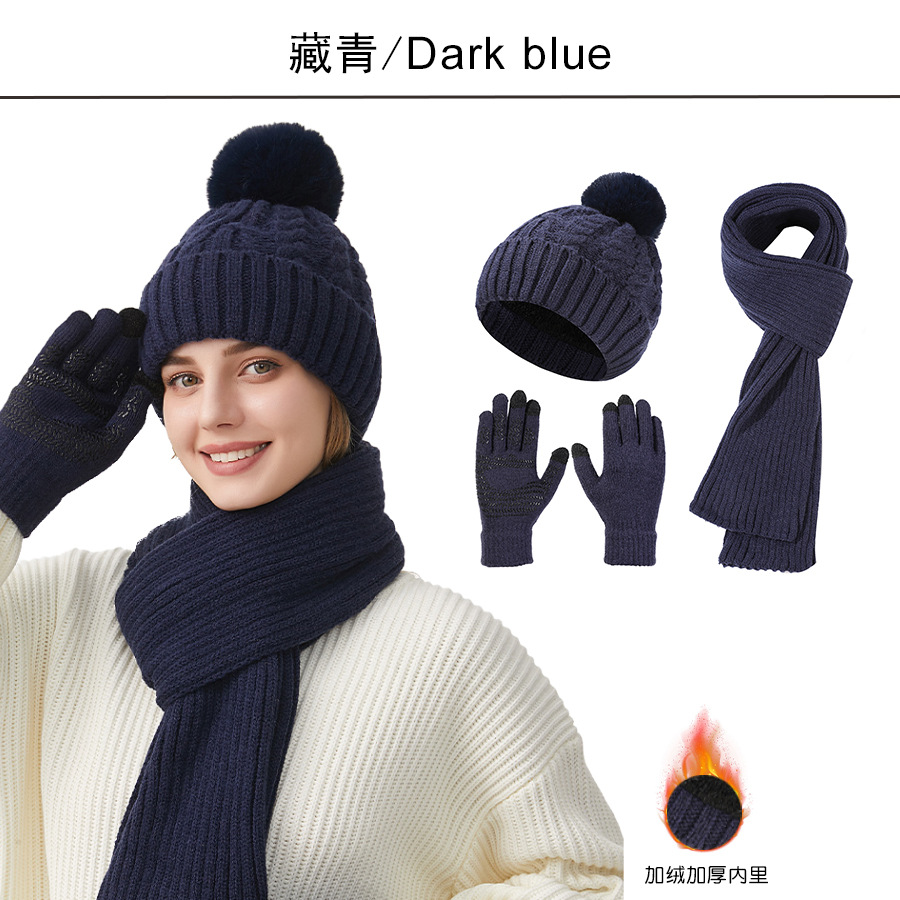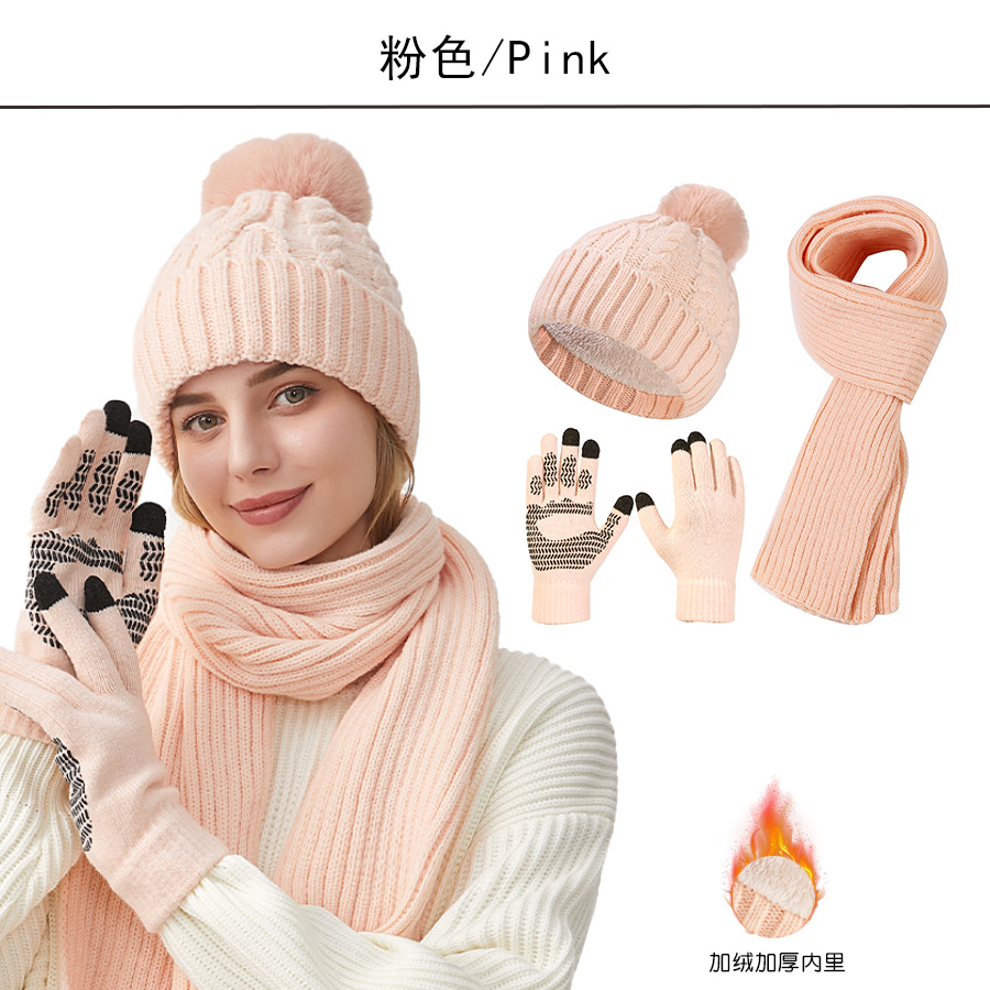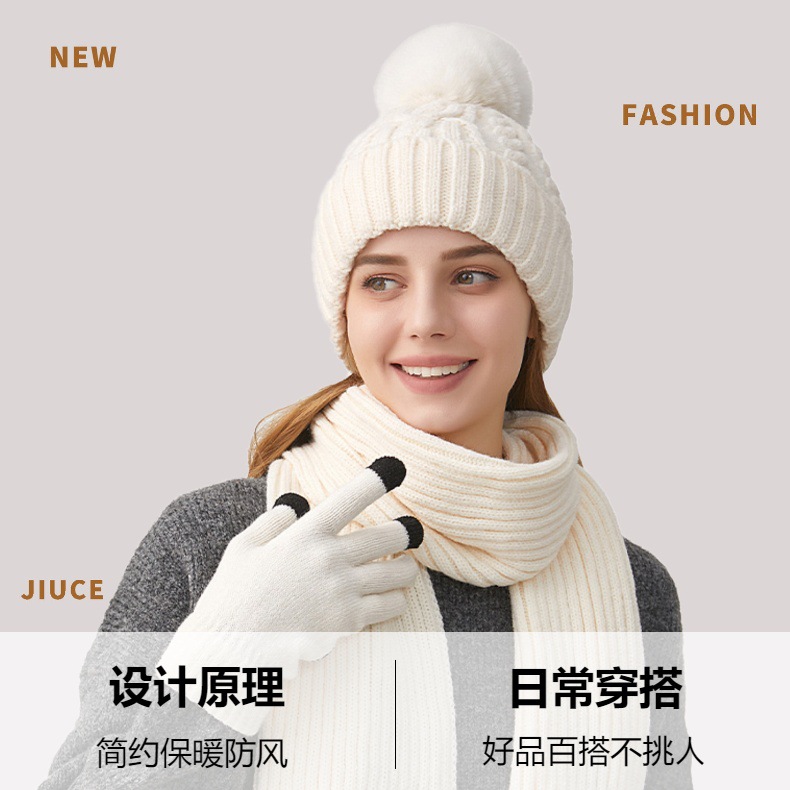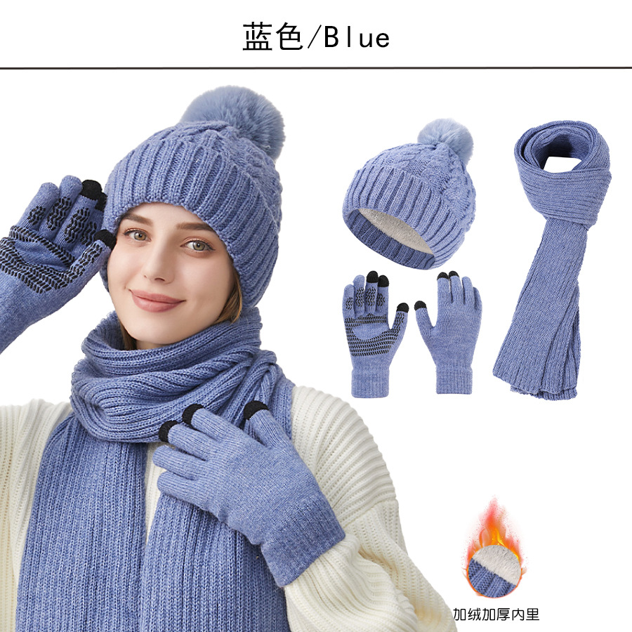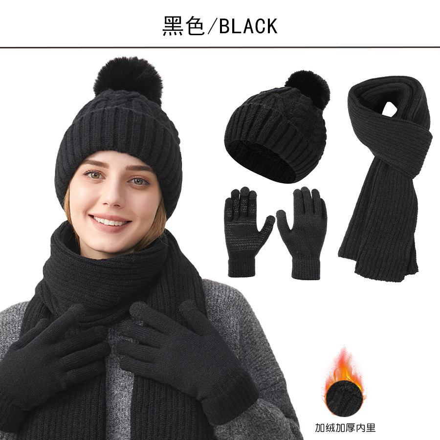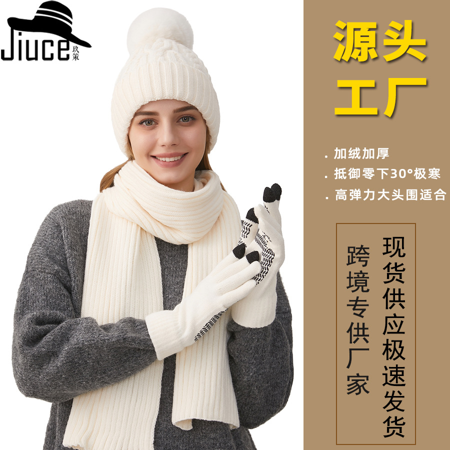 Трансграничная трикотажная шапка шарф перчатки из трех частей женский зимний новый утолщенные наушники теплая шляпа нагрудник комплект