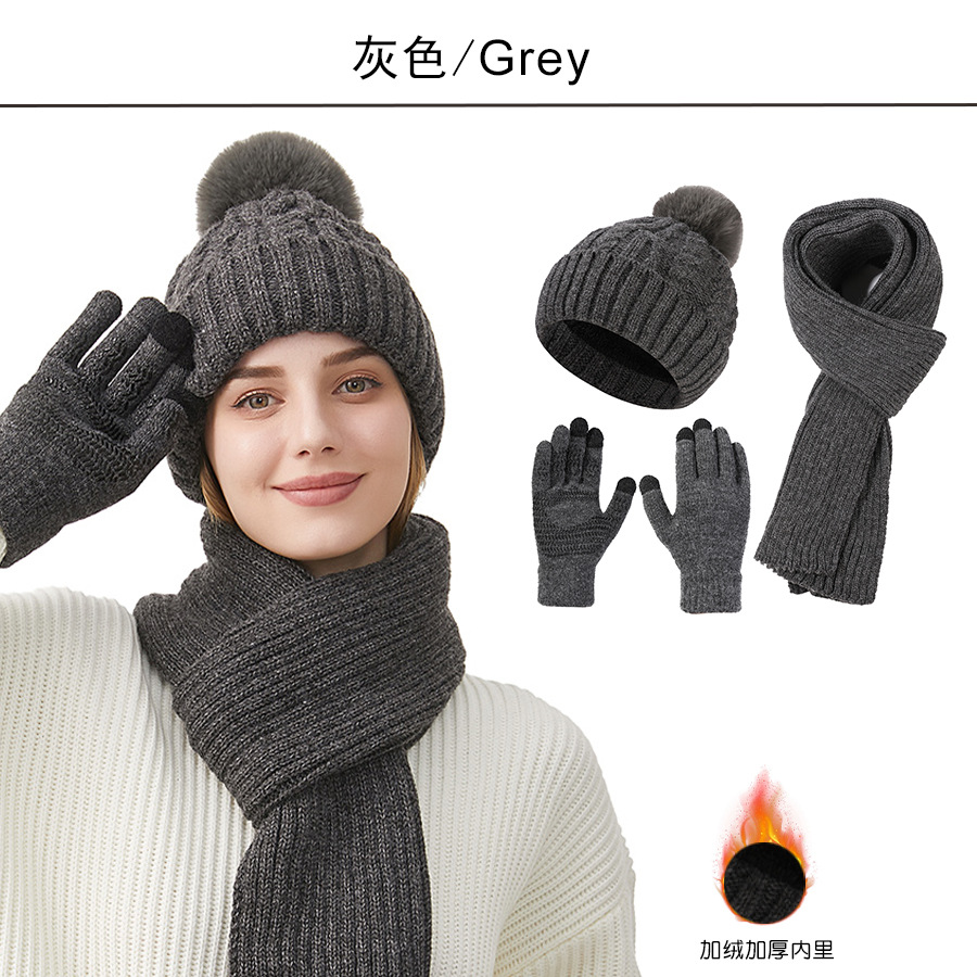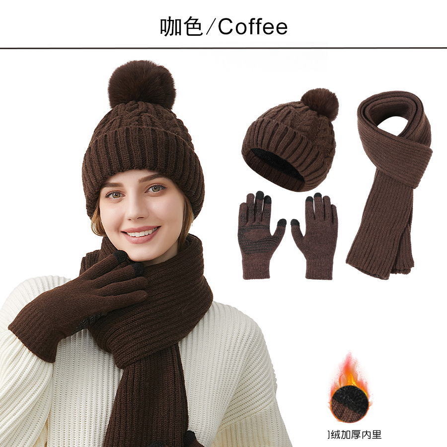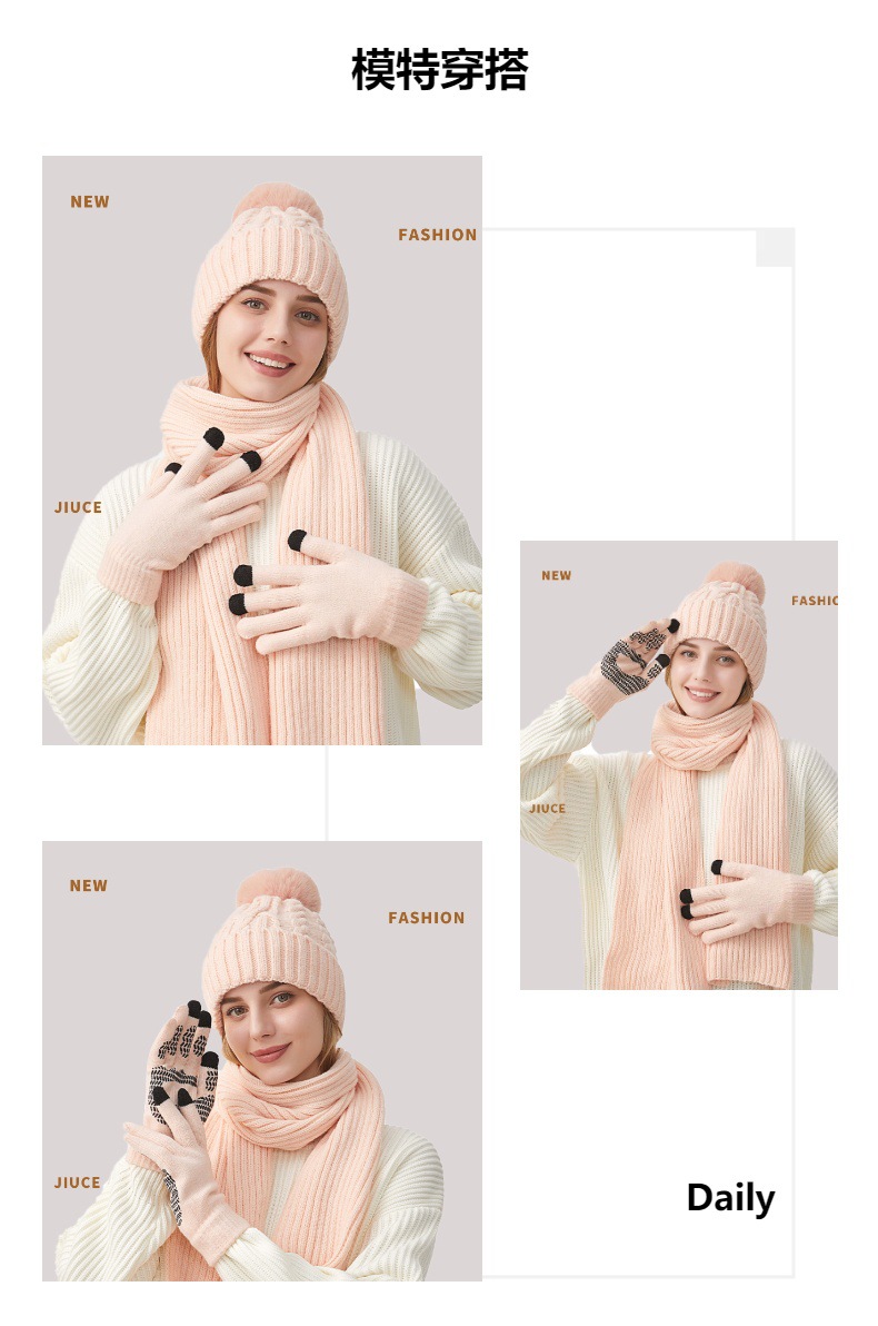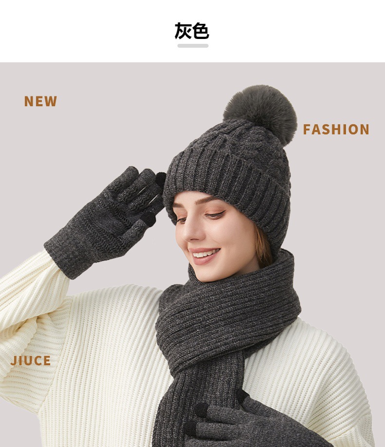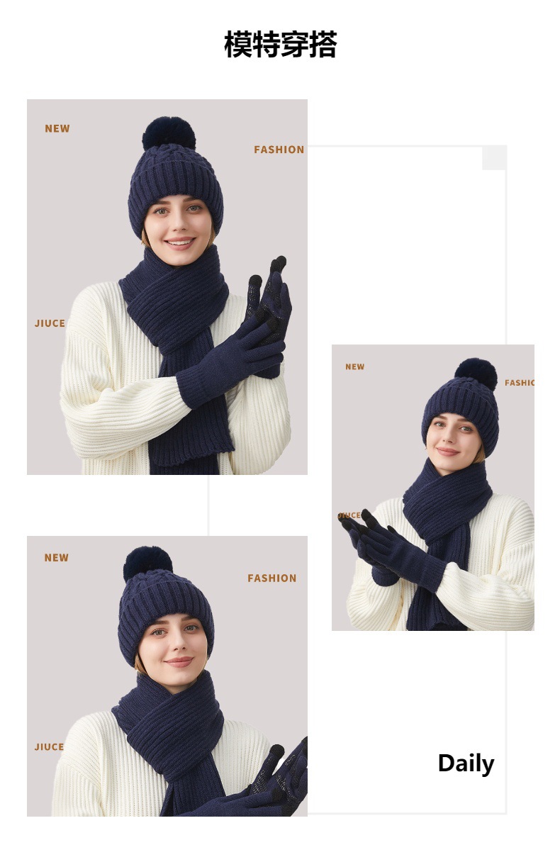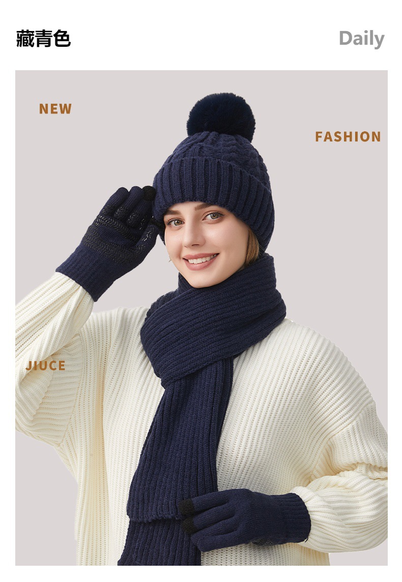 Трансграничная трикотажная шапка шарф перчатки из трех частей женский зимний новый утолщенные наушники теплая шляпа нагрудник комплект