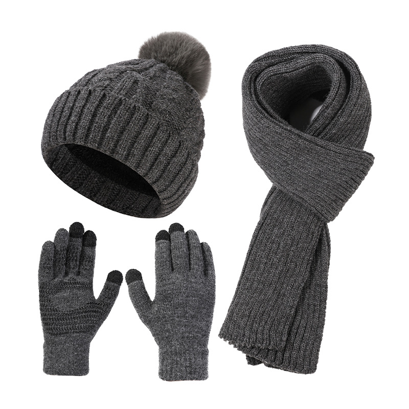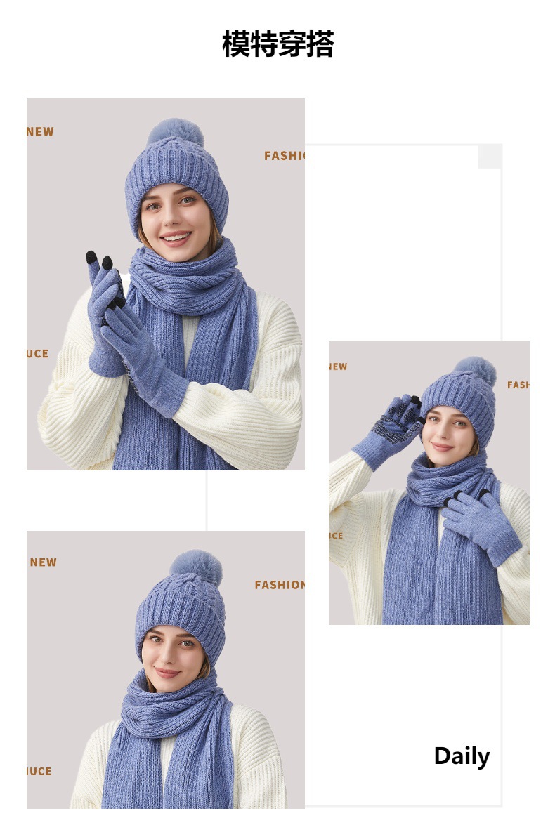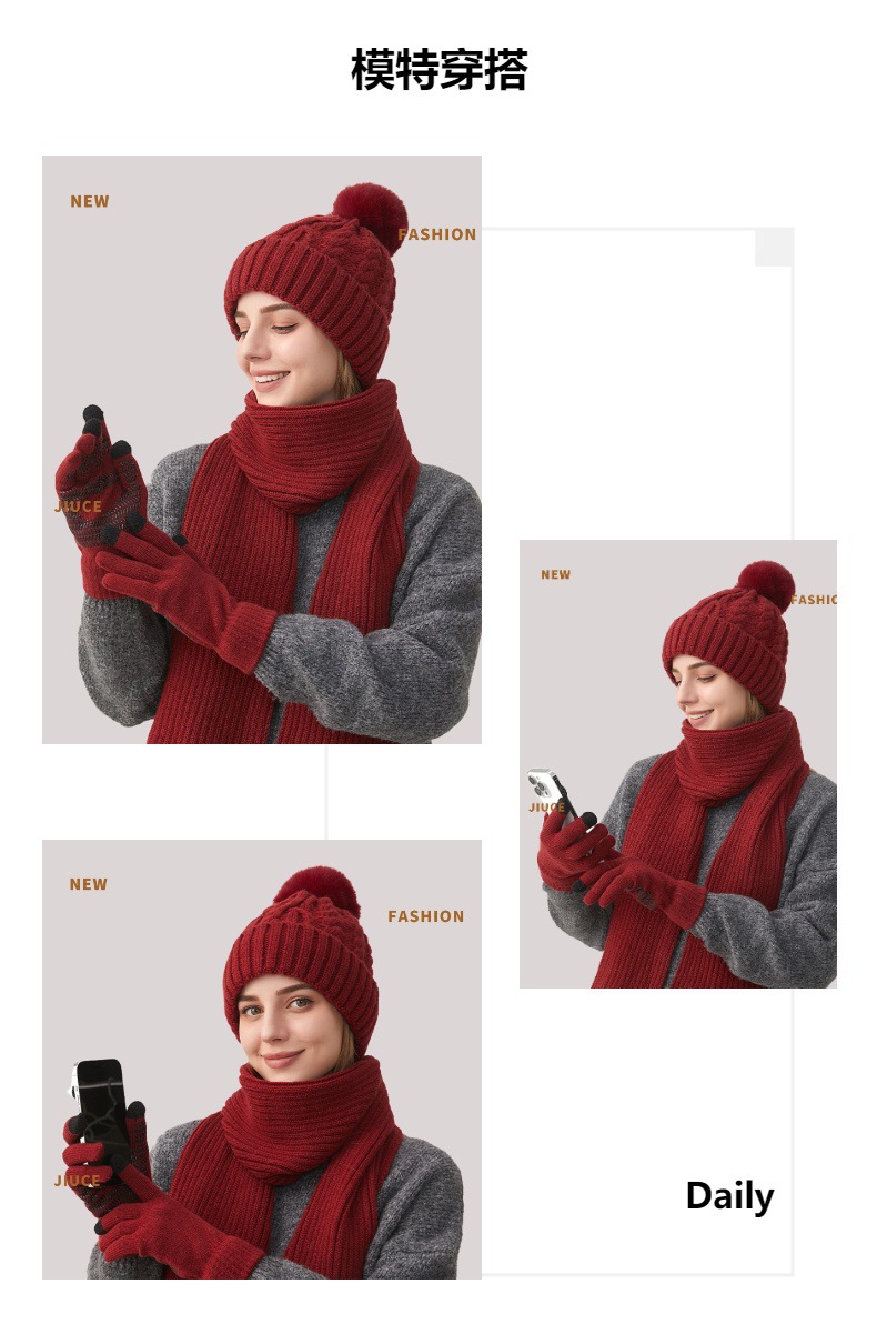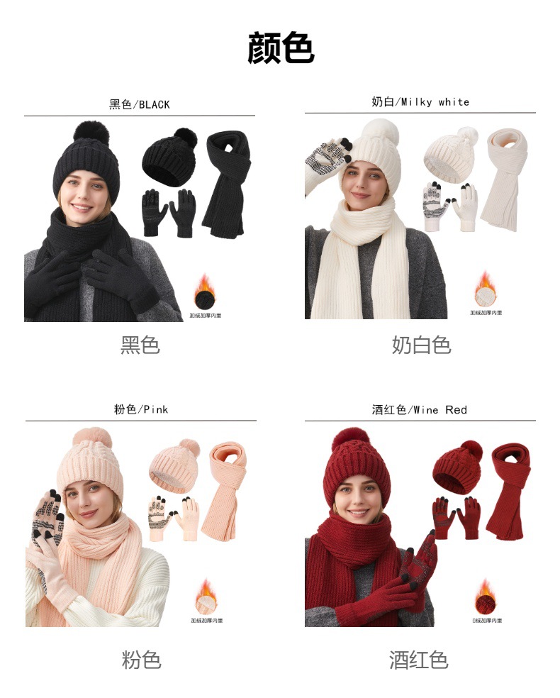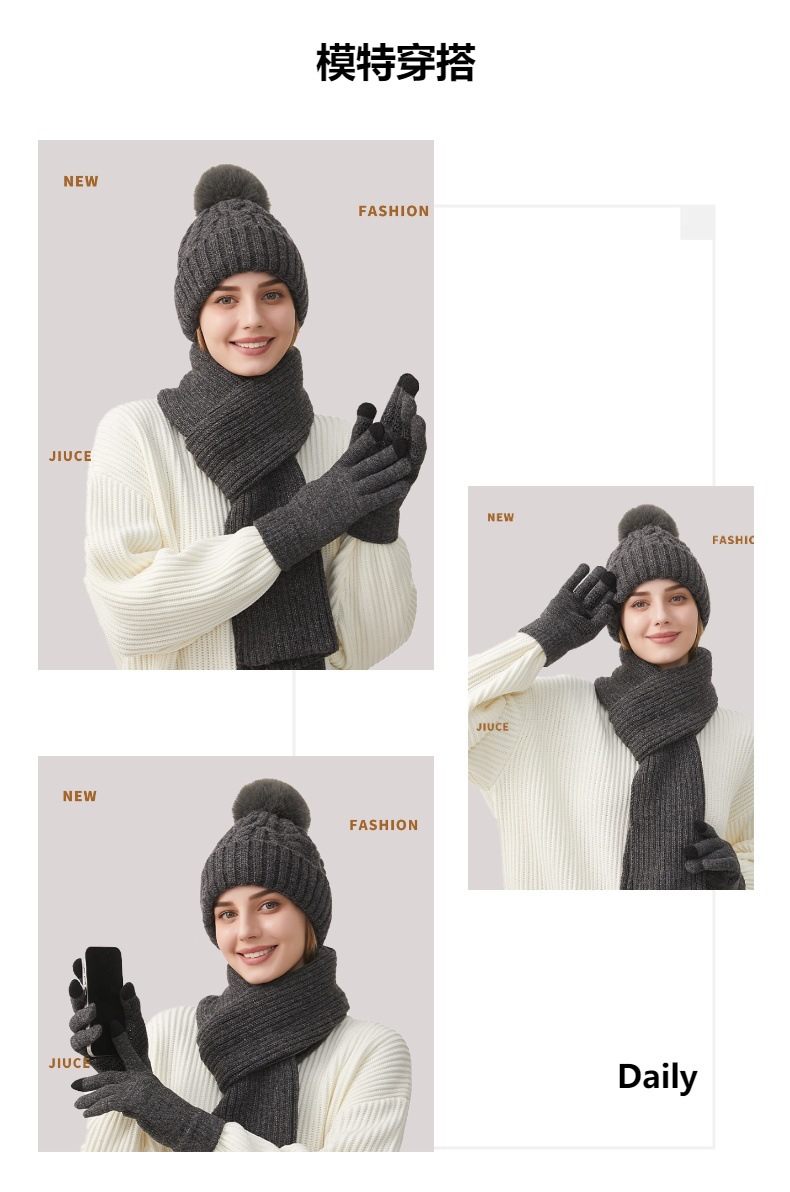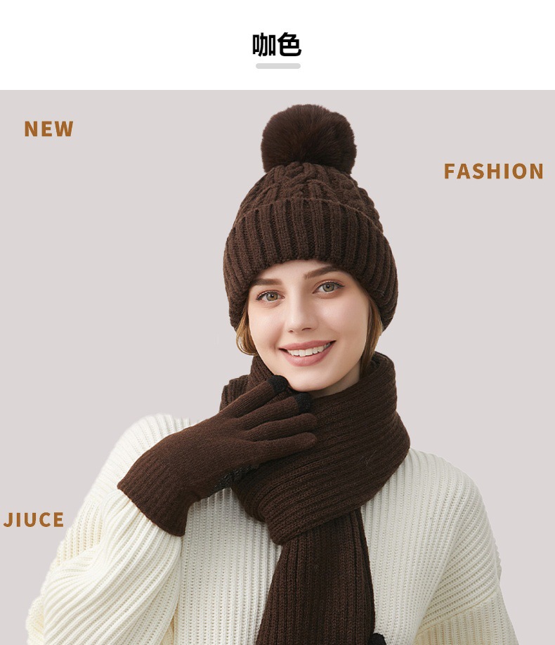Трансграничная трикотажная шапка шарф перчатки из трех частей женский зимний новый утолщенные наушники теплая шляпа нагрудник комплект