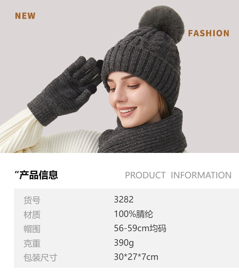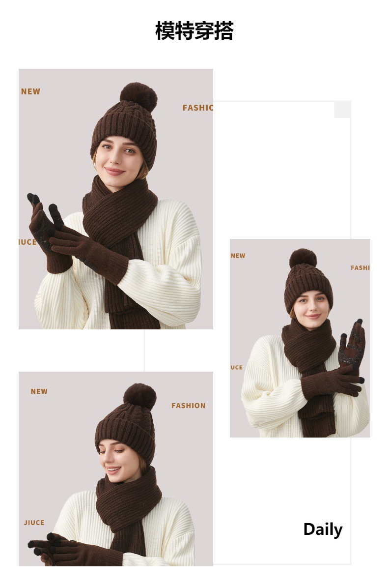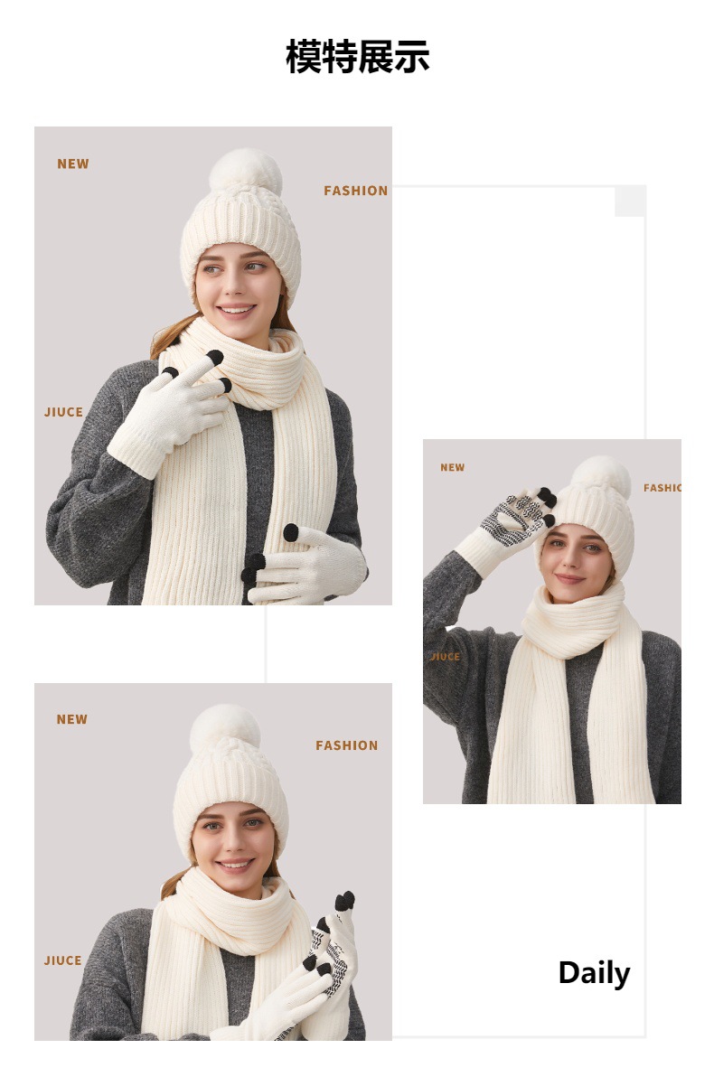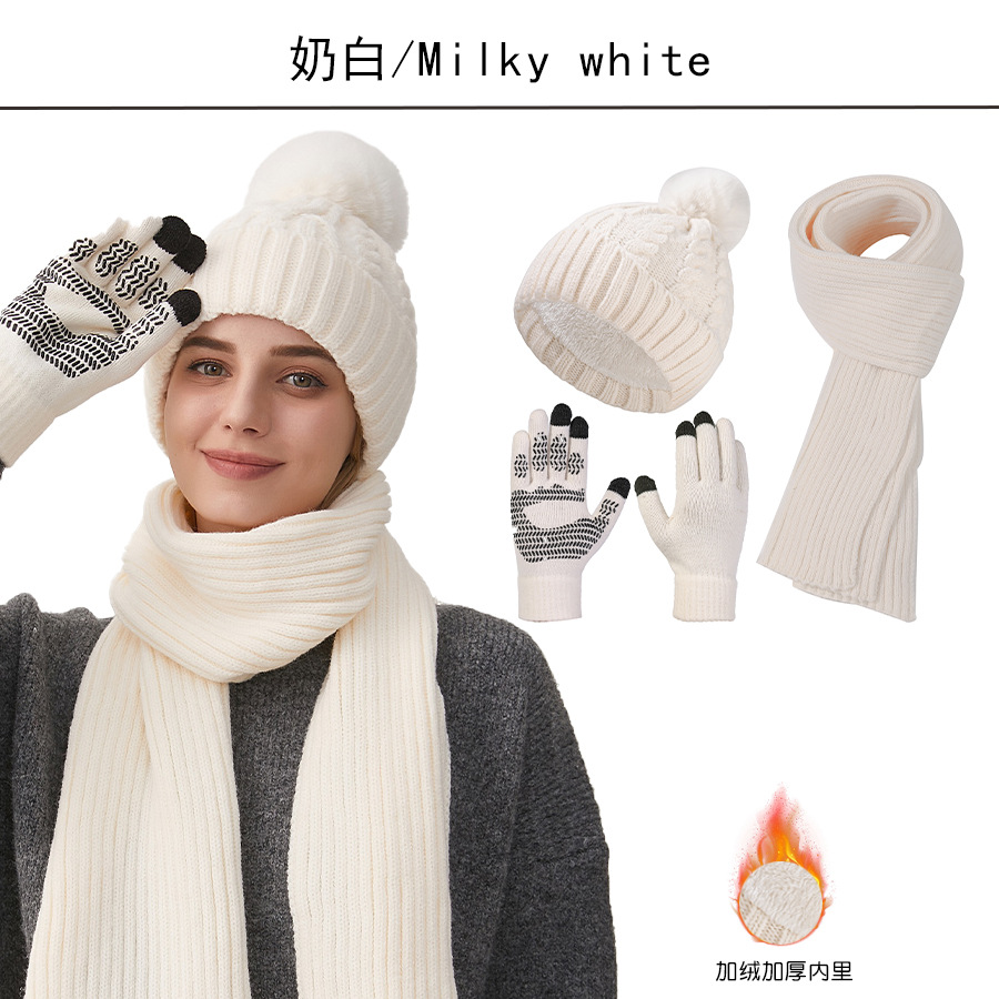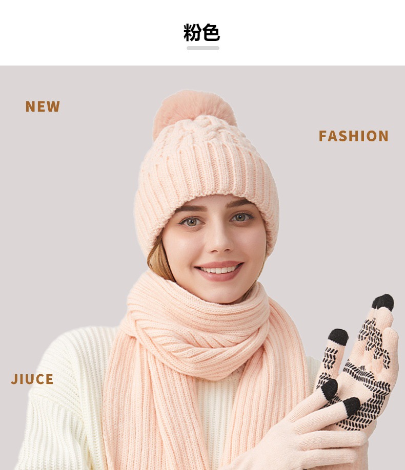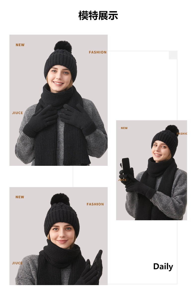 Трансграничная трикотажная шапка шарф перчатки из трех частей женский зимний новый утолщенные наушники теплая шляпа нагрудник комплект