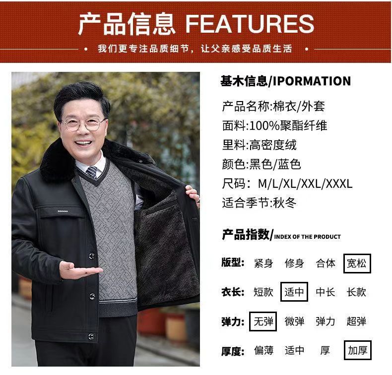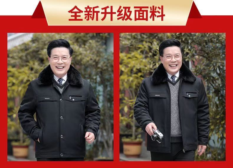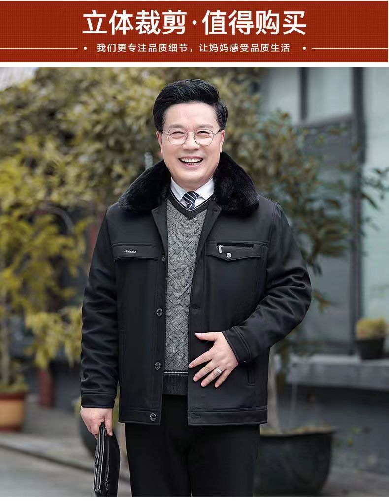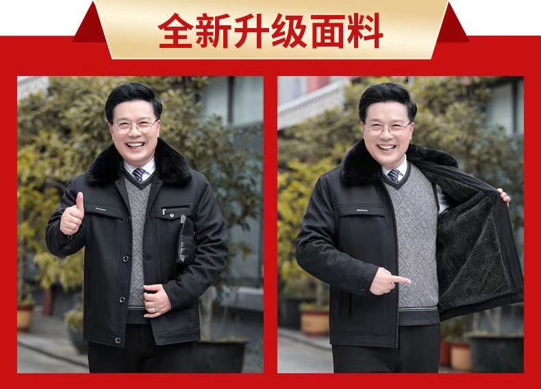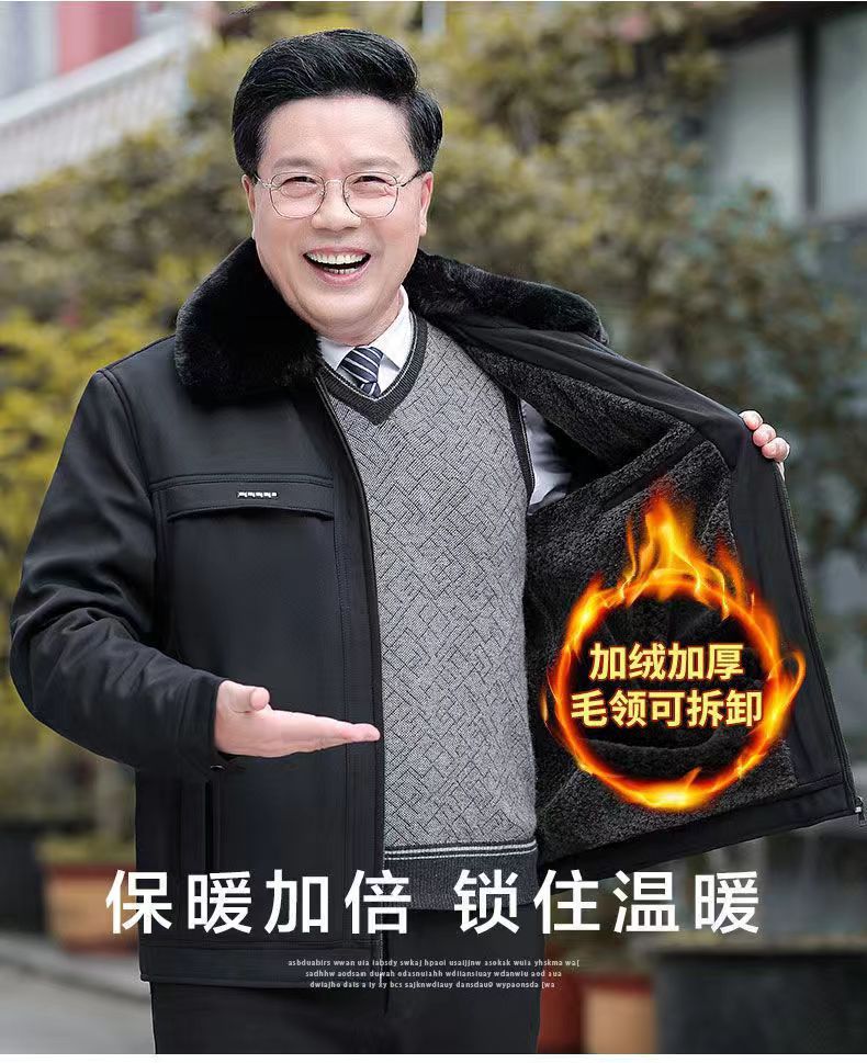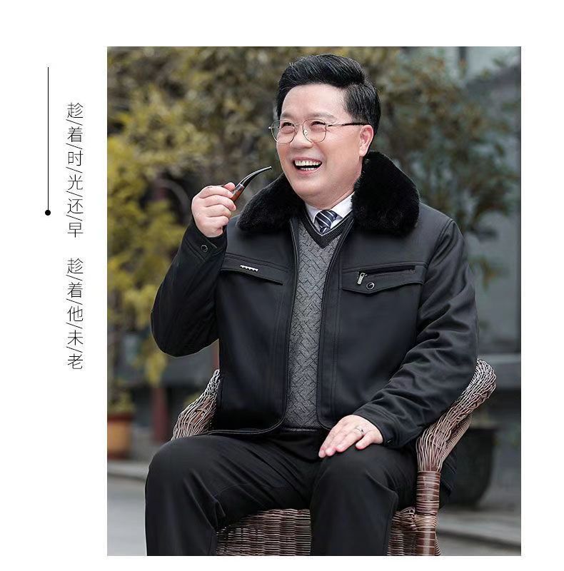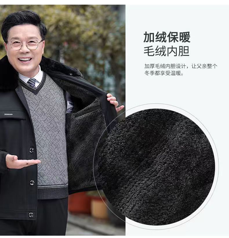 Мужская утепленная флисовая куртка из хлопка для мужчин среднего и старшего возраста, осенне-зимняя, легкая, деловой стиль для пожилых мужчин.
