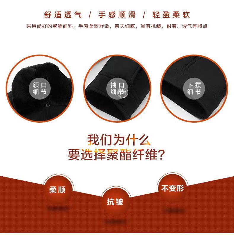 Черный пуговицы плюс бархат и утолщение.; Черная молния плюс бархат и утолщение.