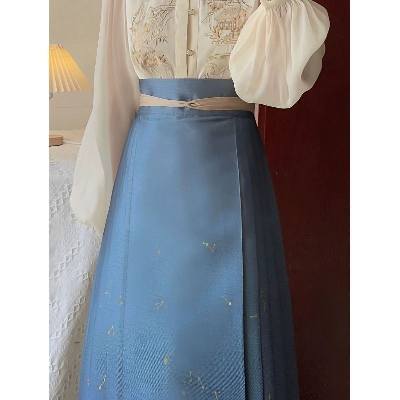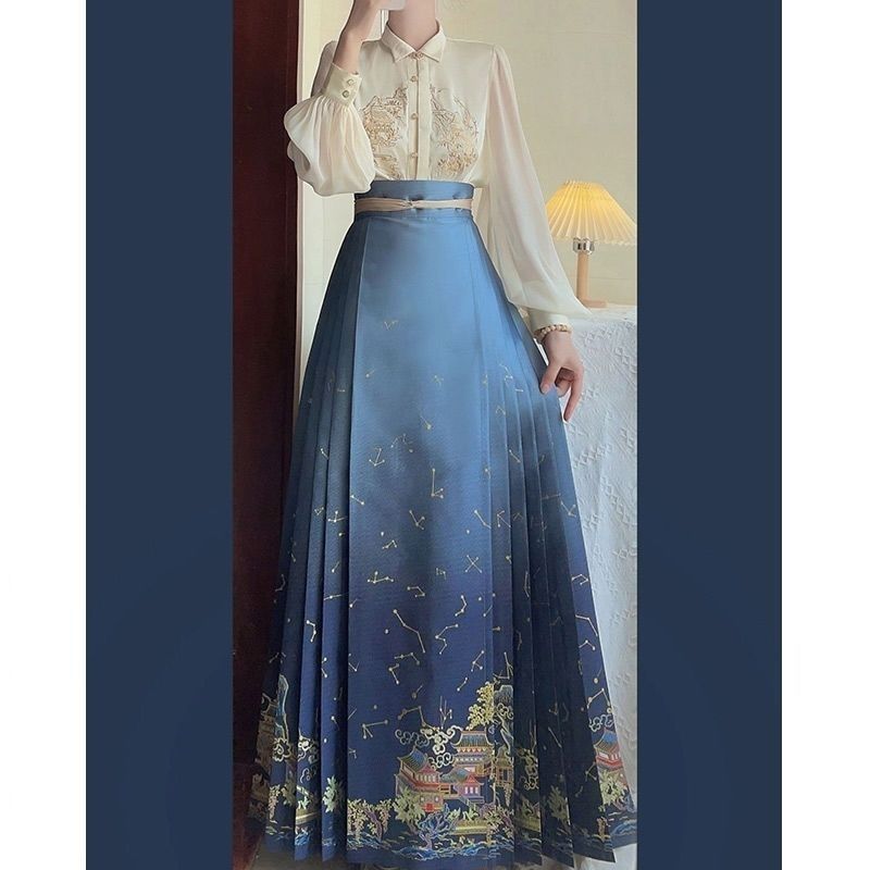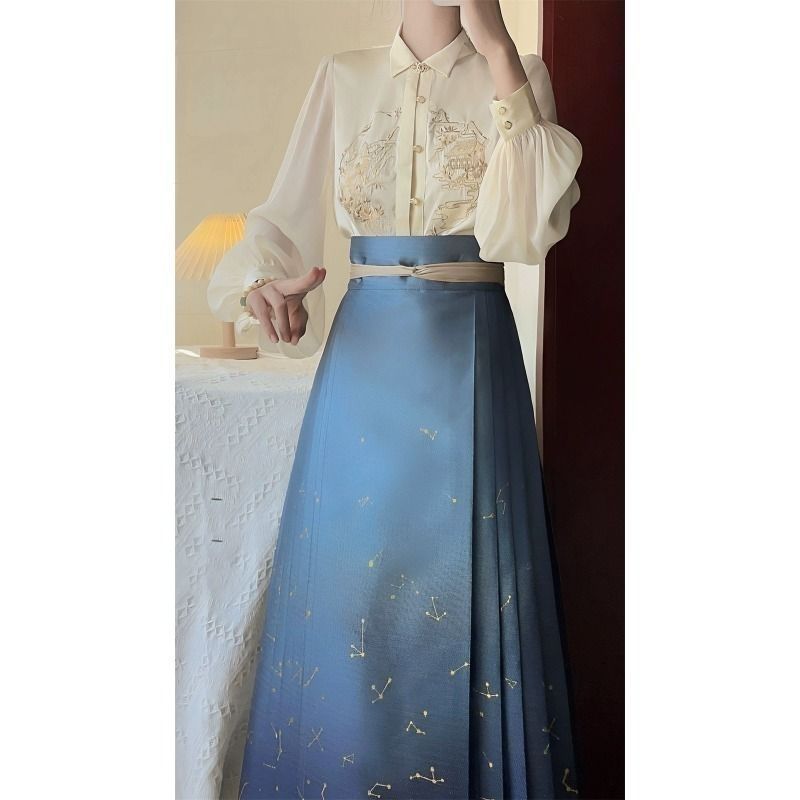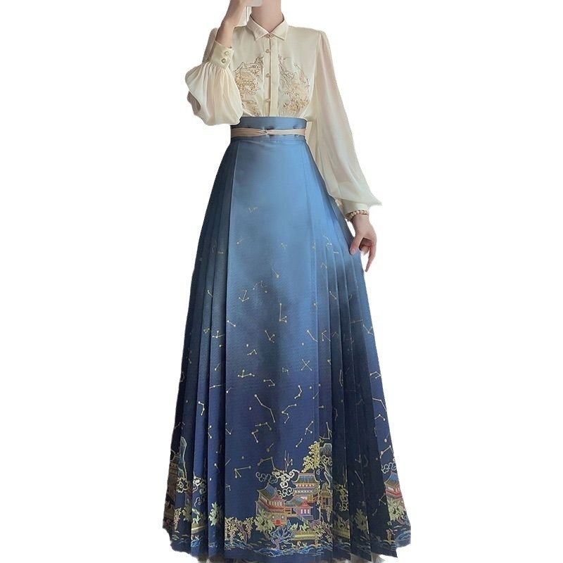 Новый китайский стиль улучшенной конской юбки набор для ежедневных поездок 2024 весна и осень новый национальный стиль для взрослых Hanfu