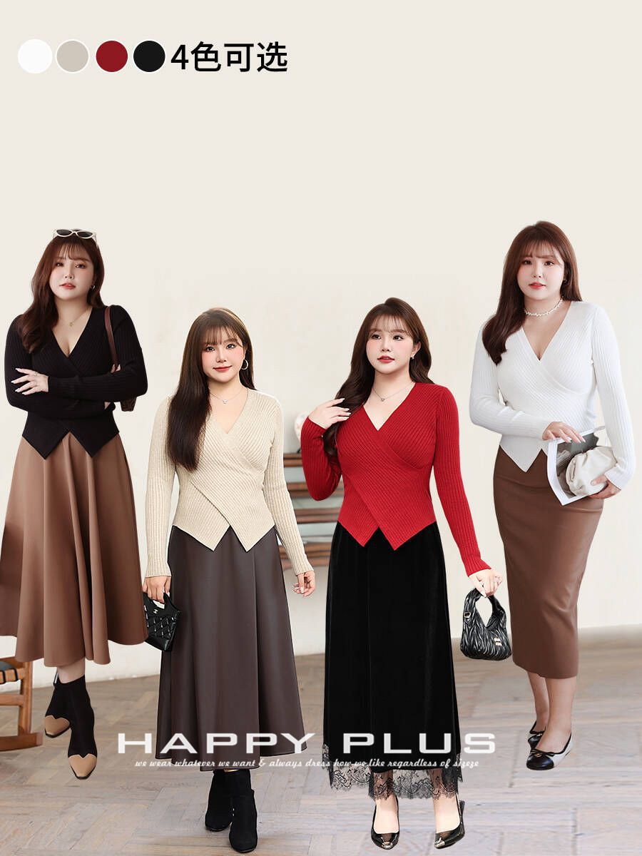 V-образный вырез Крест Нежный Nins Ветер с положительным плечом свитер Run его 8775 плюс размер Французский горячий свитер