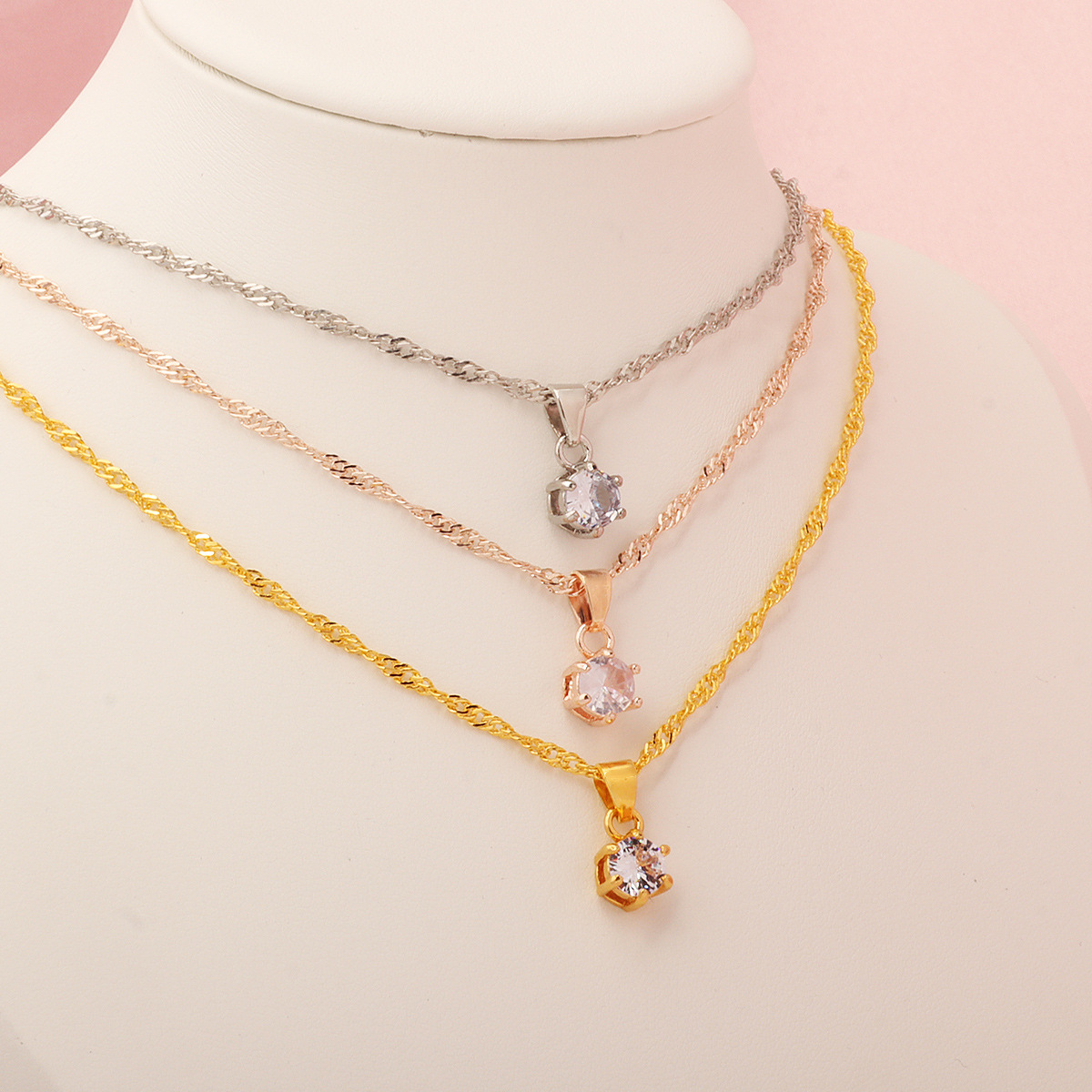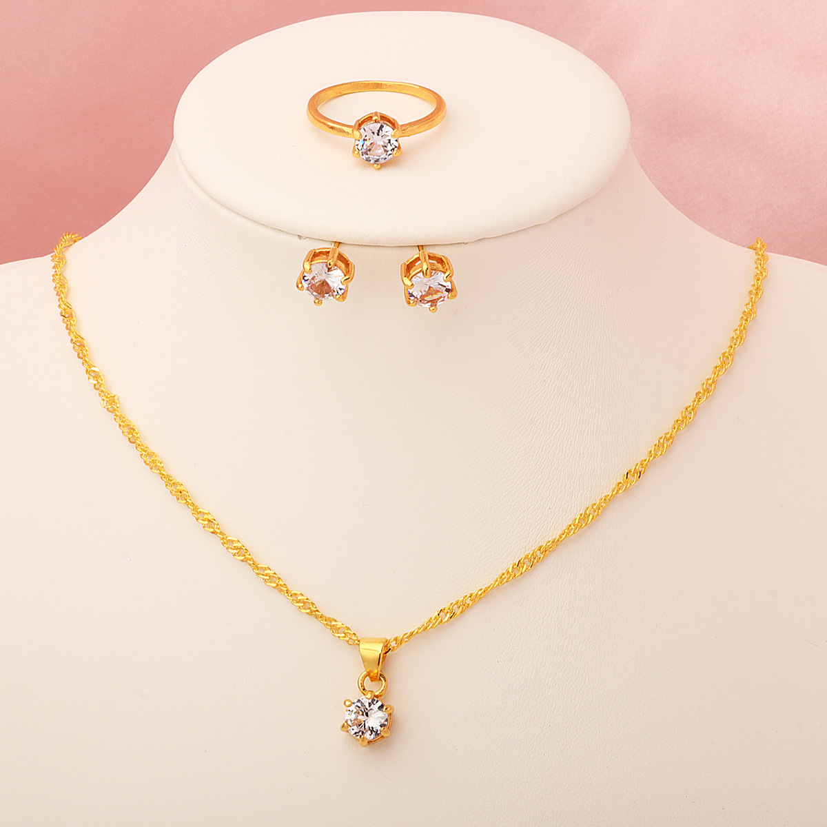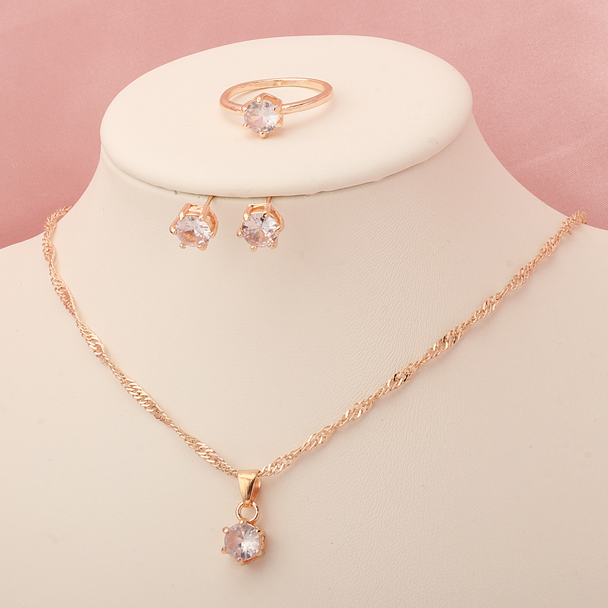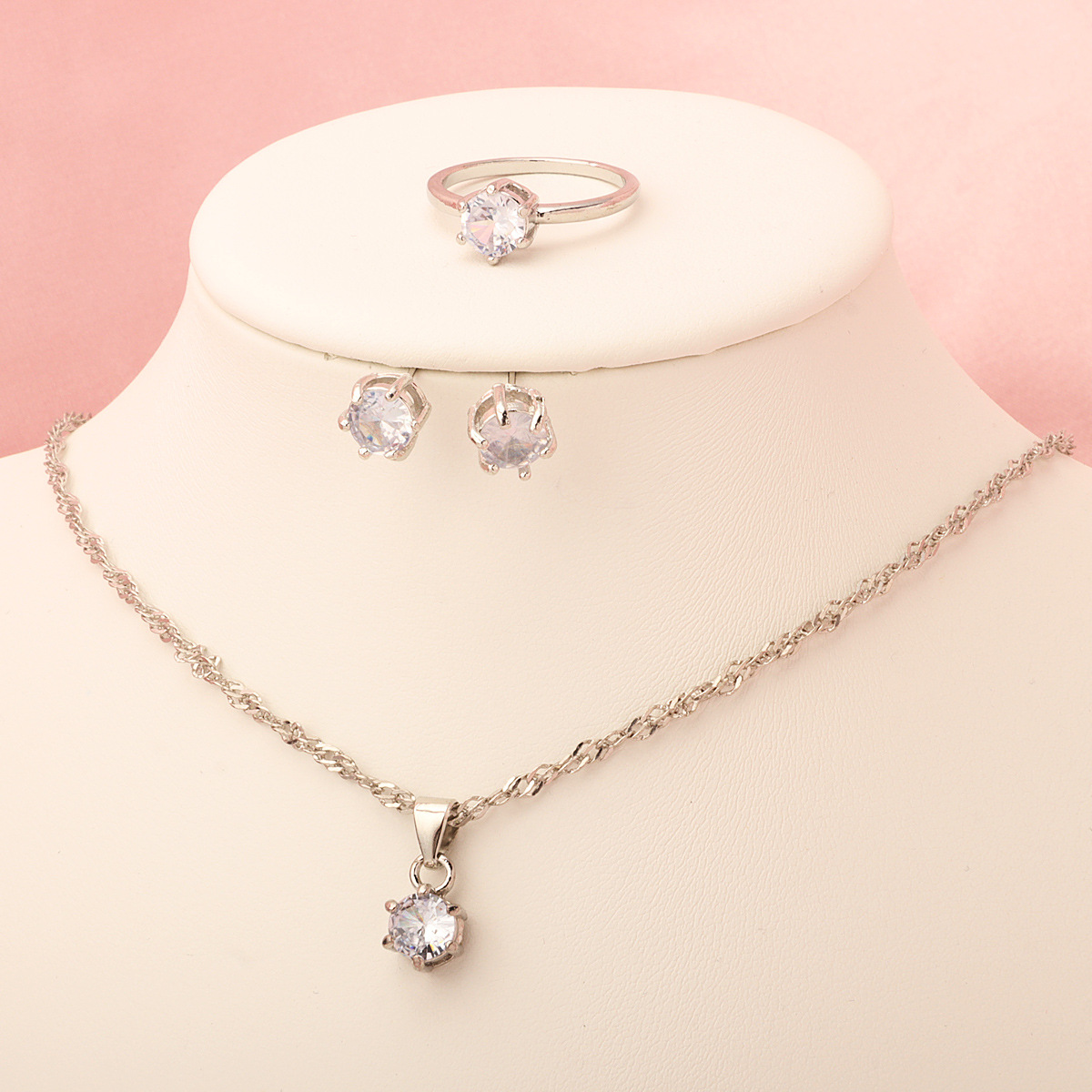 Европейский и американский трансграничный минималистский кулон классический шестикоготный циркон ожерелье женское дикое кольцо серьги 3 комплекта оптом