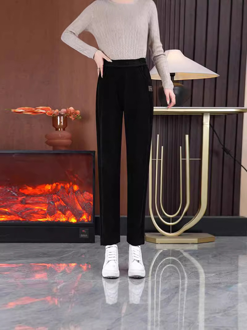 Осенние и зимние брюки с кашемировыми повседневными брюками 2024 новые тонкие прямые теплые брюки с высокой талией свободные брюки