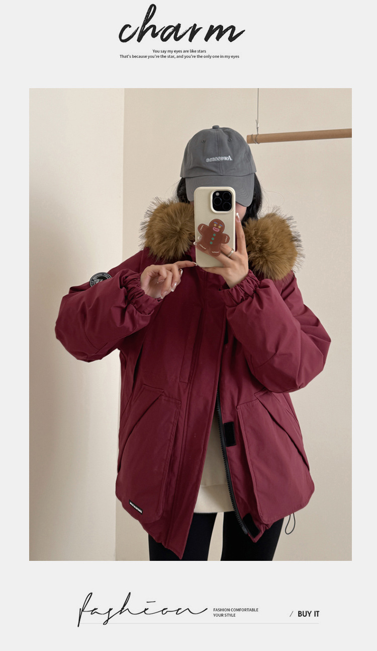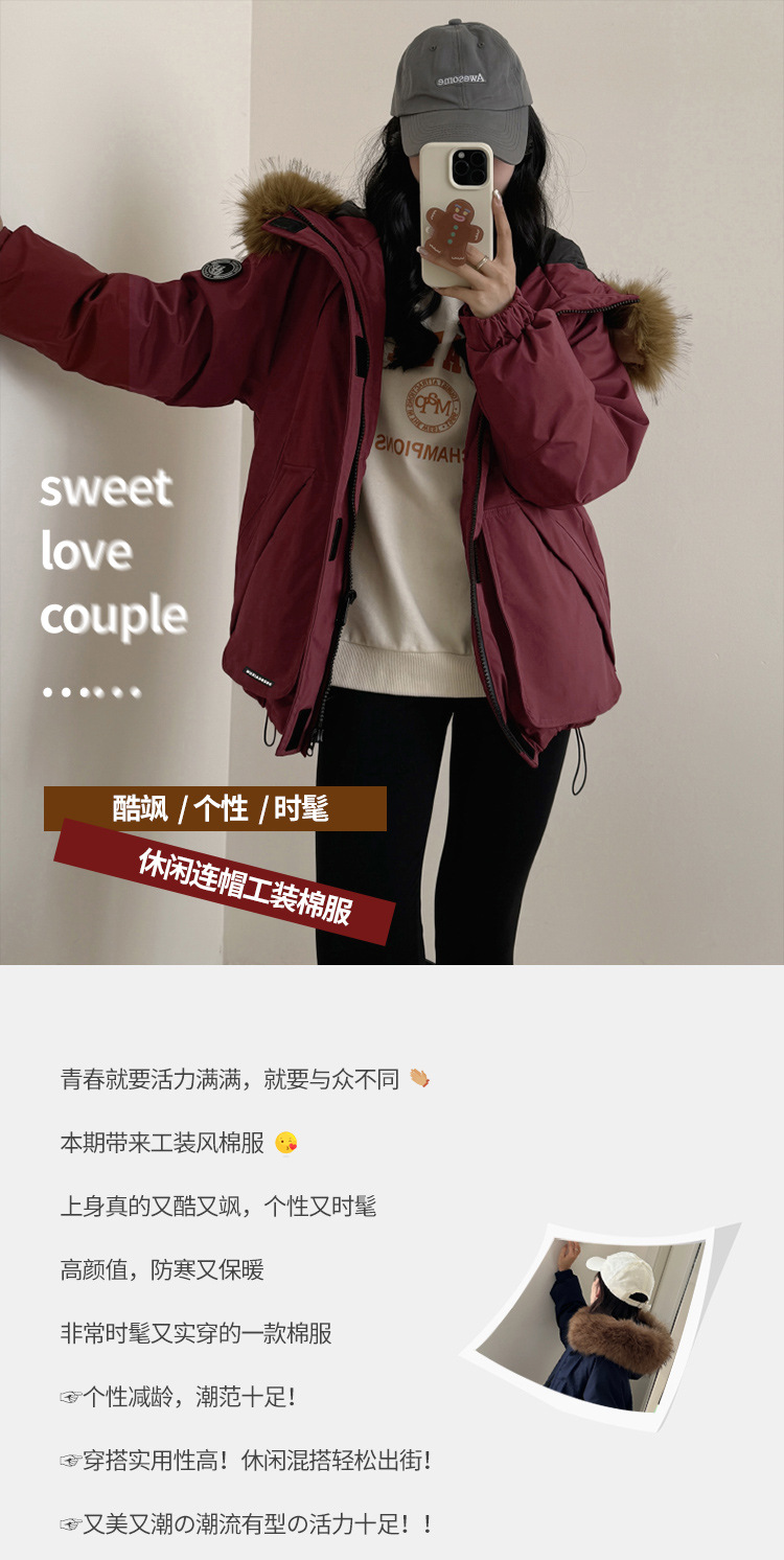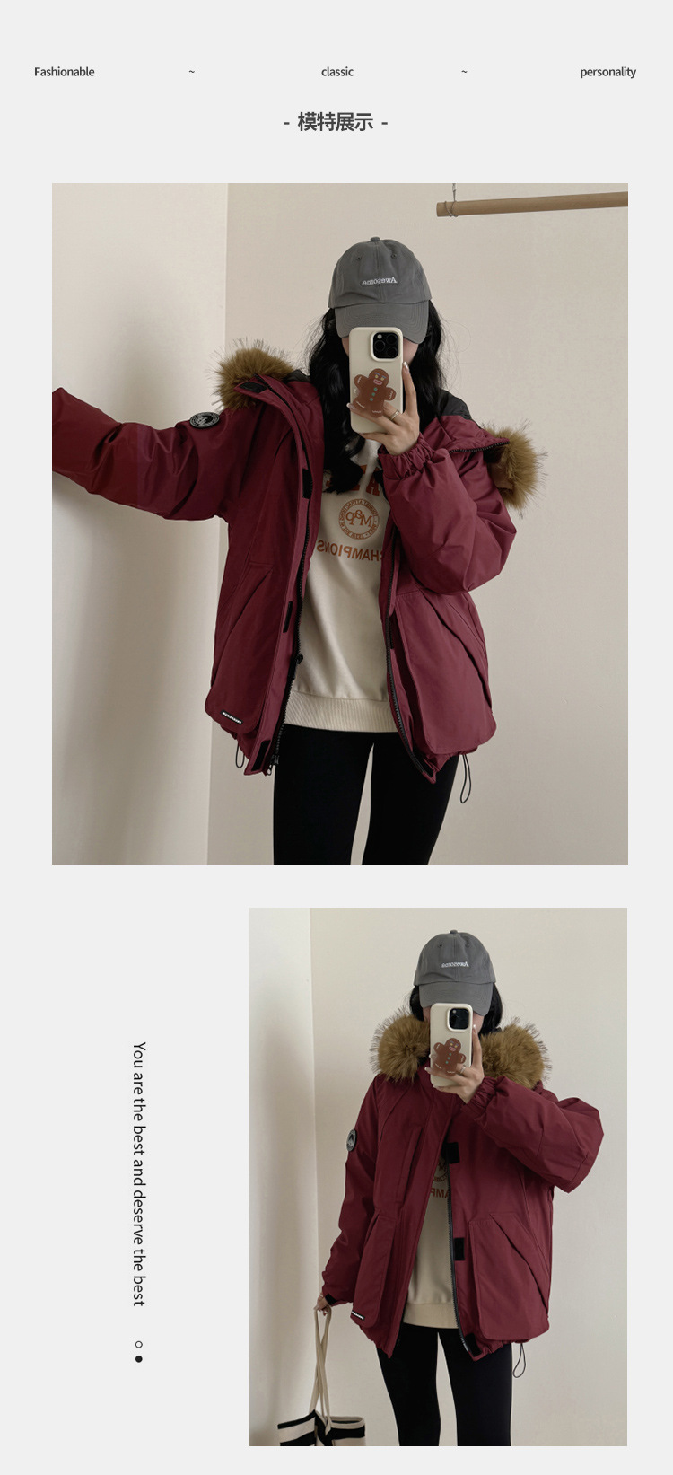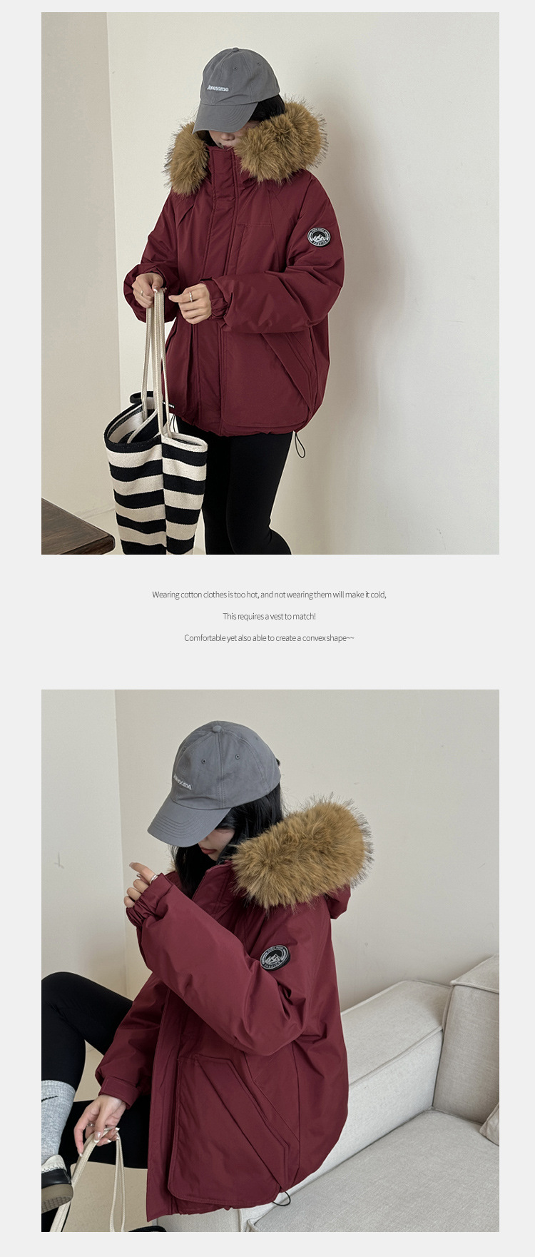 Европейская и американская внешняя торговля 2024 хлопчатобумажная одежда новая зимняя паука свободная маленькая хлопчатобумажная куртка с толстым шерстяным воротником