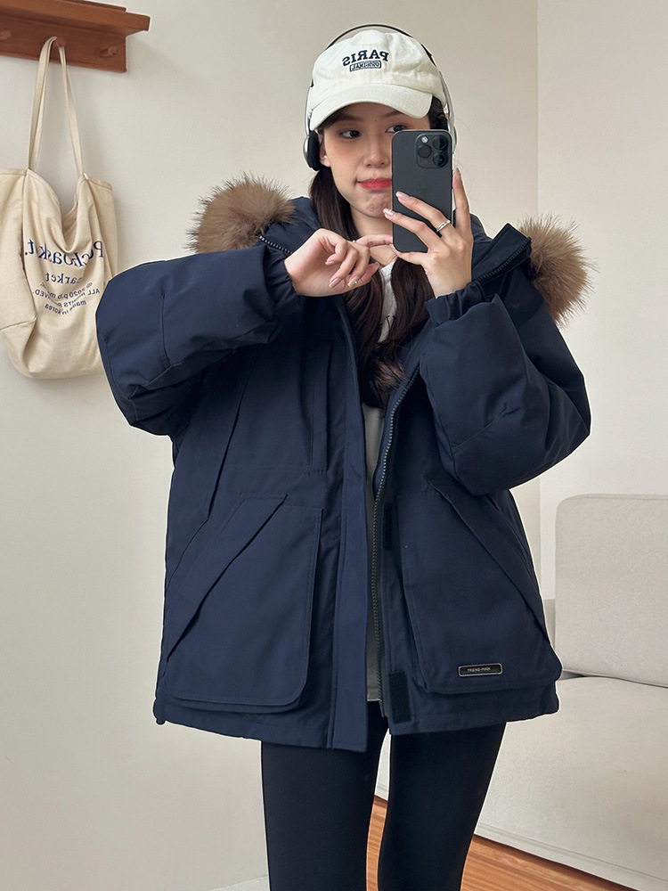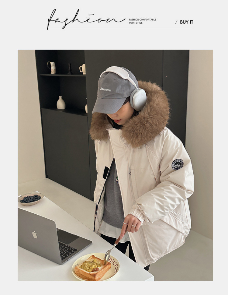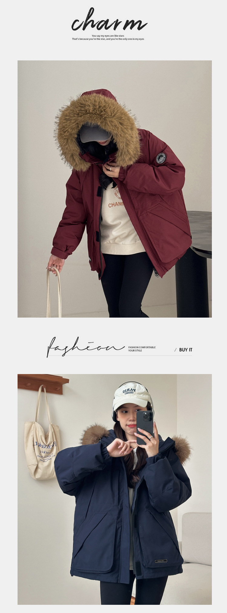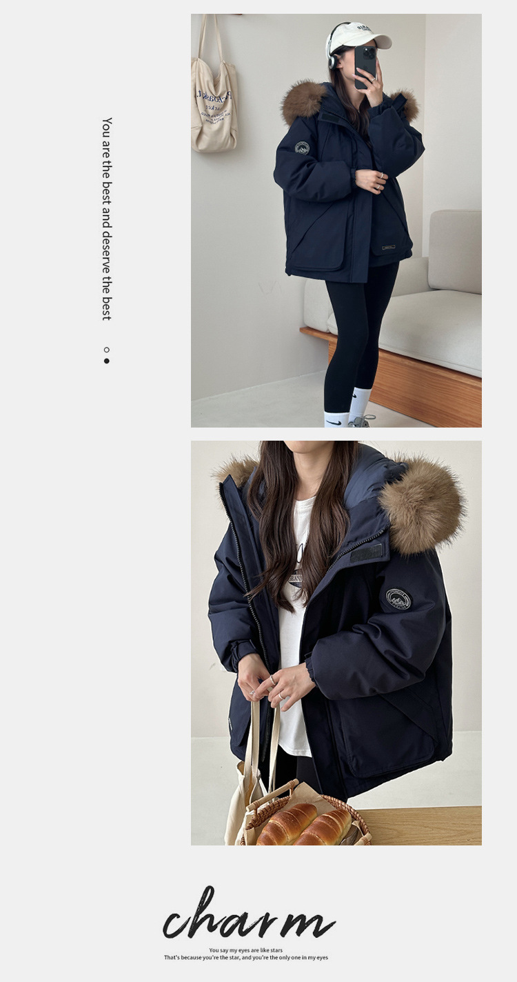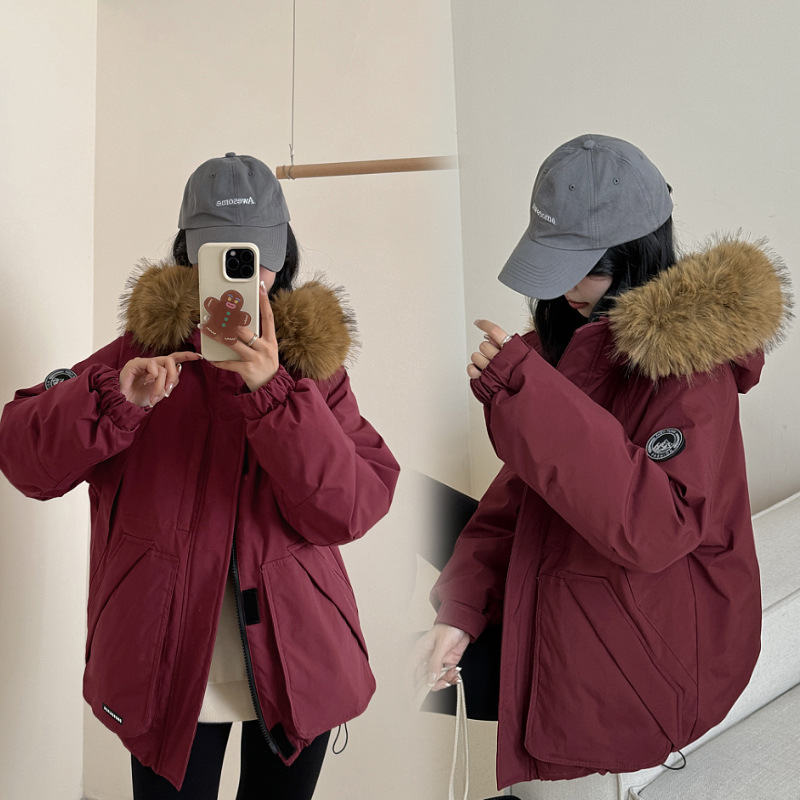 Европейская и американская внешняя торговля 2024 хлопчатобумажная одежда новая зимняя паука свободная маленькая хлопчатобумажная куртка с толстым шерстяным воротником