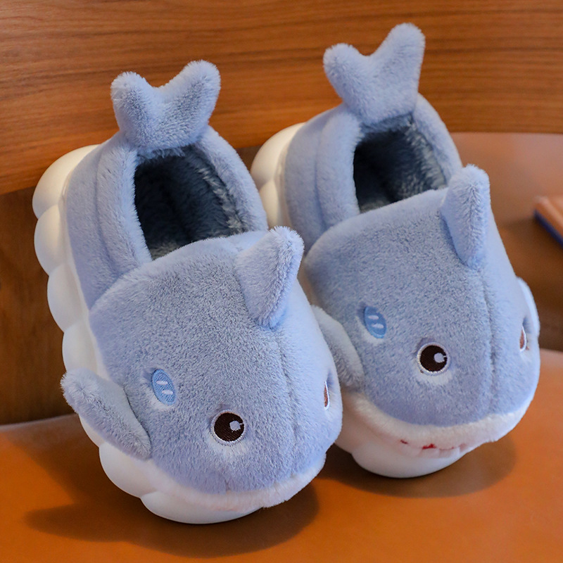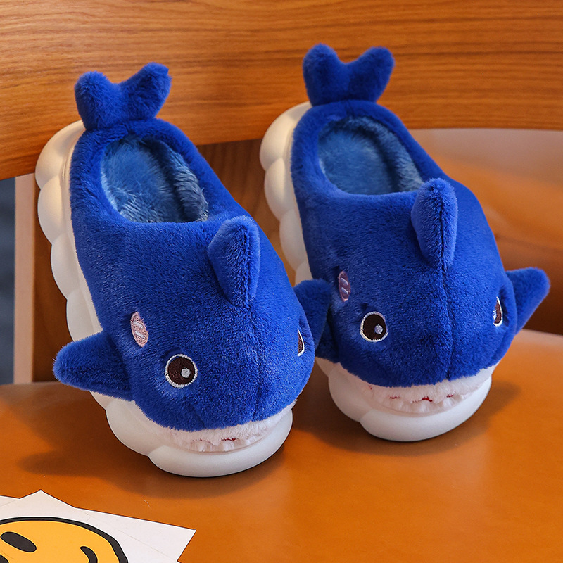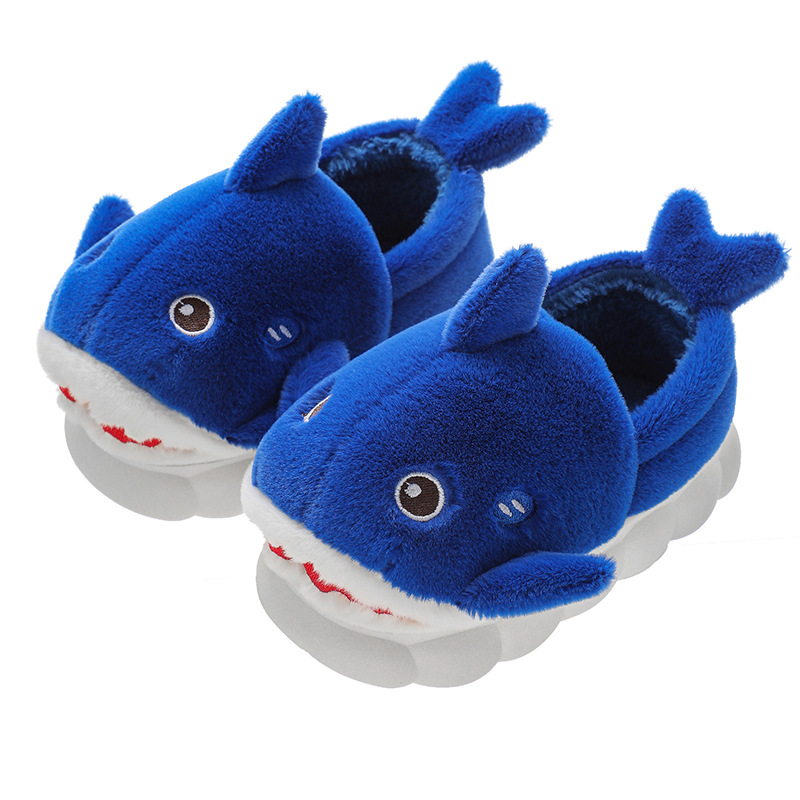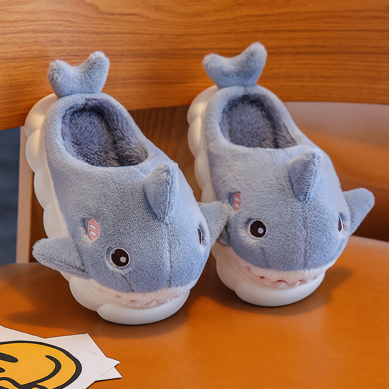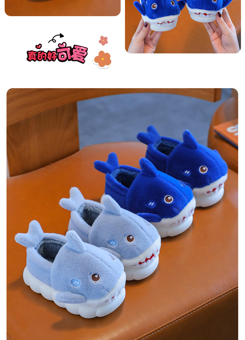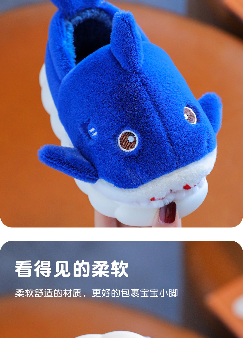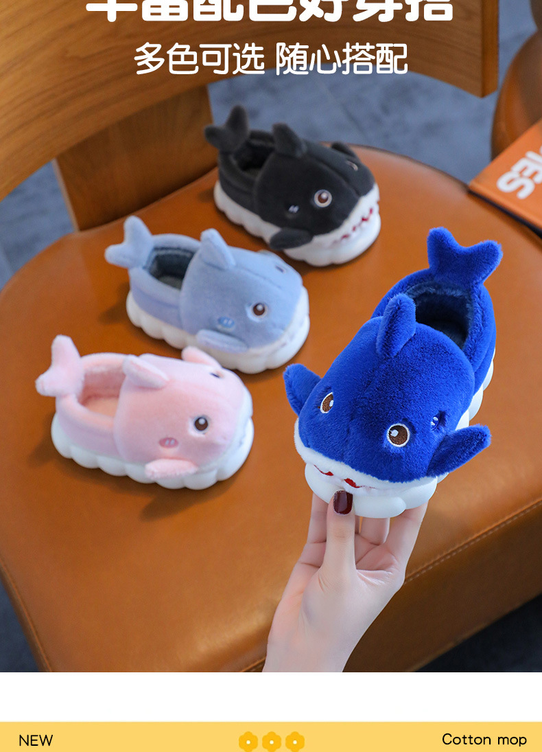 Новые осенние и зимние детские хлопчатобумажные тапочки для мальчиков и девочек в помещении мультяшные акулы для девочек тапочки для девочек