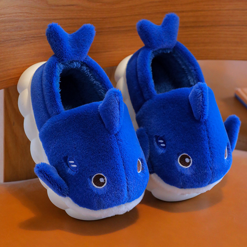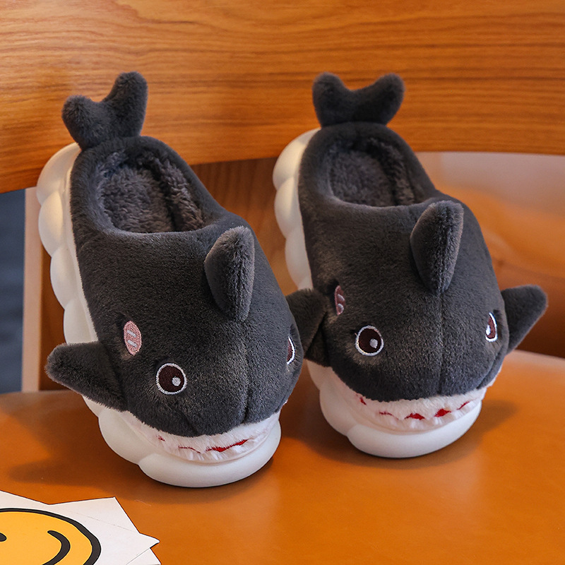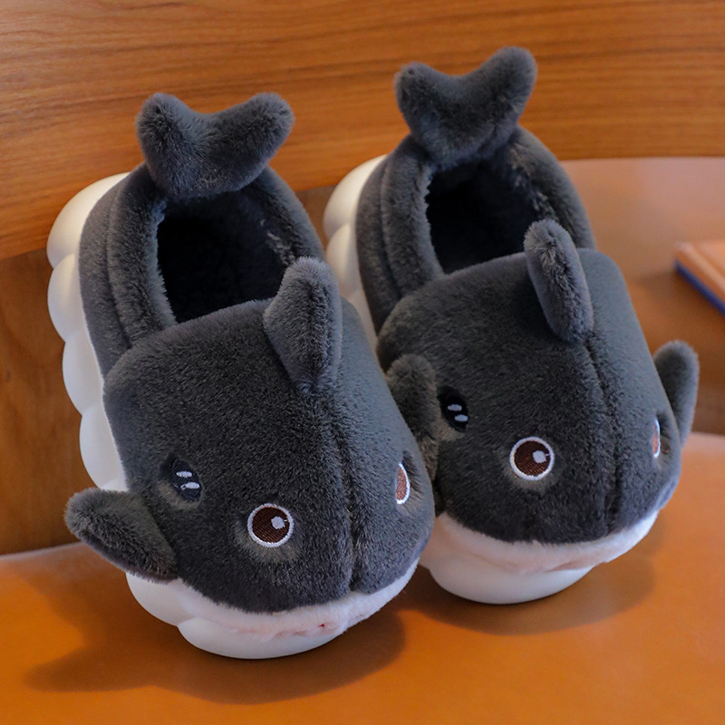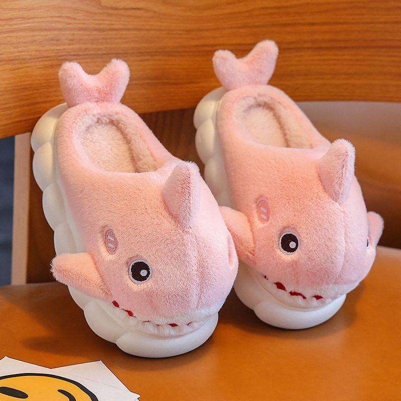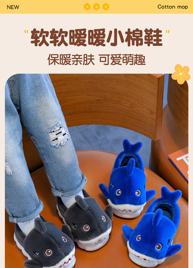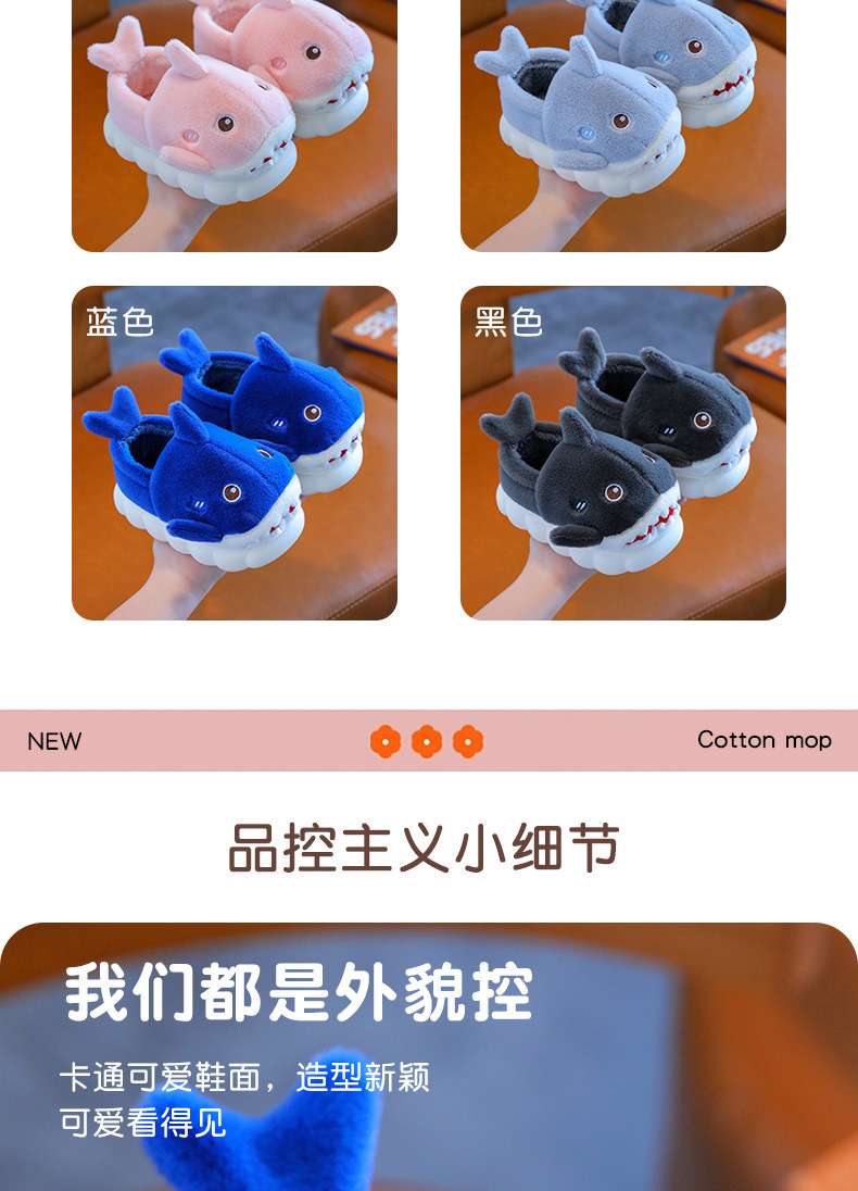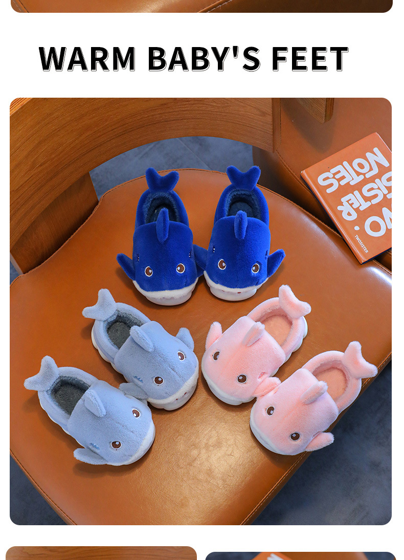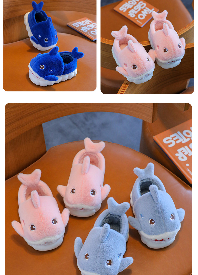 Новые осенние и зимние детские хлопчатобумажные тапочки для мальчиков и девочек в помещении мультяшные акулы для девочек тапочки для девочек