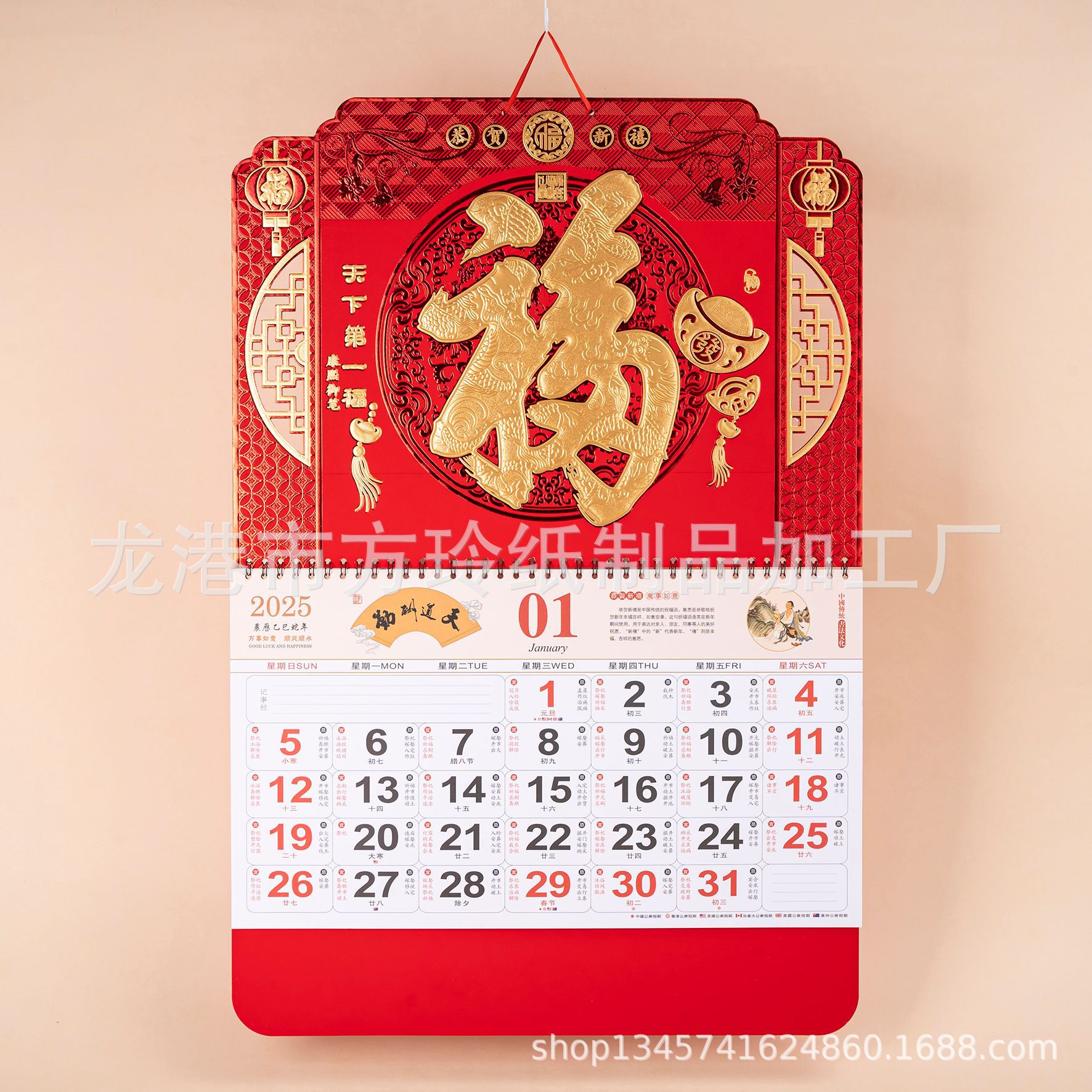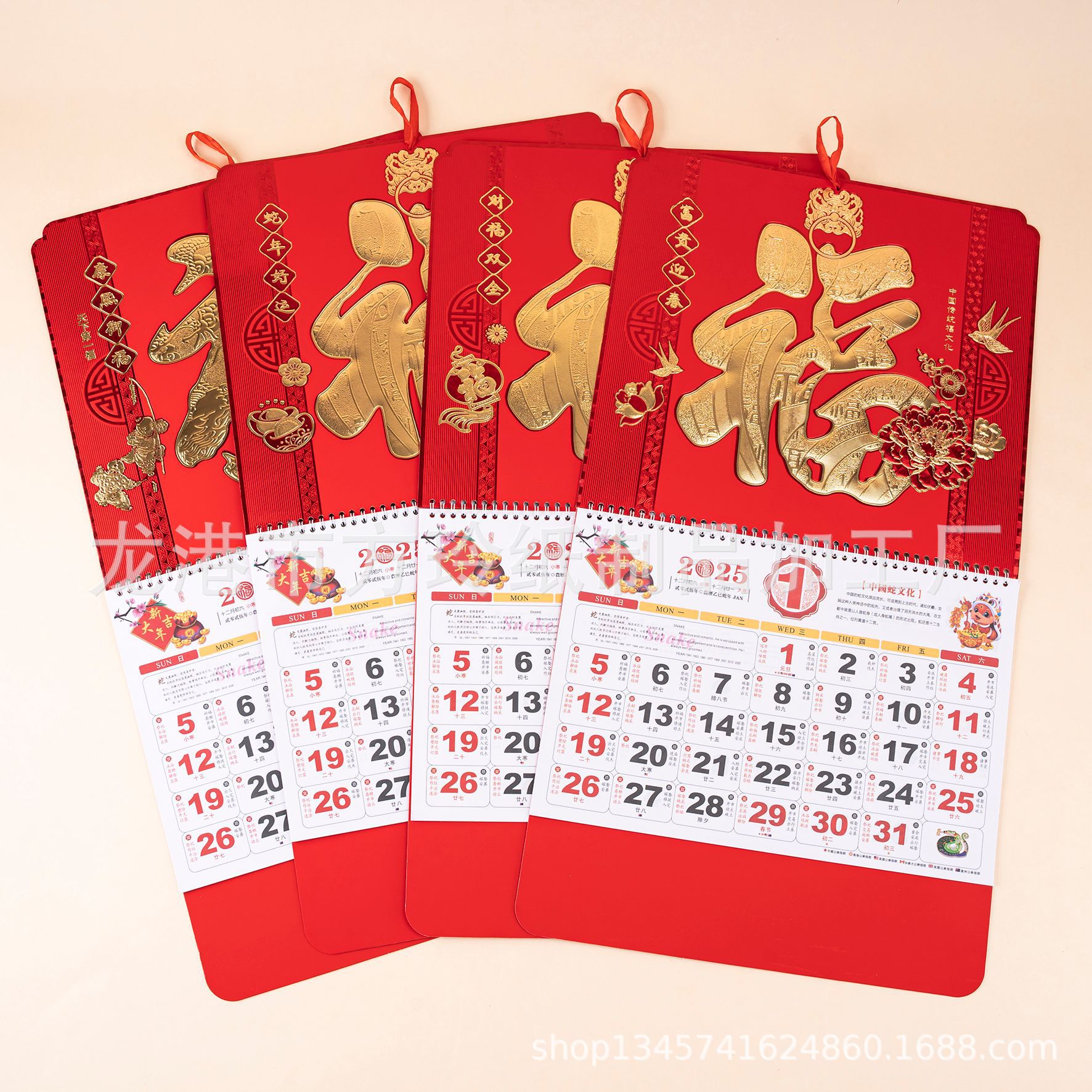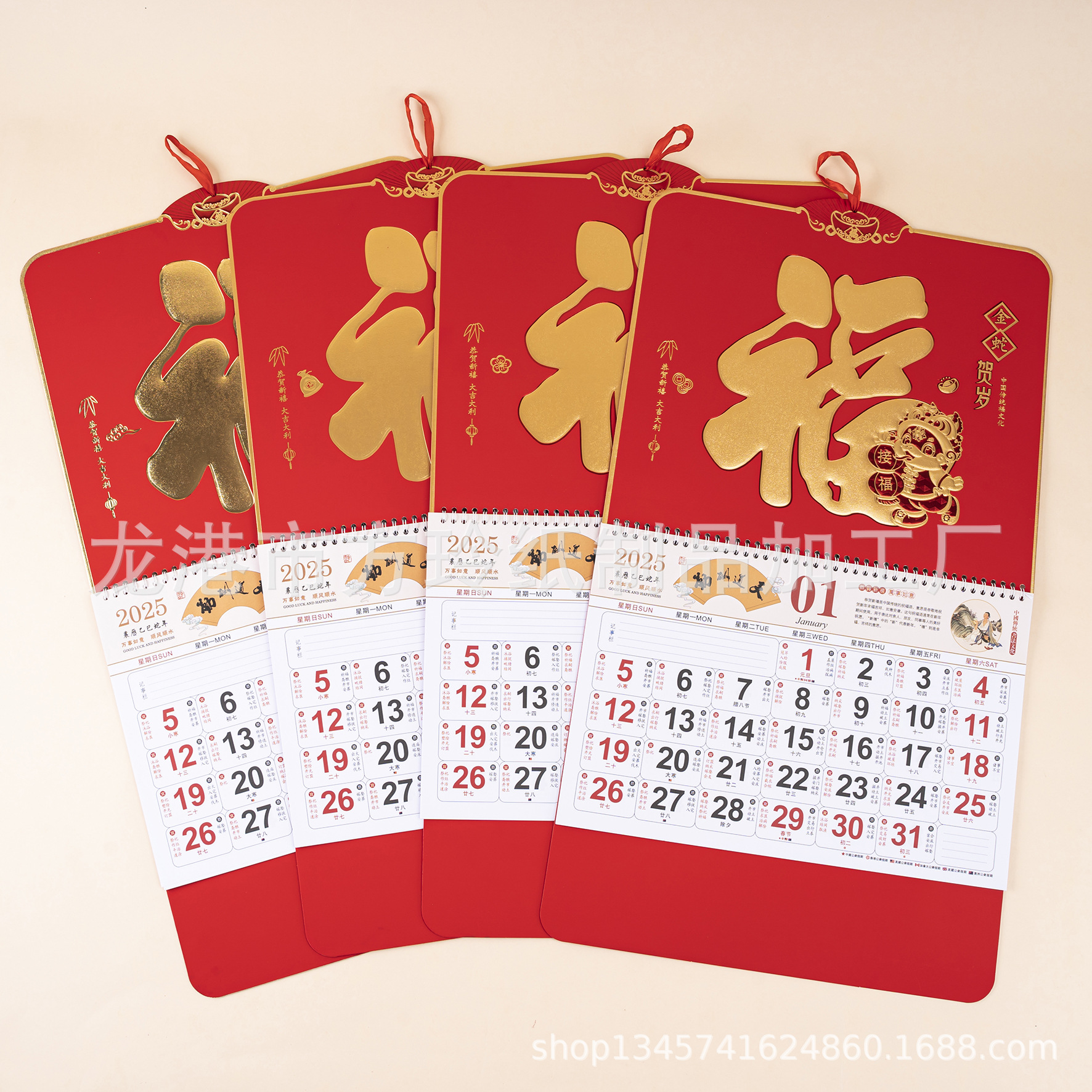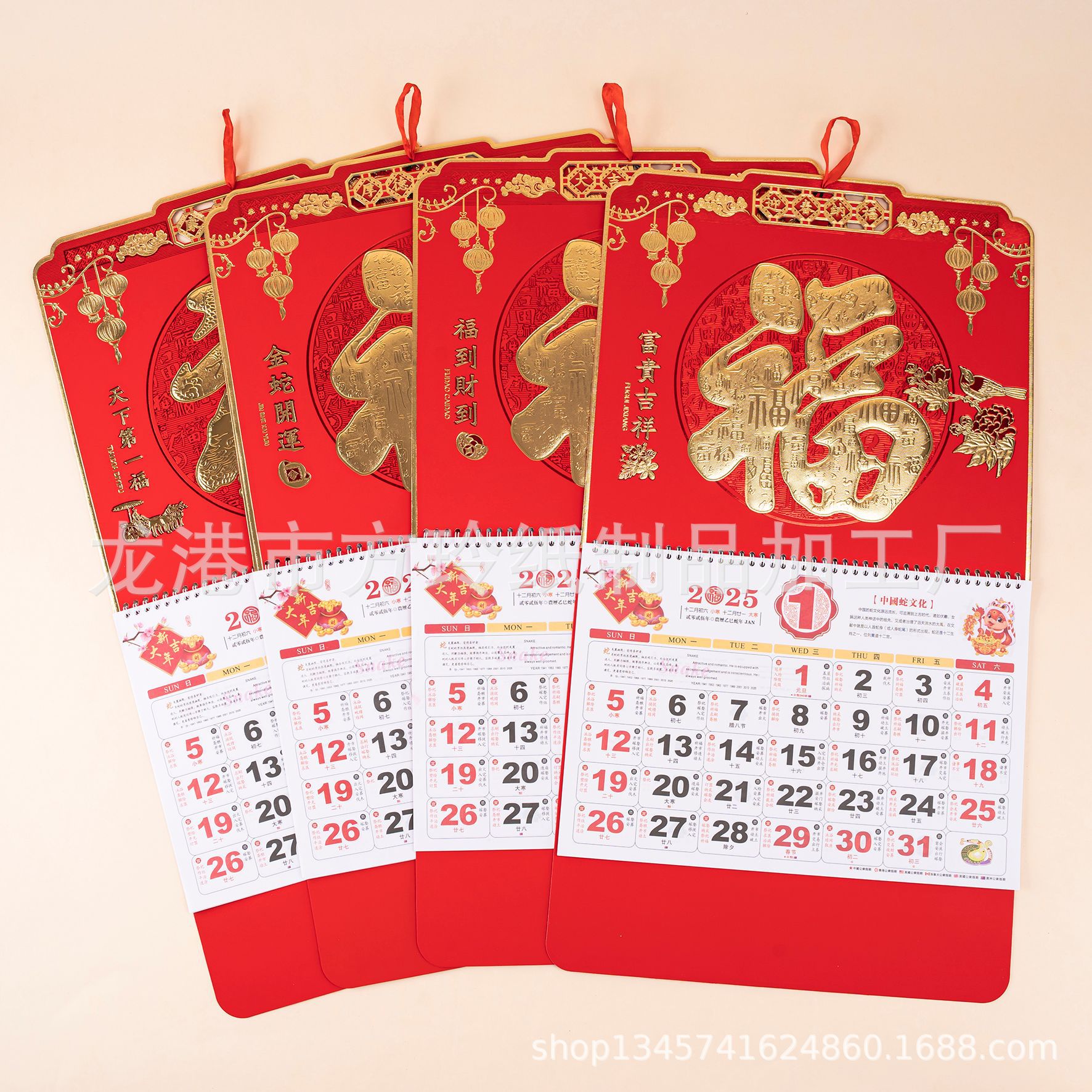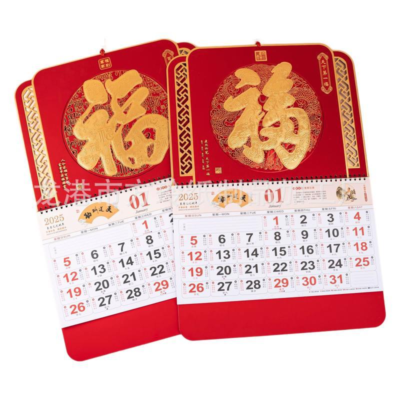 2023 Китайский красный подвесной календарь Fortune Brand Настенный календарь 3D подвесной календарь с персонажем Fortune Большой четырехстраничный утренний календарь с золотым тиснением