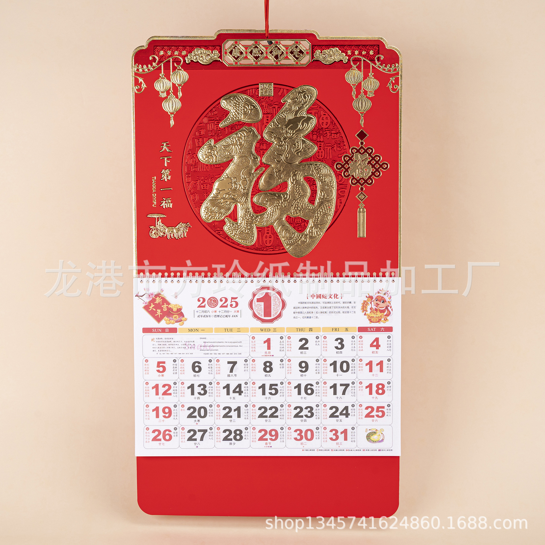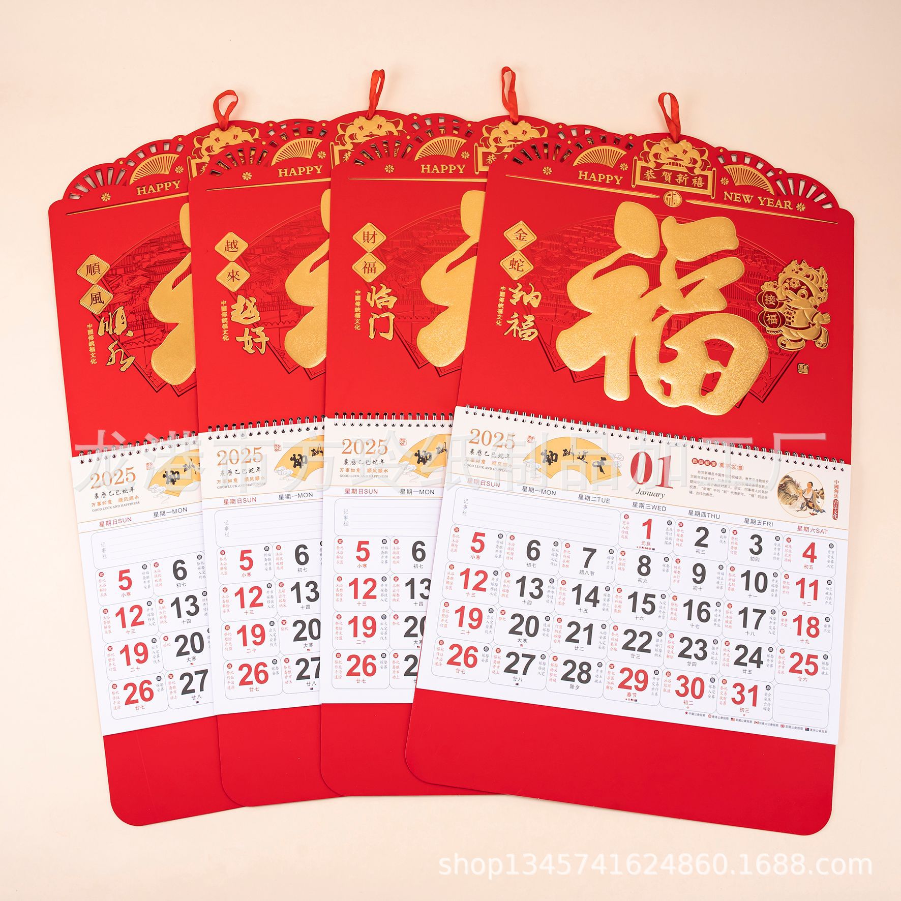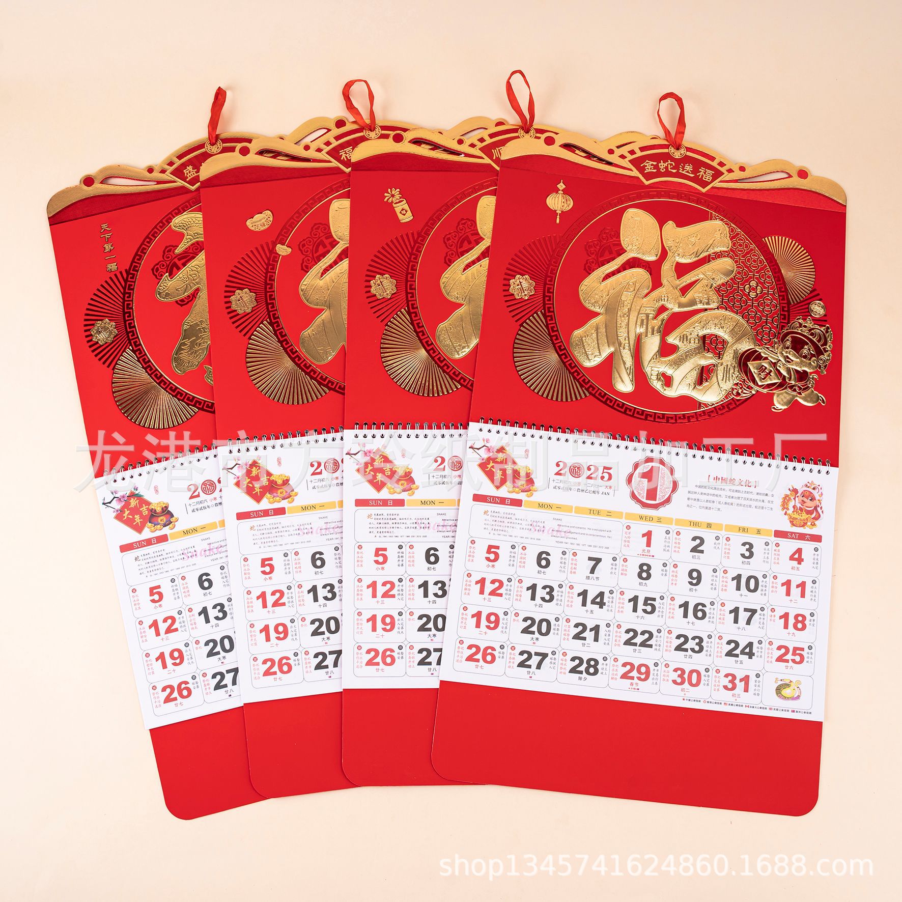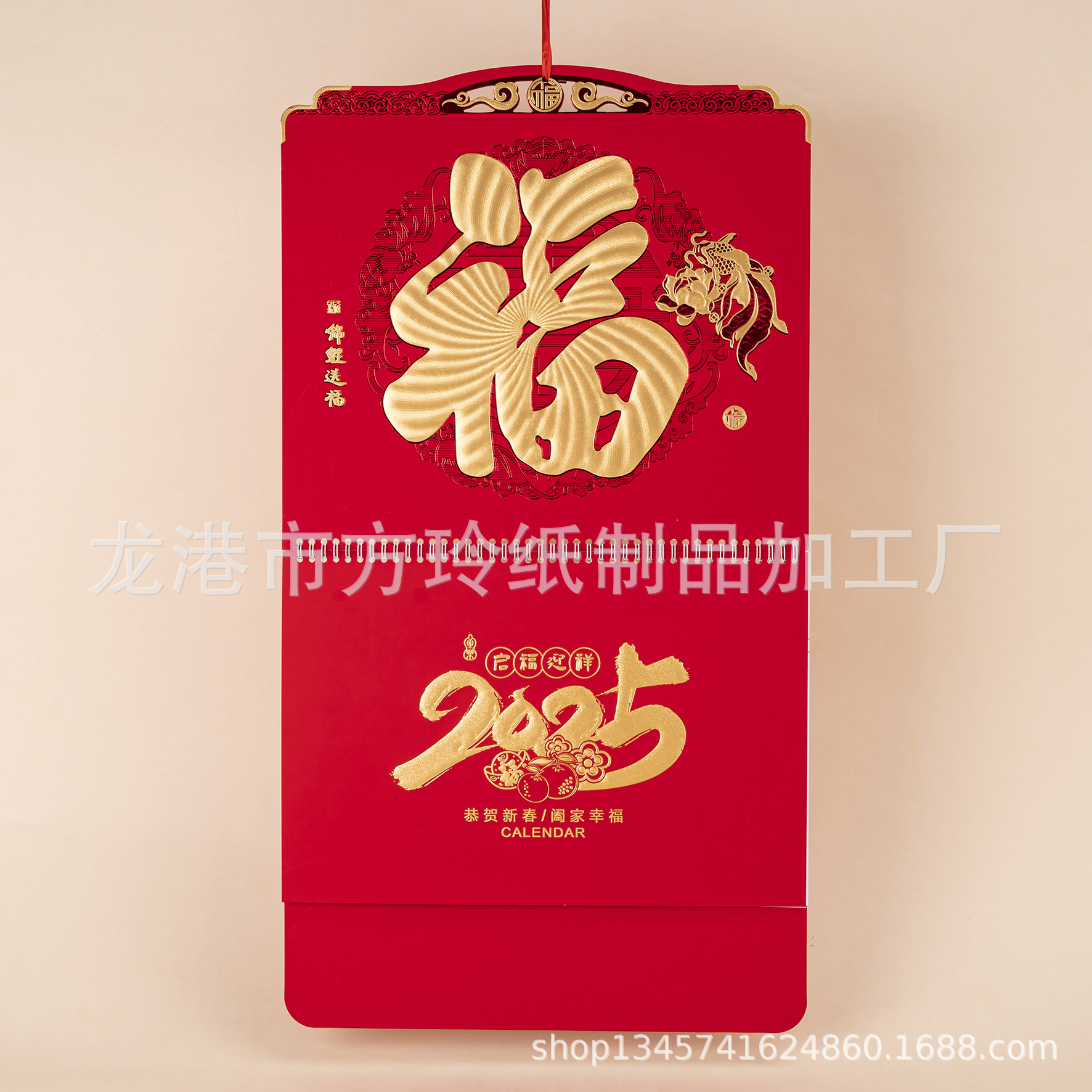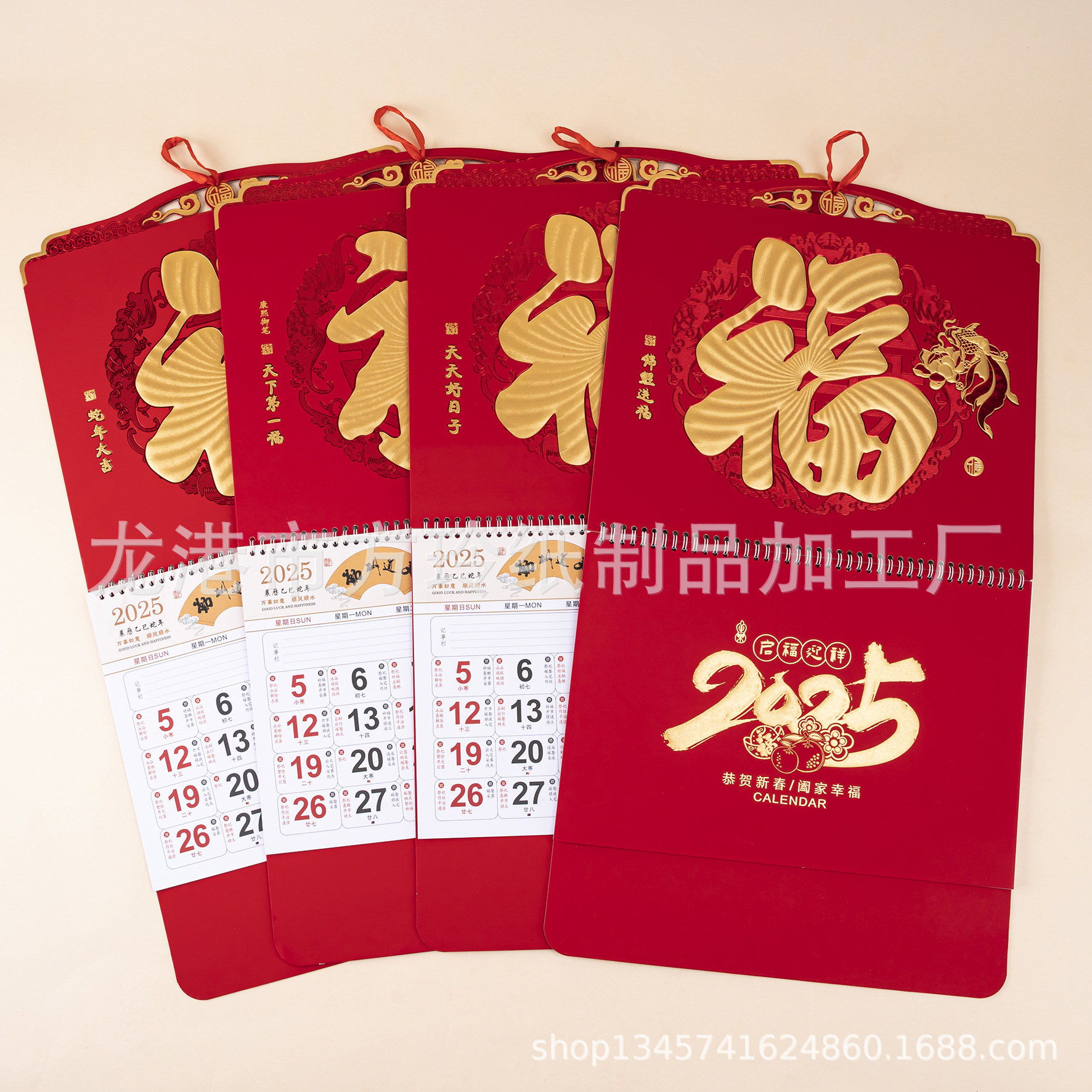 2023 Китайский красный подвесной календарь Fortune Brand Настенный календарь 3D подвесной календарь с персонажем Fortune Большой четырехстраничный утренний календарь с золотым тиснением