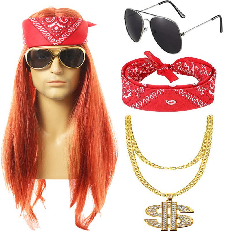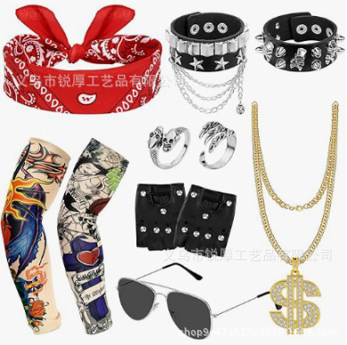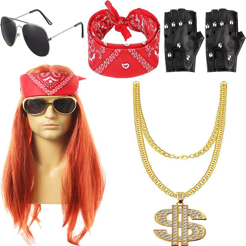 Хэллоуин диско хип-хоп 80-х ретро cos парик золотой цепи борода панк браслет