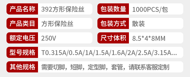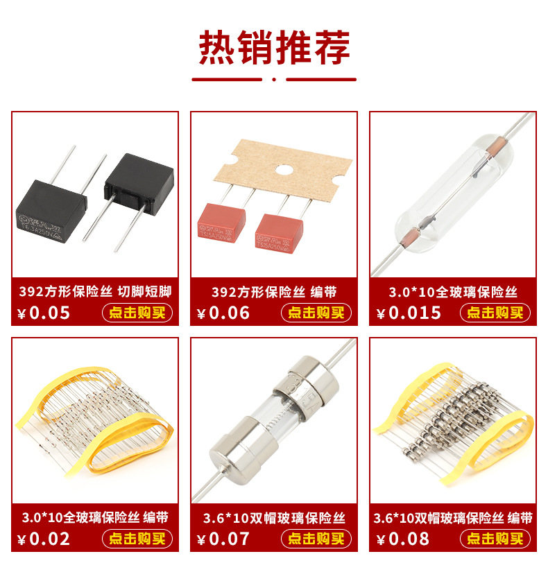 Производитель прямой поставки 392 Квадратный предохранитель 250V T0.5A/1A/2A/3.15/4A-20A Черная короткая нога