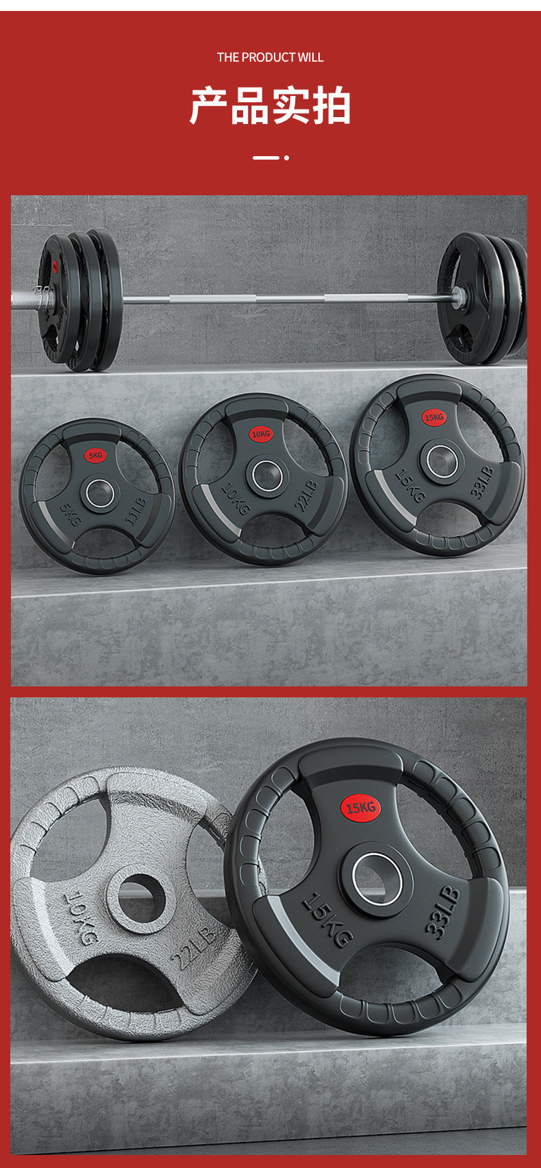 Трехлунный резиновый штанга, тренажерный зал, тяжелая атлетика