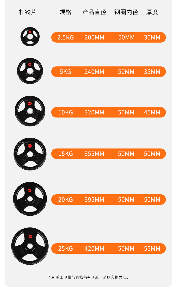 2.5kg; 5kg; 10kg; 15kg; 20kg; 25kg