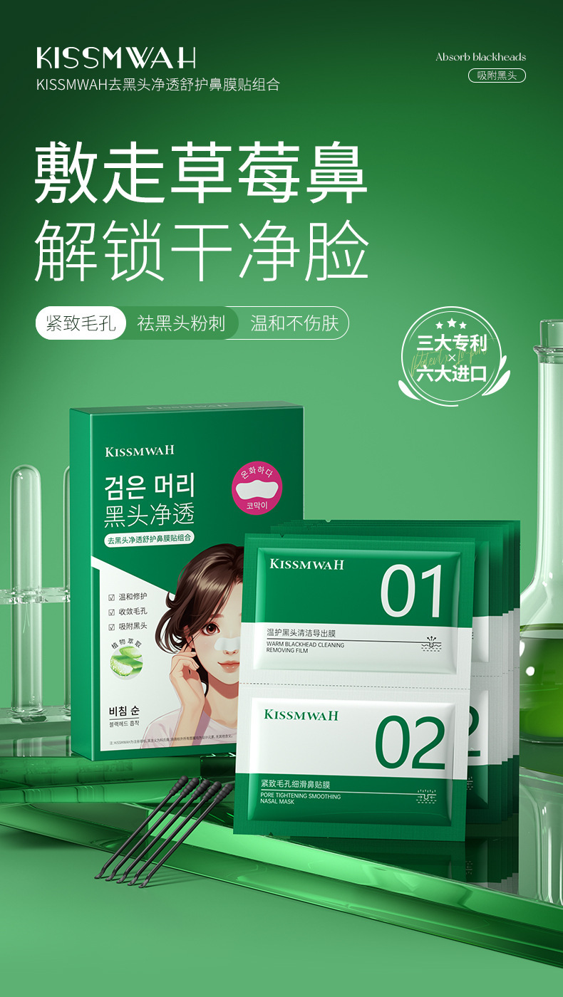 Комбинация полупрозрачной и успокаивающей маски для носа KISSMWAH 4г×5шт+4г×5шт.