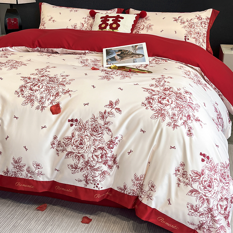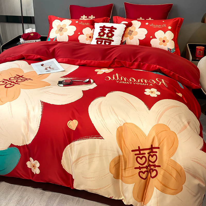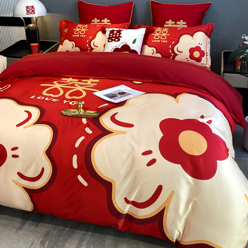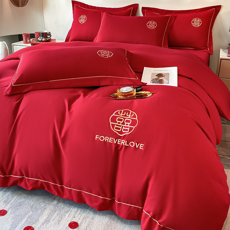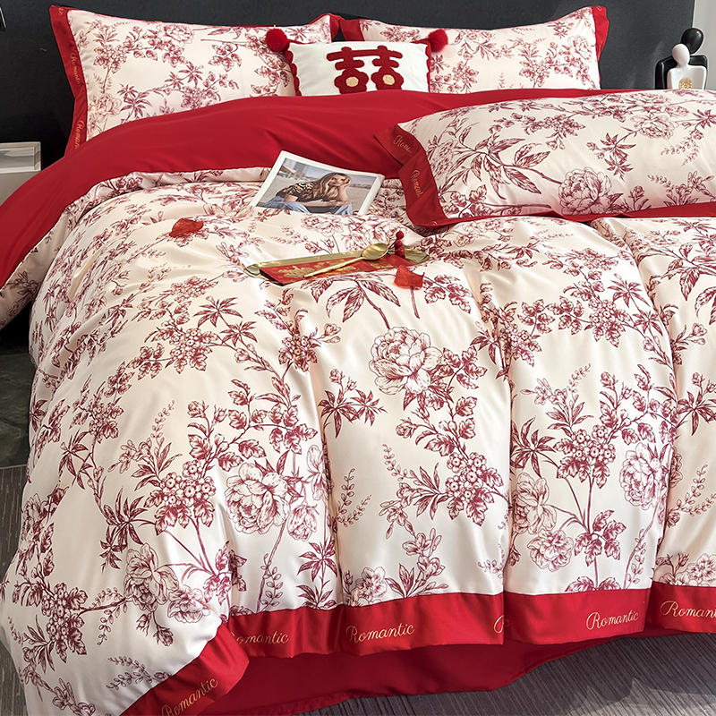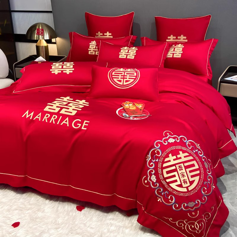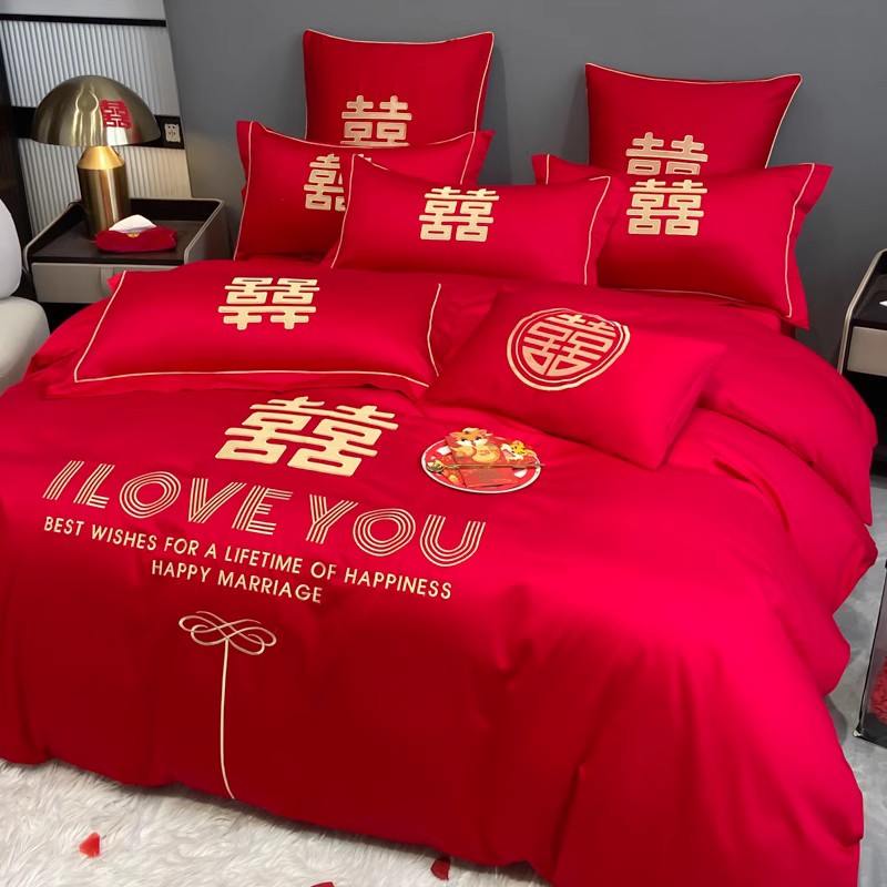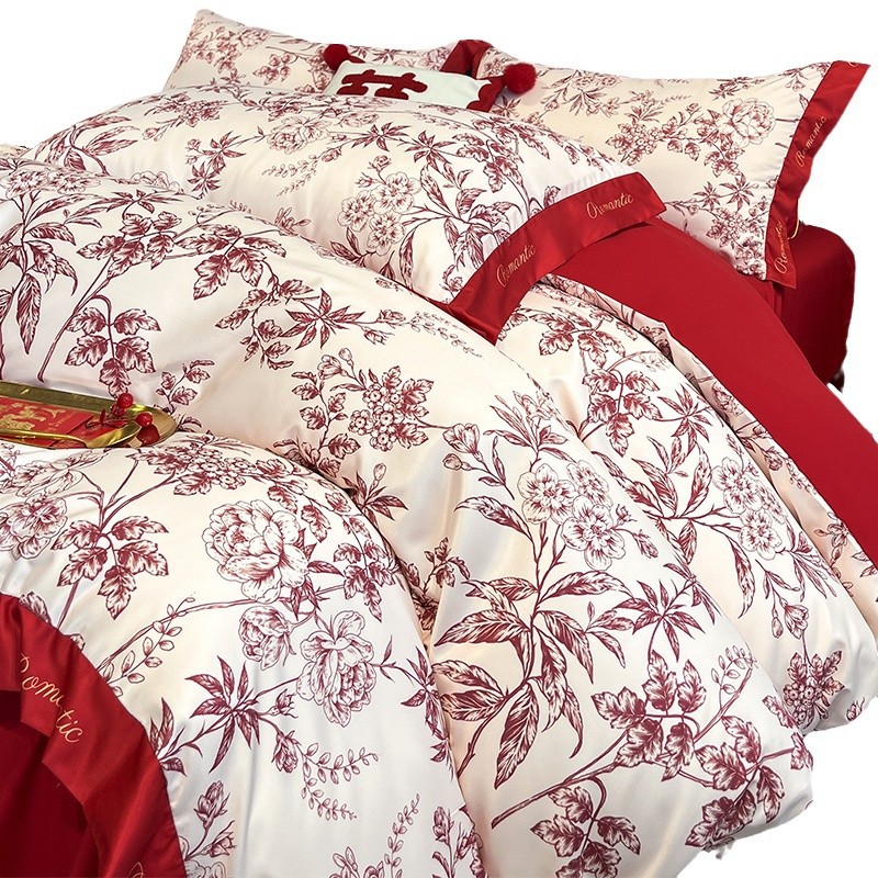 Красные свадебные кровати набор из четырех частей Праздничные свадебные стеганые одеяла новые свадебные простыни