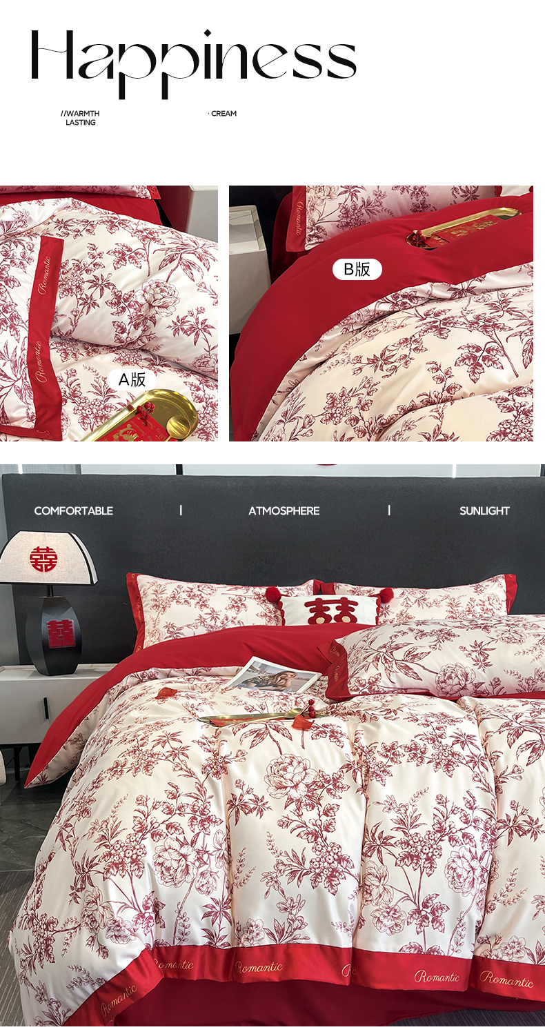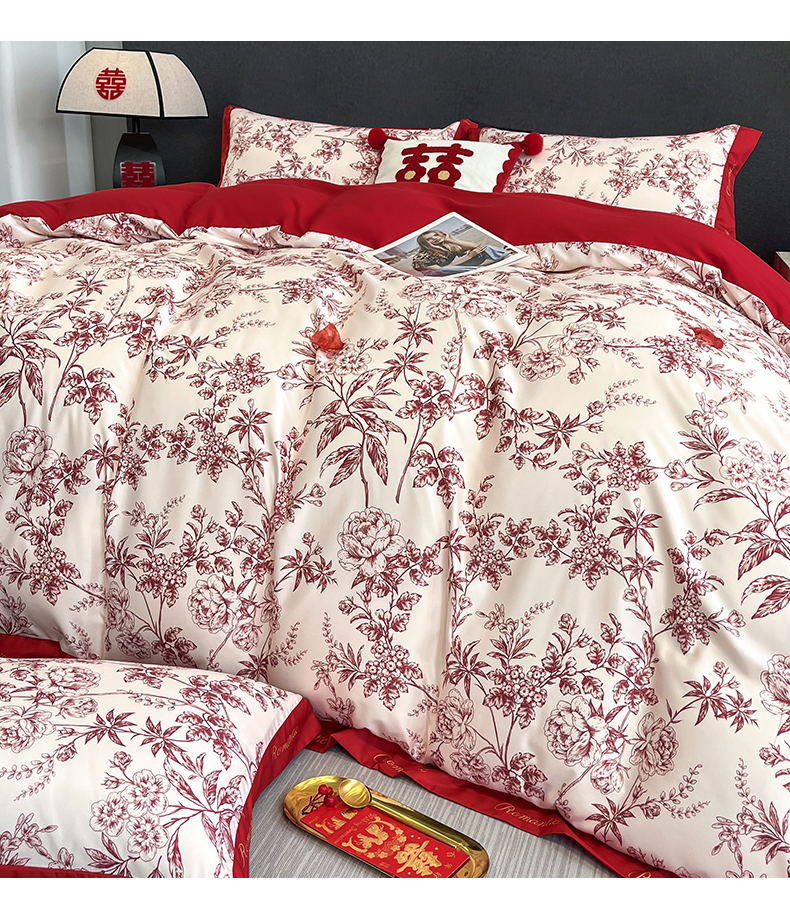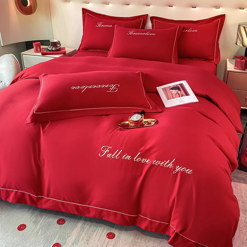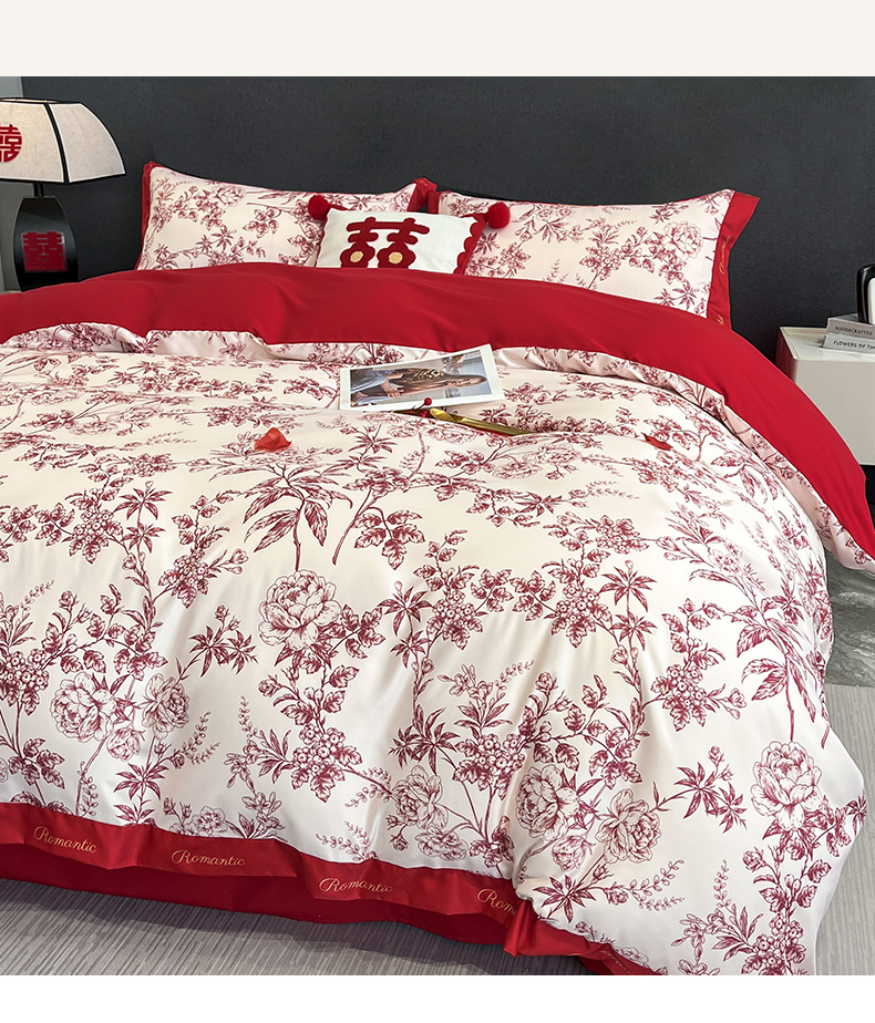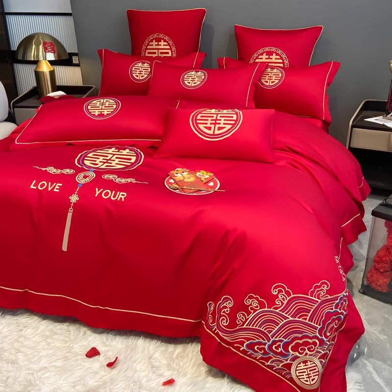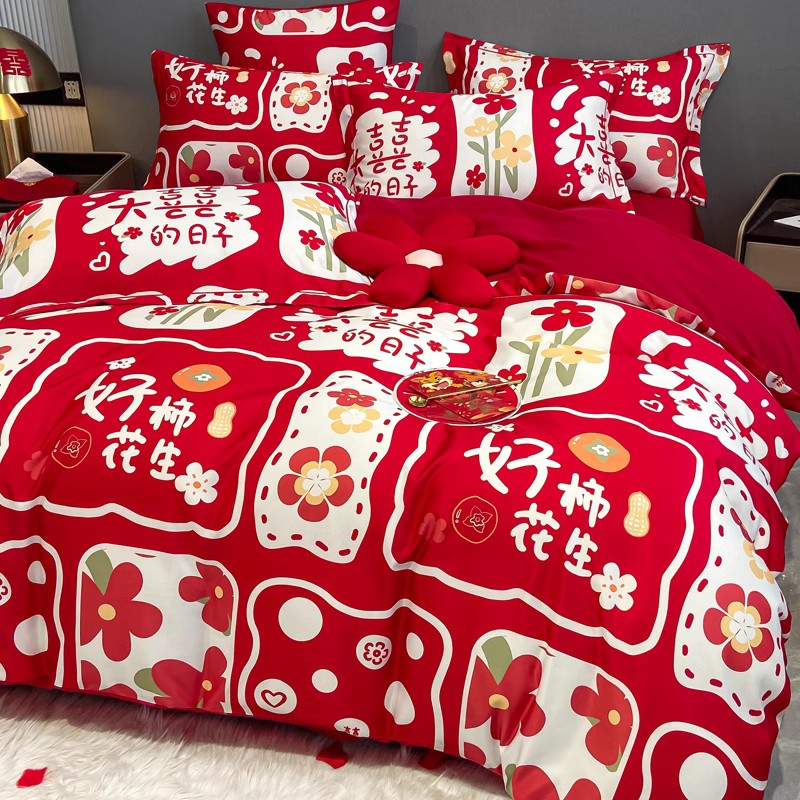 Красные свадебные кровати набор из четырех частей Праздничные свадебные стеганые одеяла новые свадебные простыни
