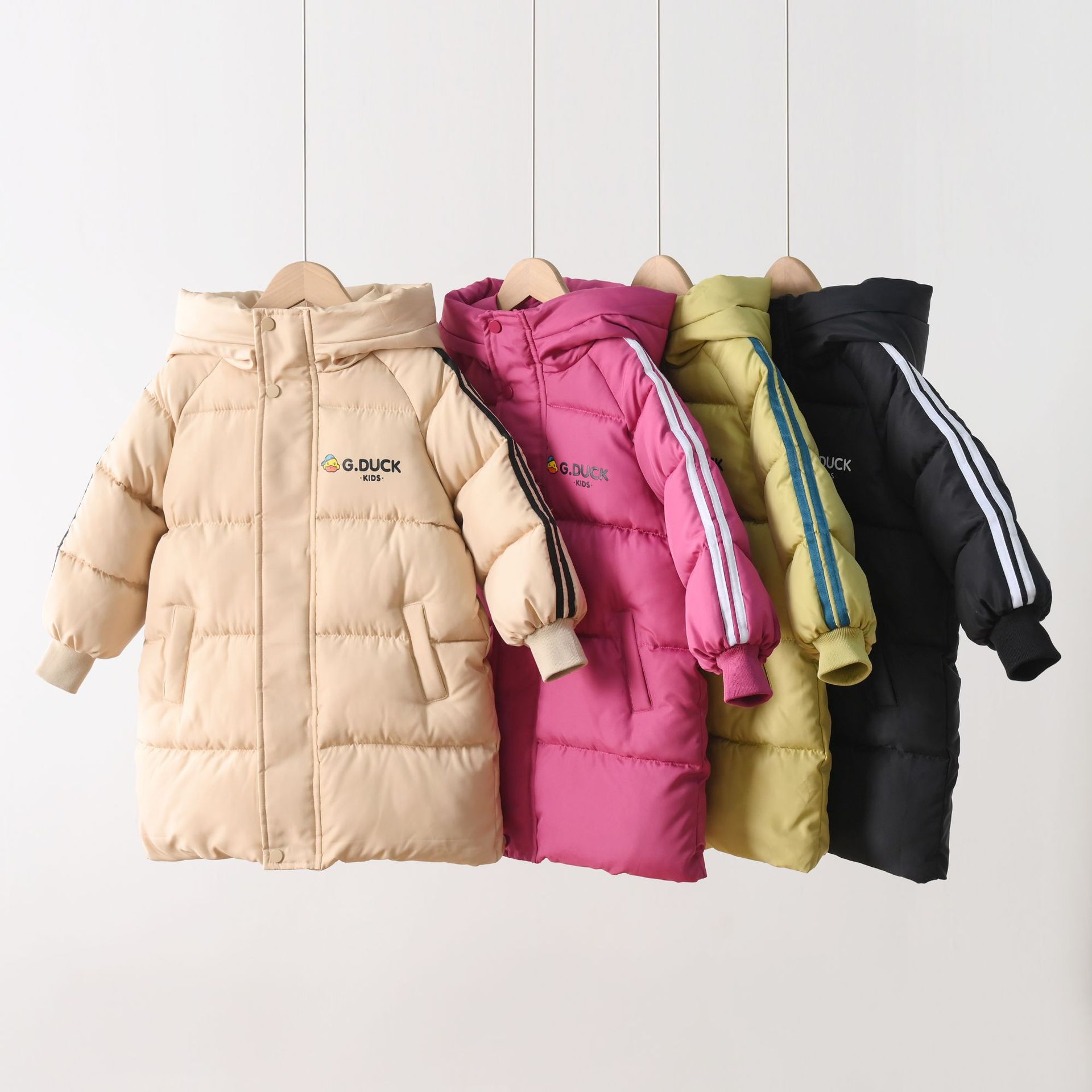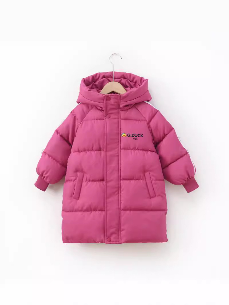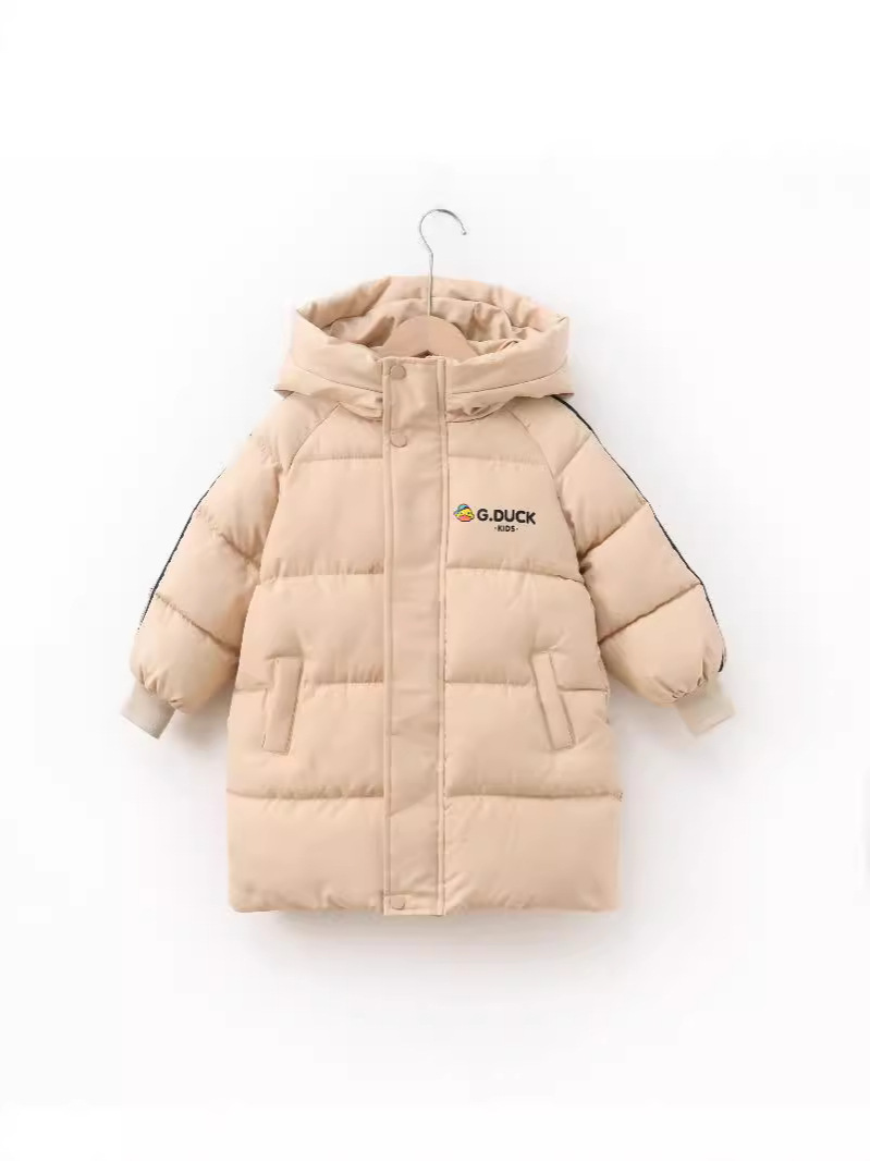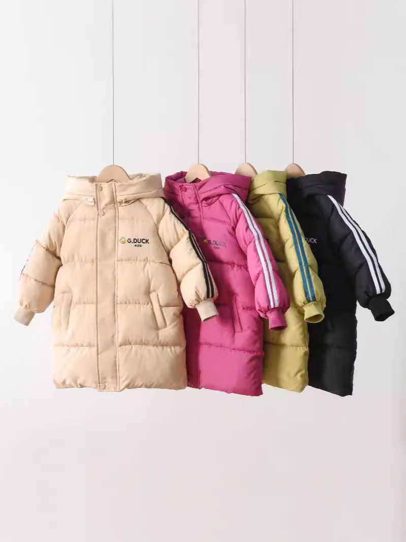 Новая модель 2025 года: детское хлопковое пальто с рисунком желтого утенка, средней длины, для мальчиков и девочек, малышей и детей постарше, утепленная зимняя детская одежда.