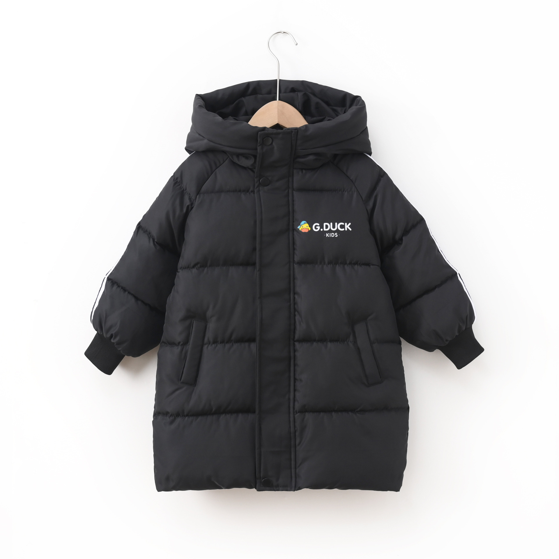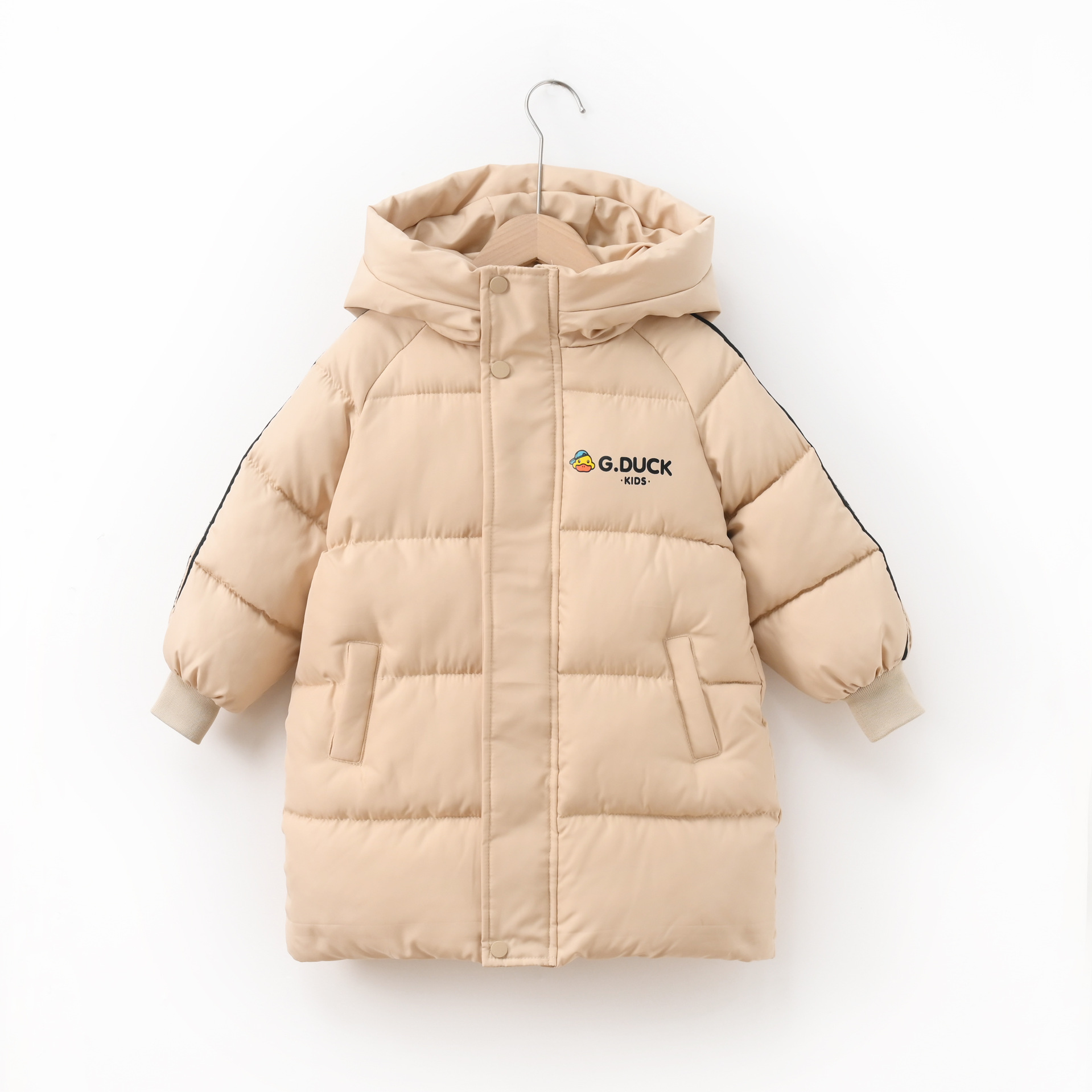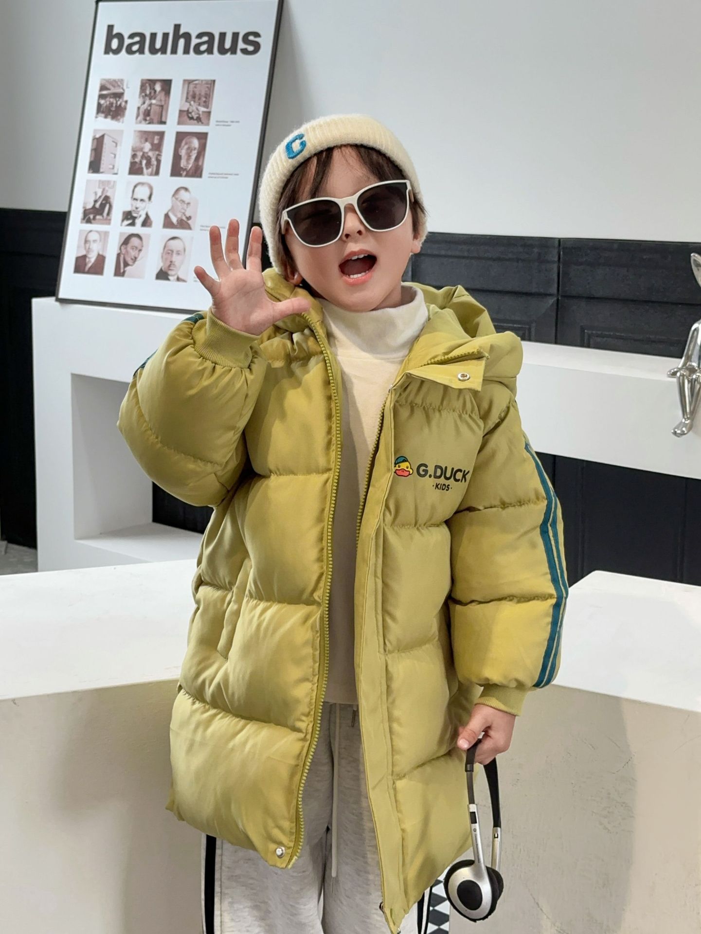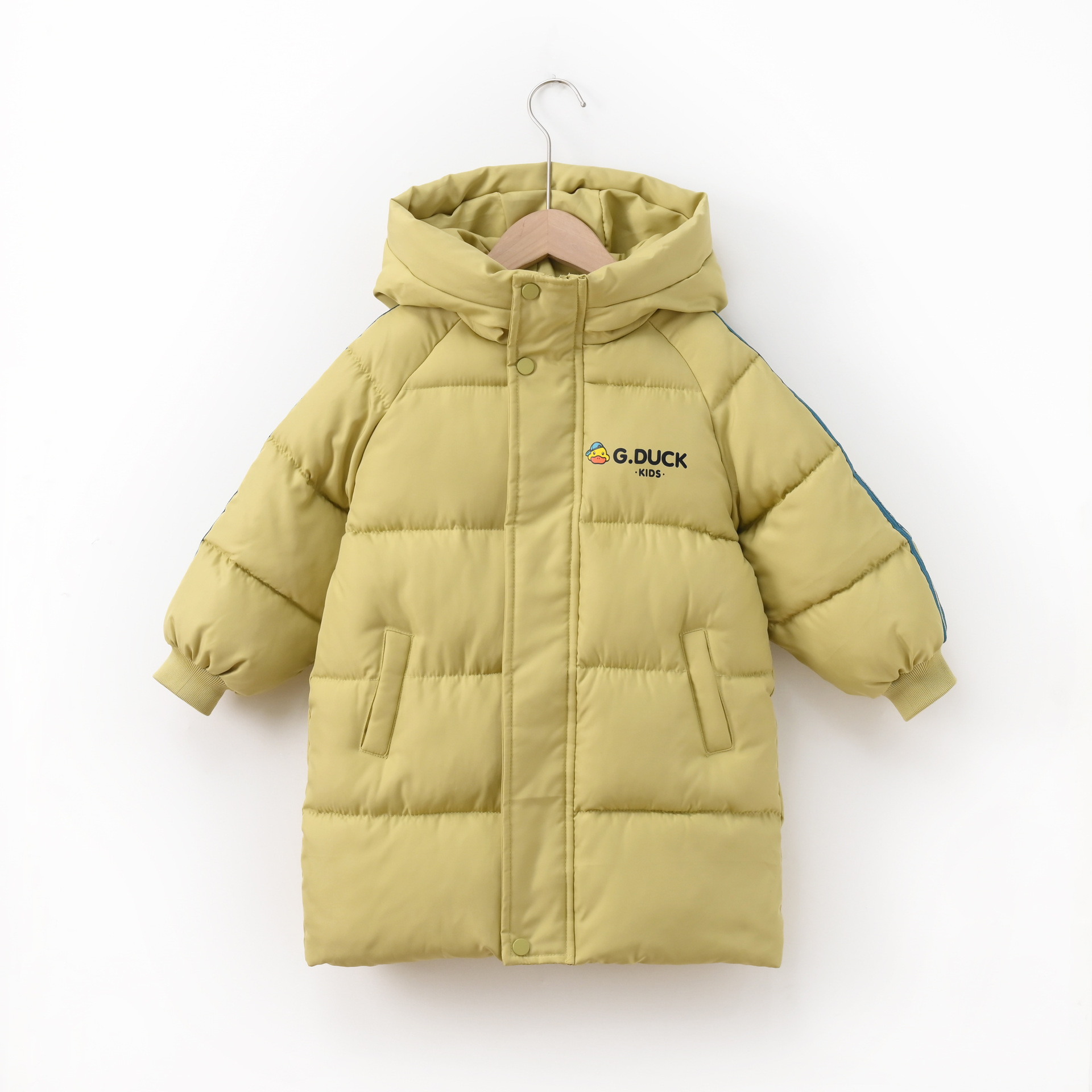 Новая модель 2025 года: детское хлопковое пальто с рисунком желтого утенка, средней длины, для мальчиков и девочек, малышей и детей постарше, утепленная зимняя детская одежда.