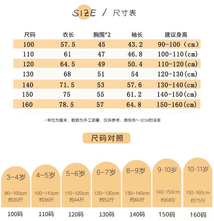 100cm; 110cm; 120cm; 130cm; 140cm; 150cm; 160cm
