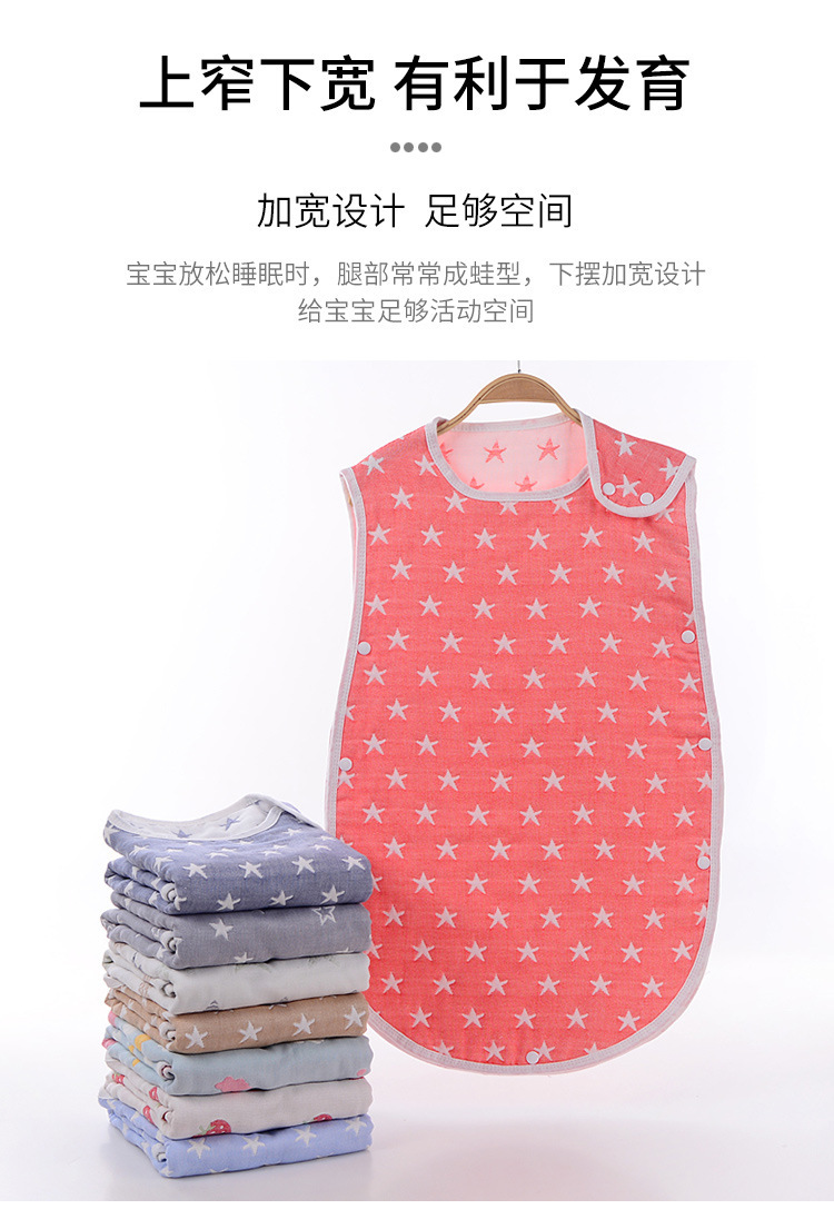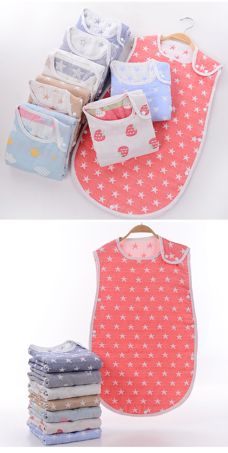Детский спальный мешок без рукавов для новорожденных, весенне-осенний стиль, пижама-жилетка, шестислойный дышащий, влагопоглощающий, защита от раздражения, оптом