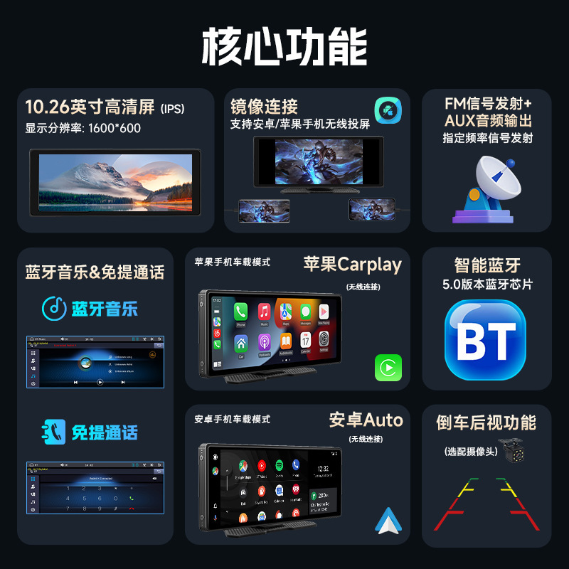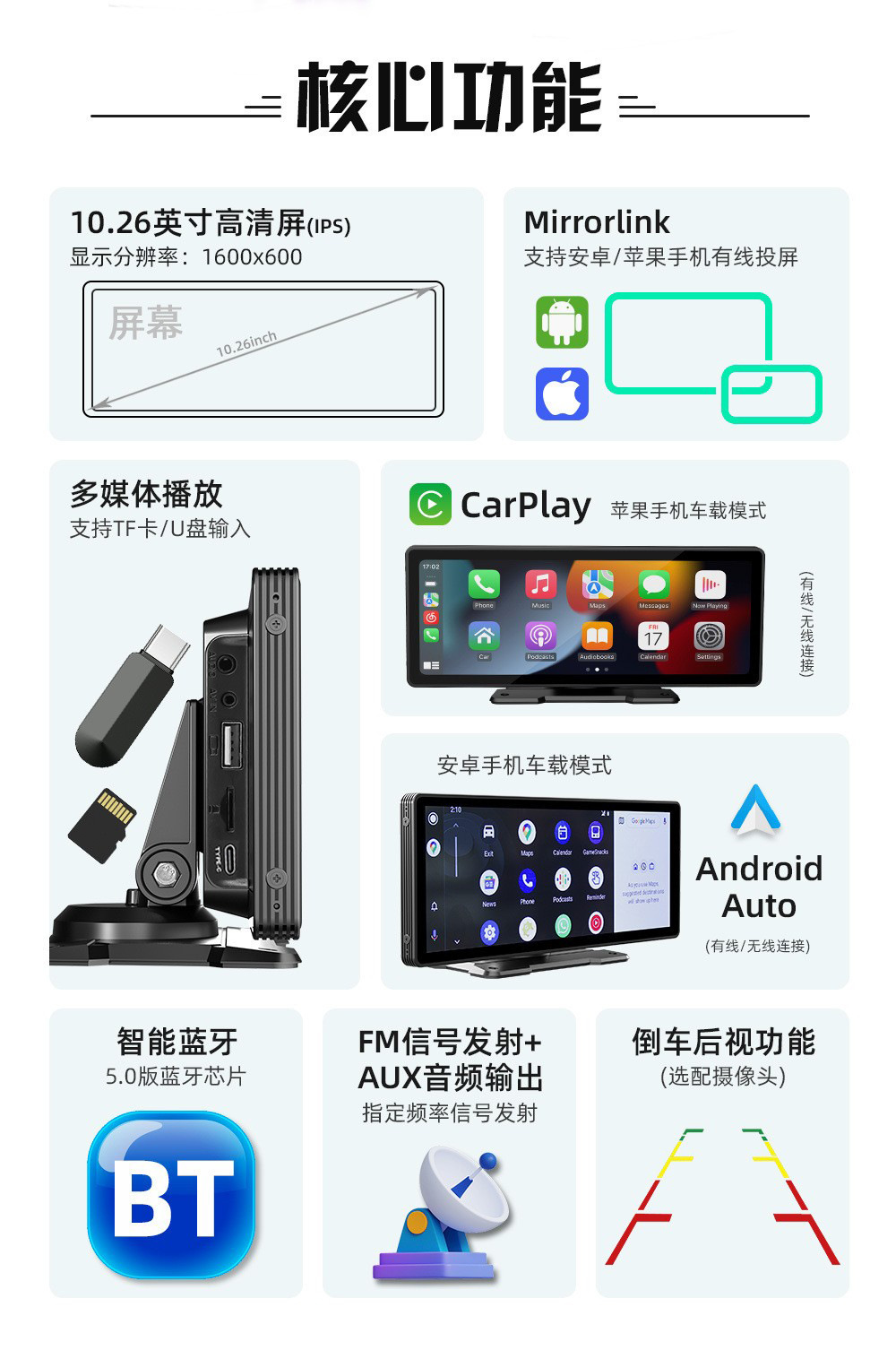 10.26inch портативный 2.5D-экран Carplay MP5-навигатор PND Apple Android подключенный автомобильный плеер