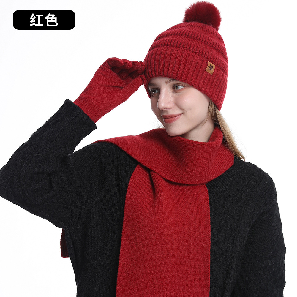 Леди осень зима трикотажная шапка шарф перчатки из трех частей