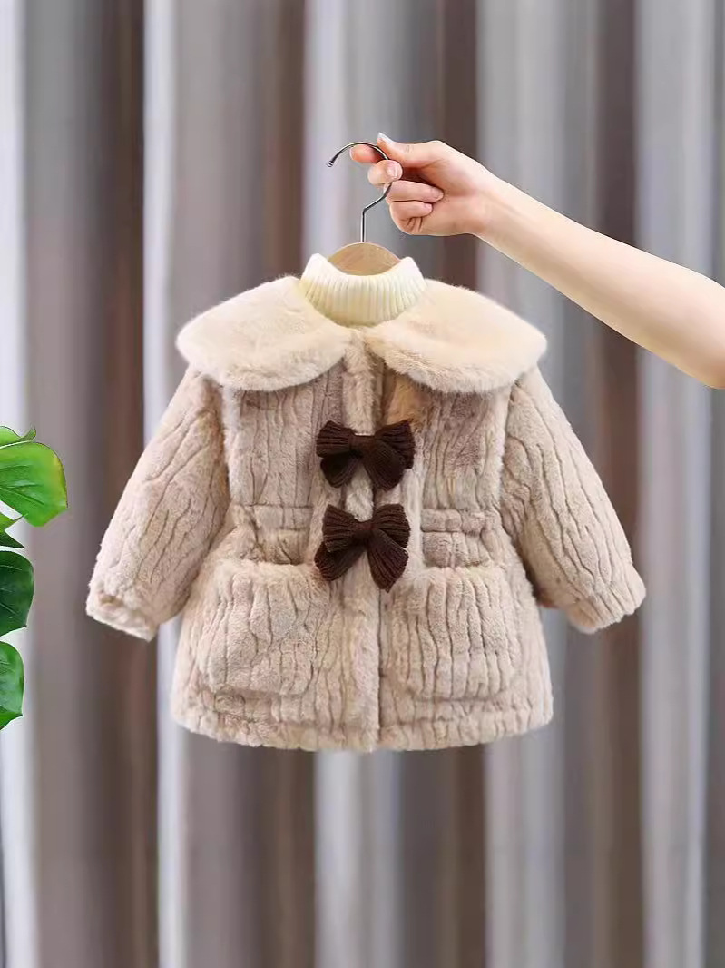 Детская зимняя бархатная толстая одежда для девочек 2024 зимняя одежда иностранная детская куртка осень-зима новый шерстяной топ