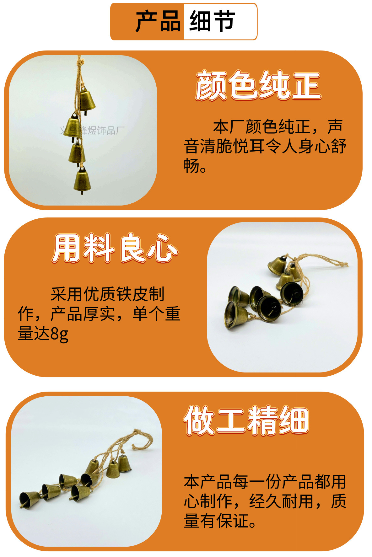 Горячая продажа пеньковой веревки Рождественский колокольчик с рогом колокольчик ретро подвеска праздничный настенный кованый колокольчик