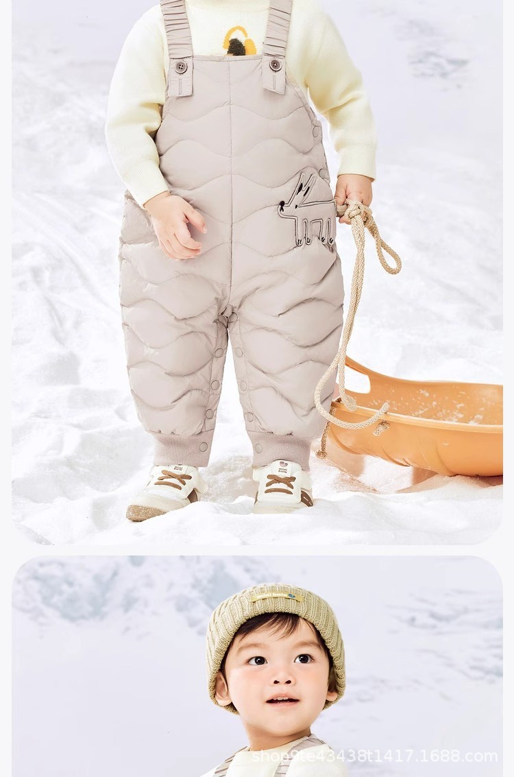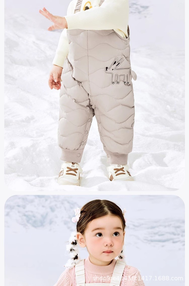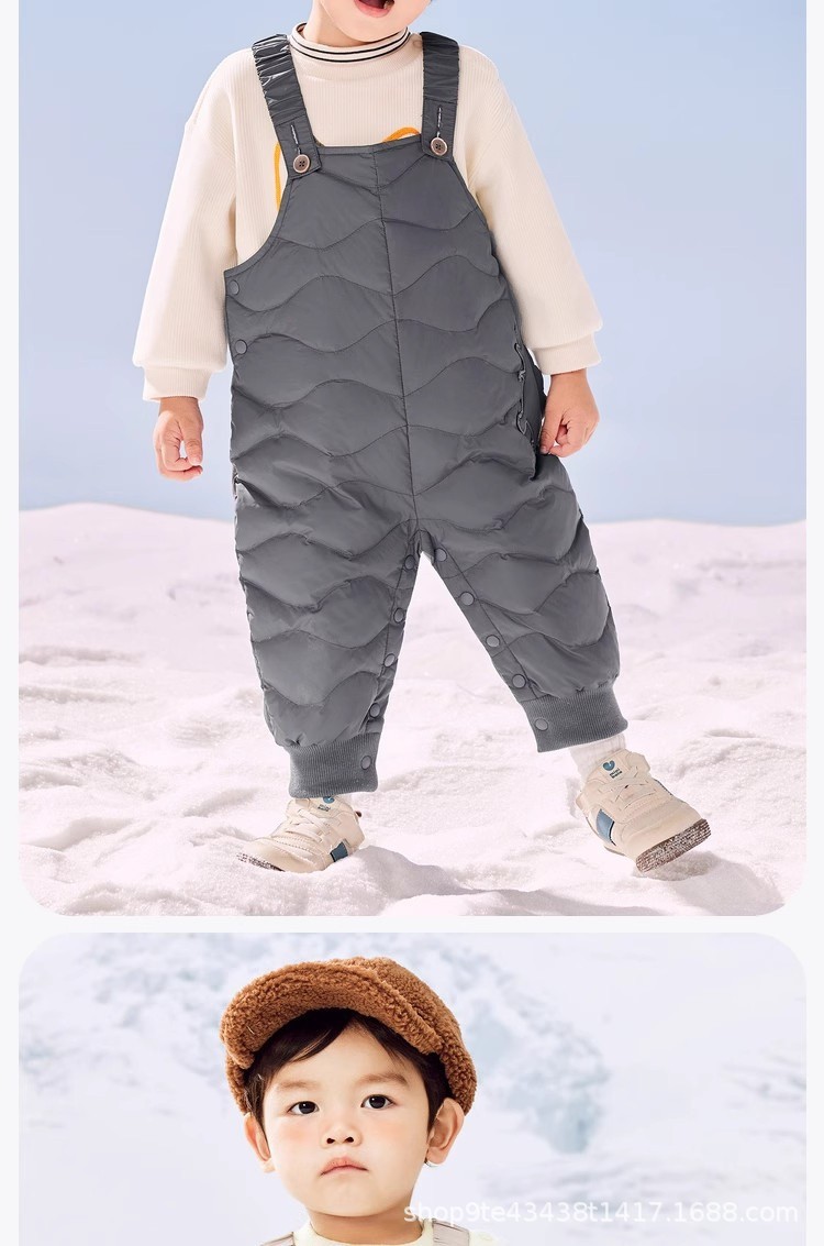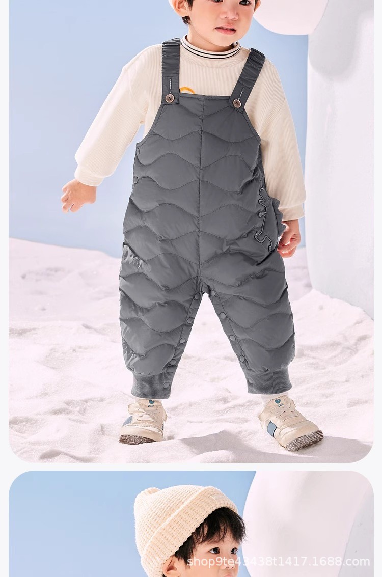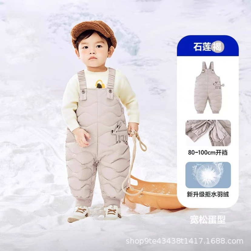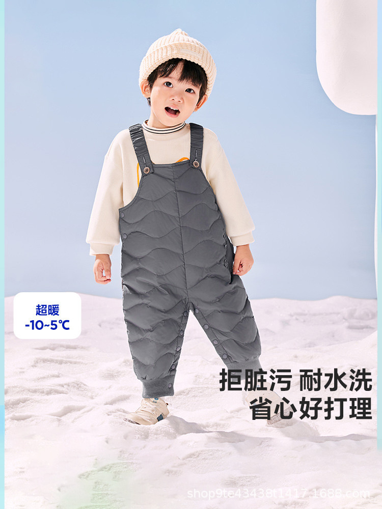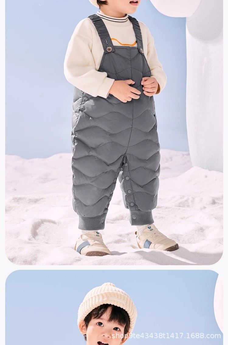 [Трехзащитная] Детская верхняя одежда, брюки, теплая зимняя одежда, детские пуховые штаны, утолщенные комбинезоны с открытой промежностью для детей.