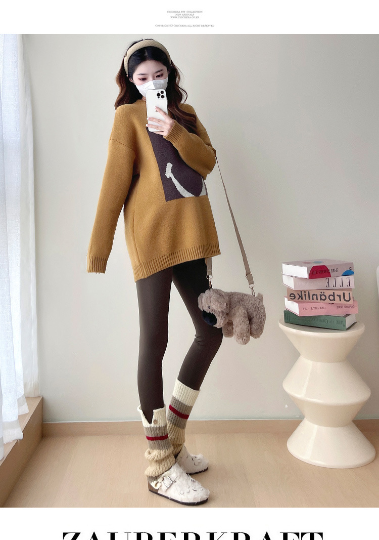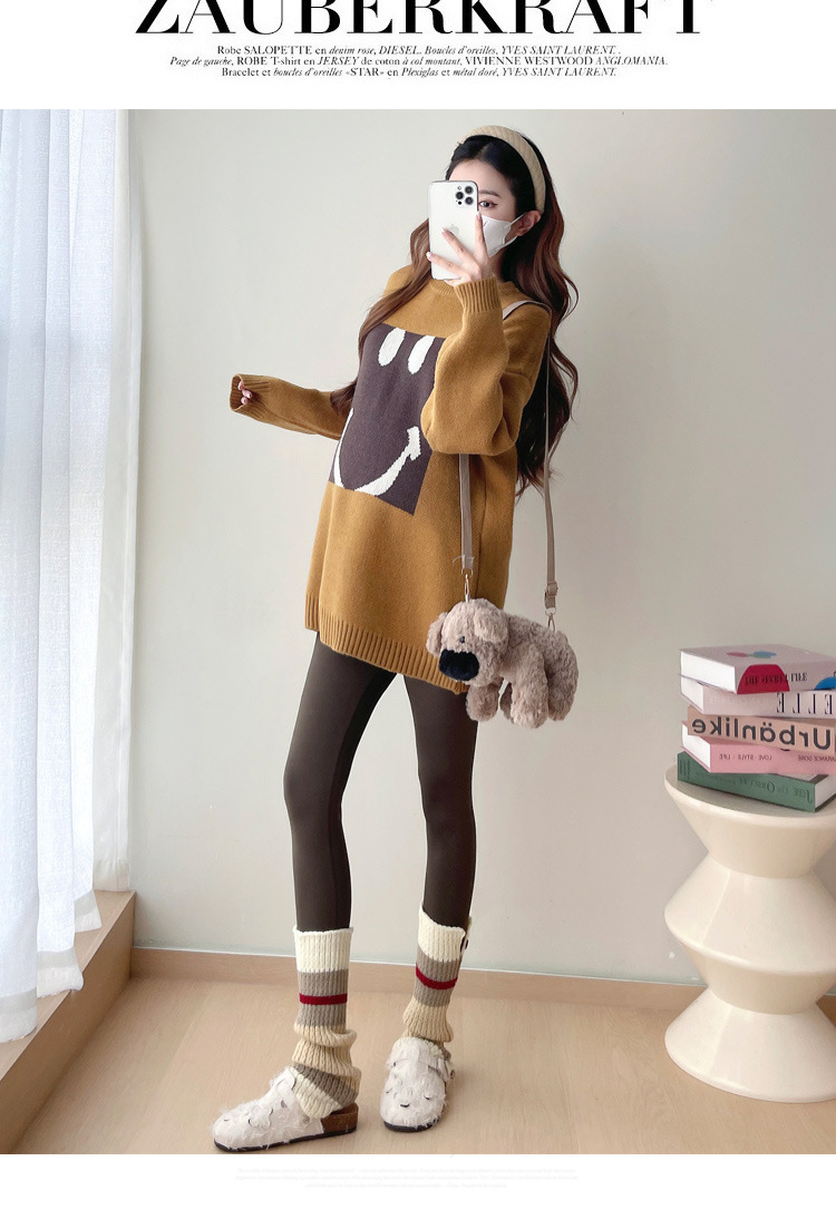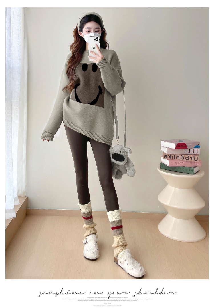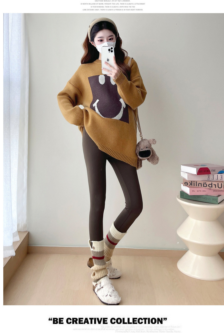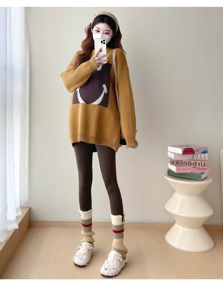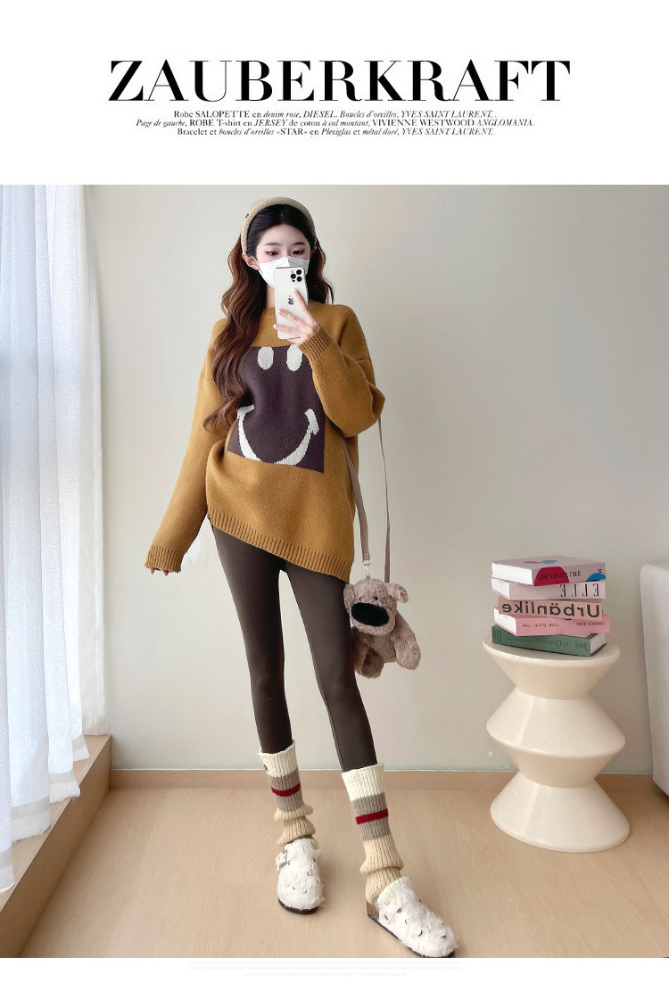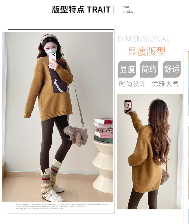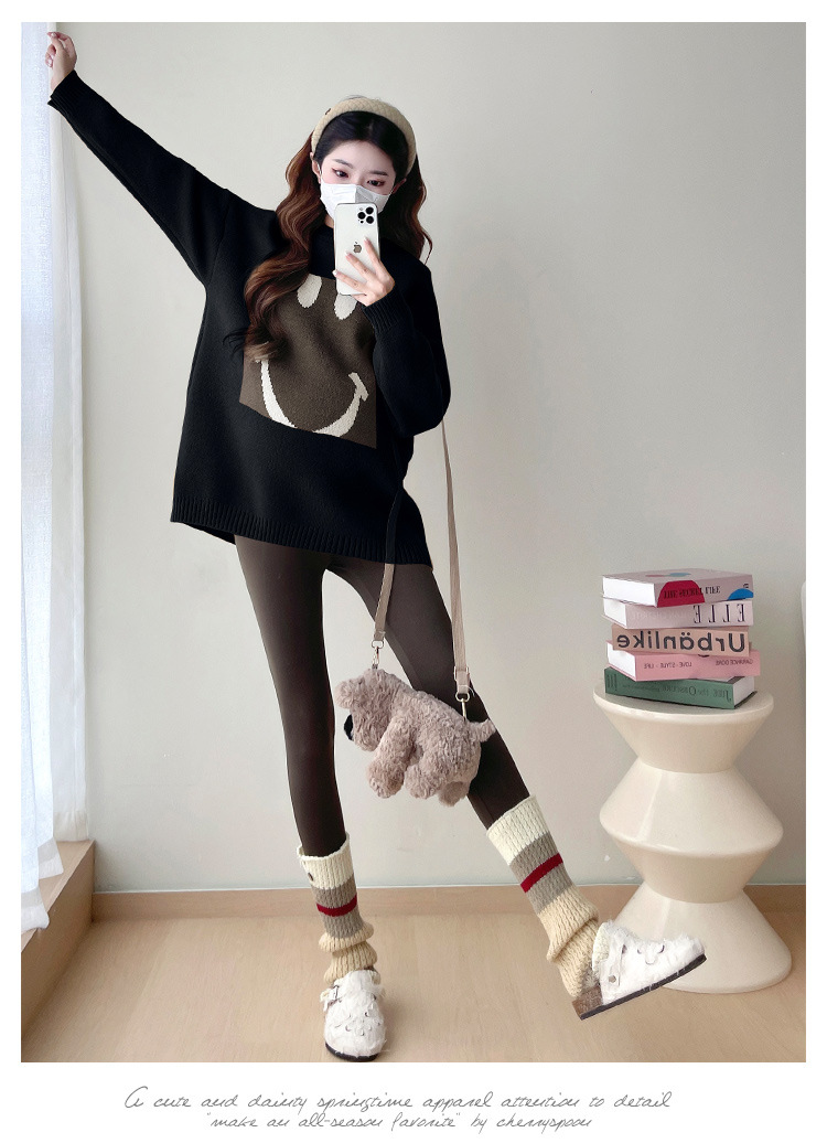 Свитер для беременных 2024 осень и зима корейский свободный ленивый топ модный большой размер тонкий смайлик вязаный свитер