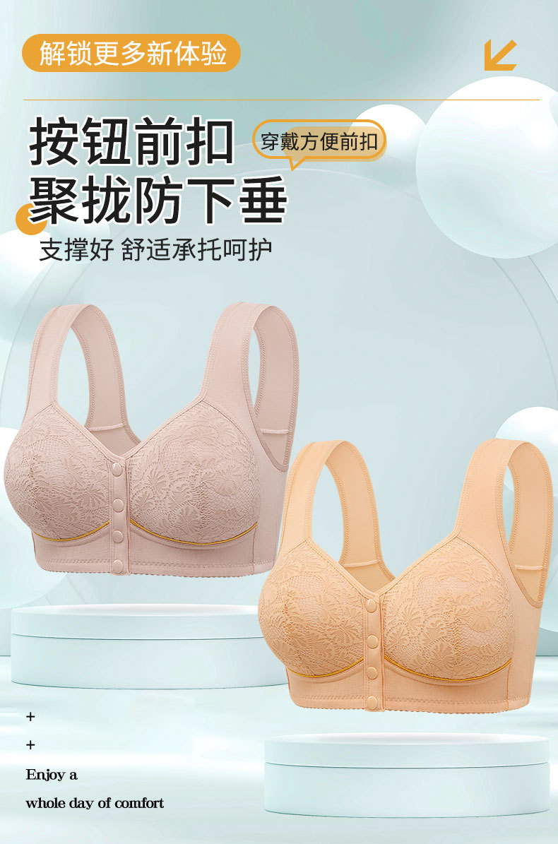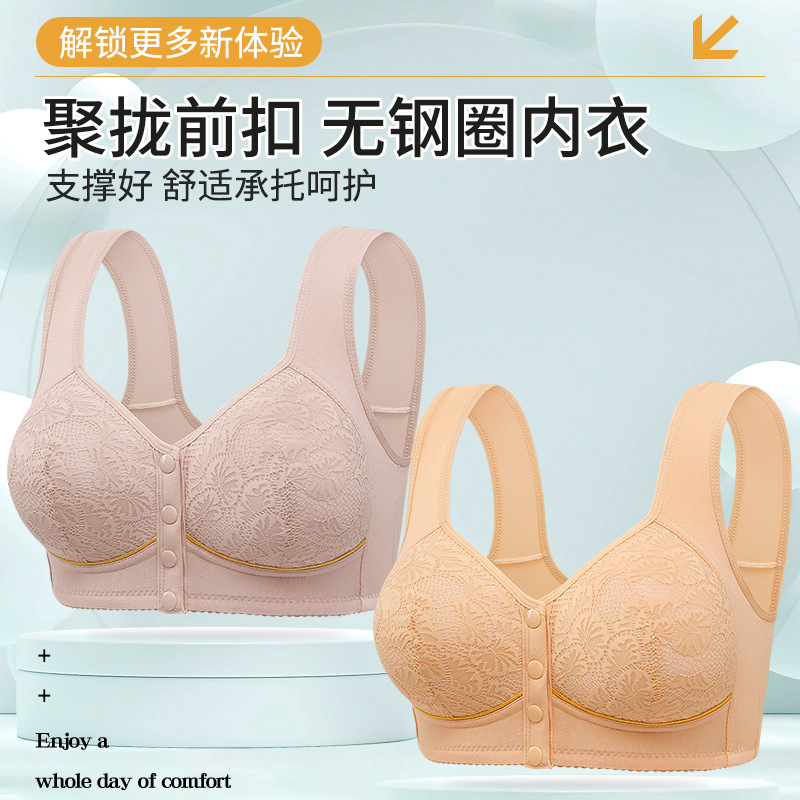 Новый стиль передняя пряжка трансграничный большой размер среднего и пожилого возраста принт спины широкий плечевой ремень нижнее белье для женщин без стального круга бюстгальтер большого размера