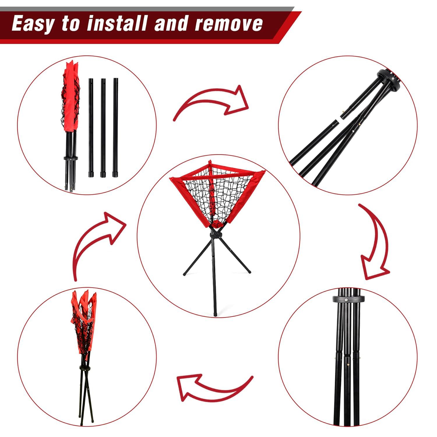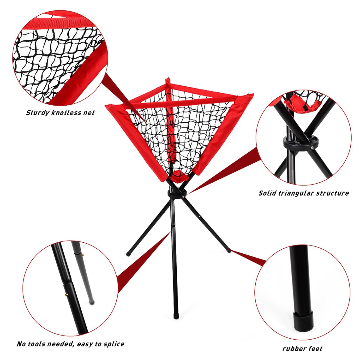 Сетка для сбора бейсбольных мячей, сетка для сбора мячей для софтбола и тенниса, простая и портативная сетка для сбора мячей, сетка для сбора мячей, крепящаяся к битам, треугольная стойка для хранения мячей